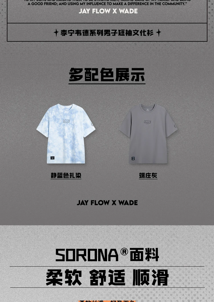 李宁韦德 x Jay Flow联名系列男子冰感舒适吸湿排汗宽松短袖文化衫AHSVA09
