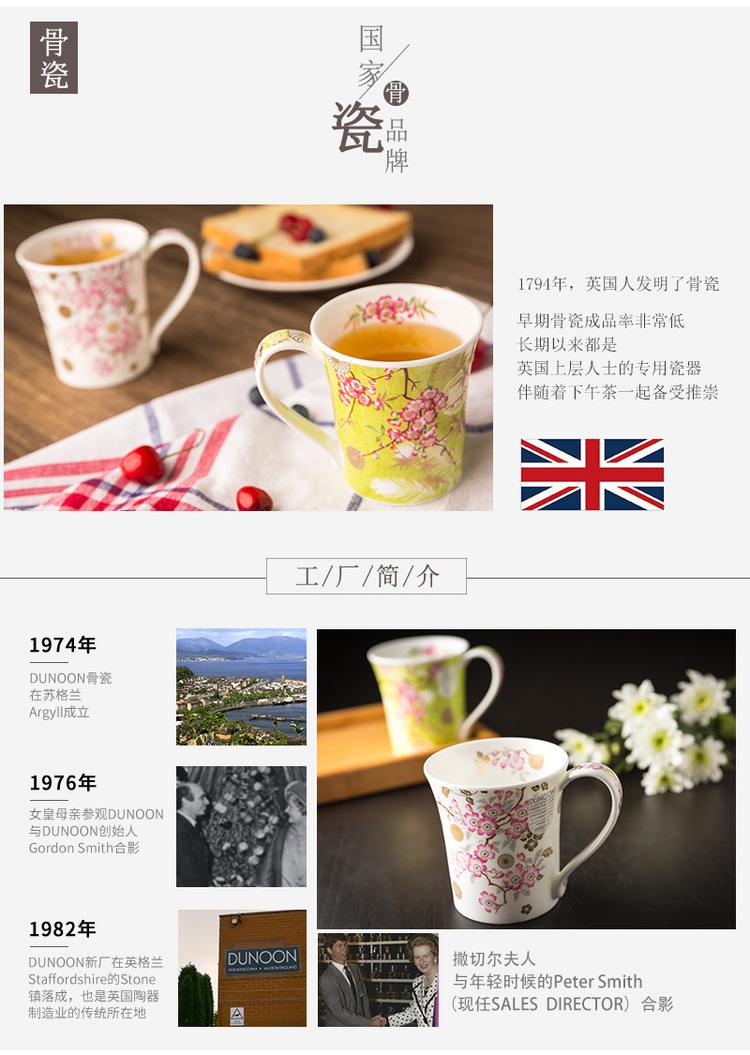 英国DUNOON丹侬Jura型骨瓷茶杯水杯马克杯樱花