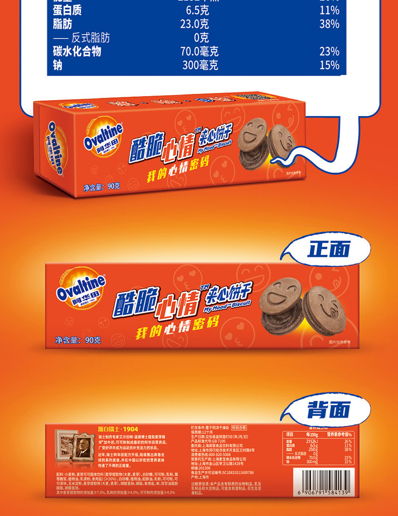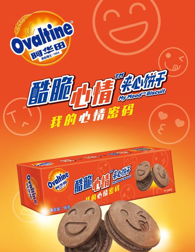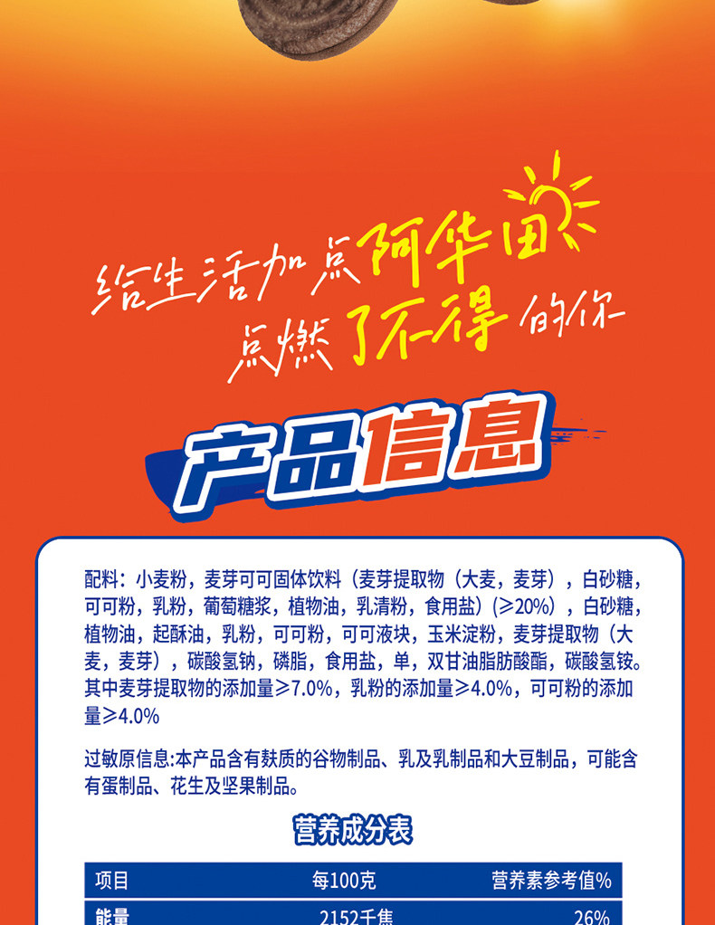 90g阿华田酷脆心情夹心饼干 麦香牛乳味薄脆休闲零食