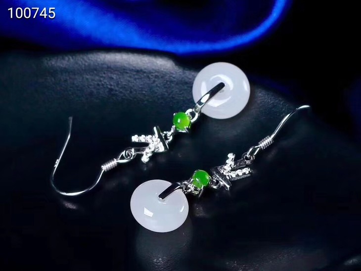 s925银镶和田玉羊脂玉平安扣耳环--------寓意平平安安,青海老料,料子干净细腻,白度一级。
