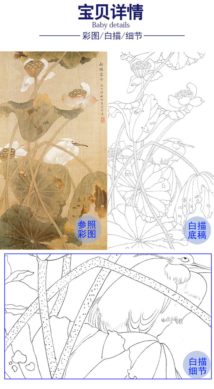 陈之佛竖幅工笔花鸟白描底稿《秋塘露冷》-多种白描尺寸可选-QA37