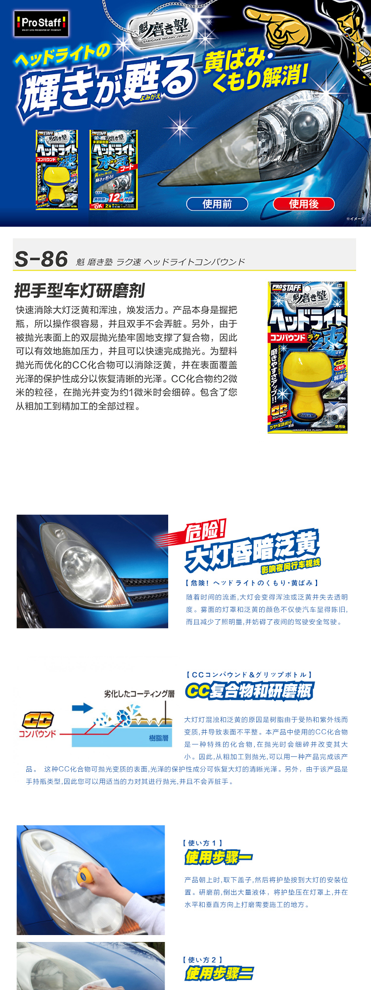 Prostaff专业大师 S-86汽车大灯手持抛光剂