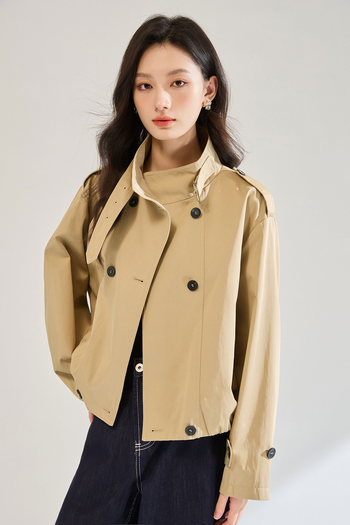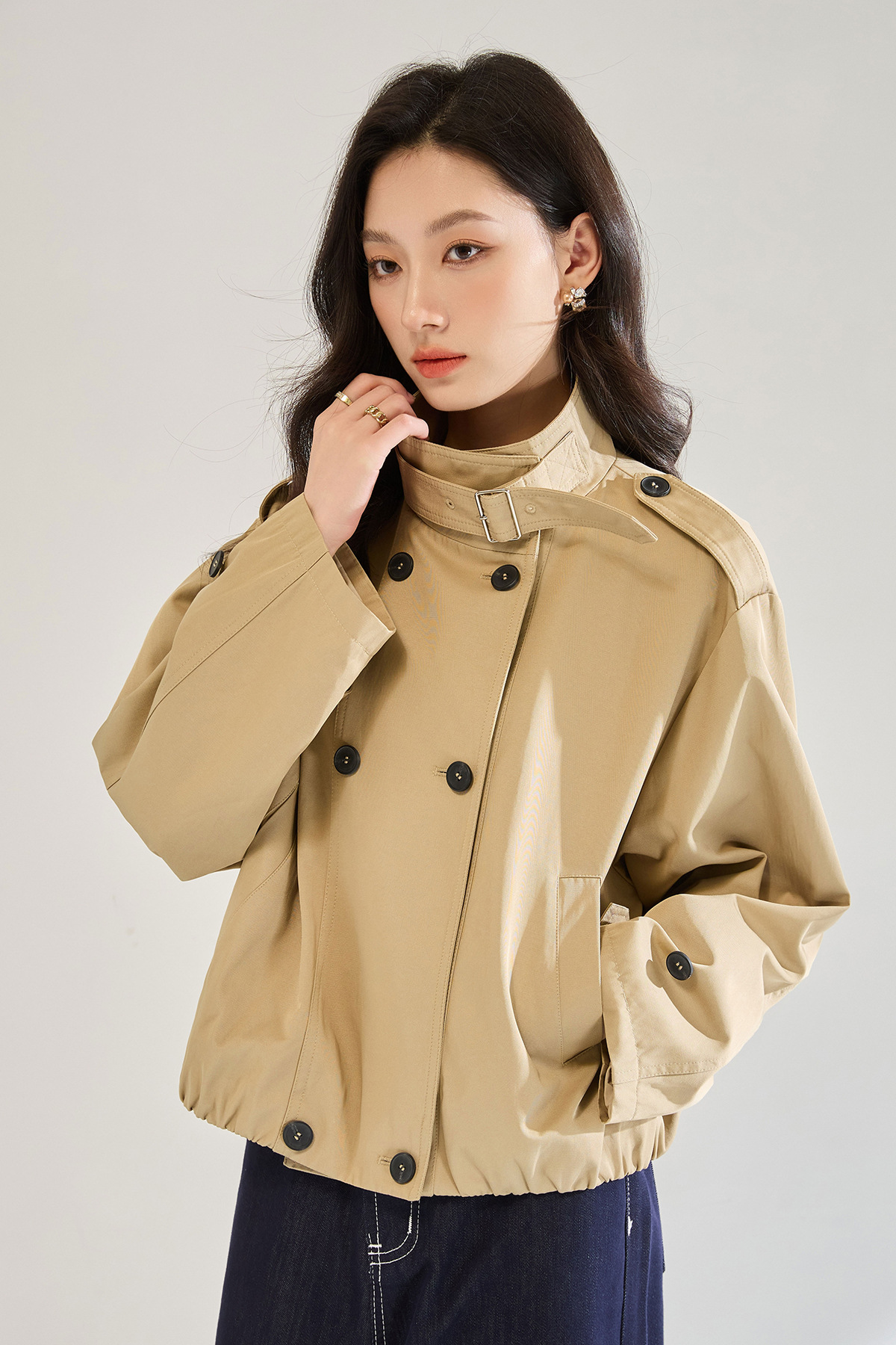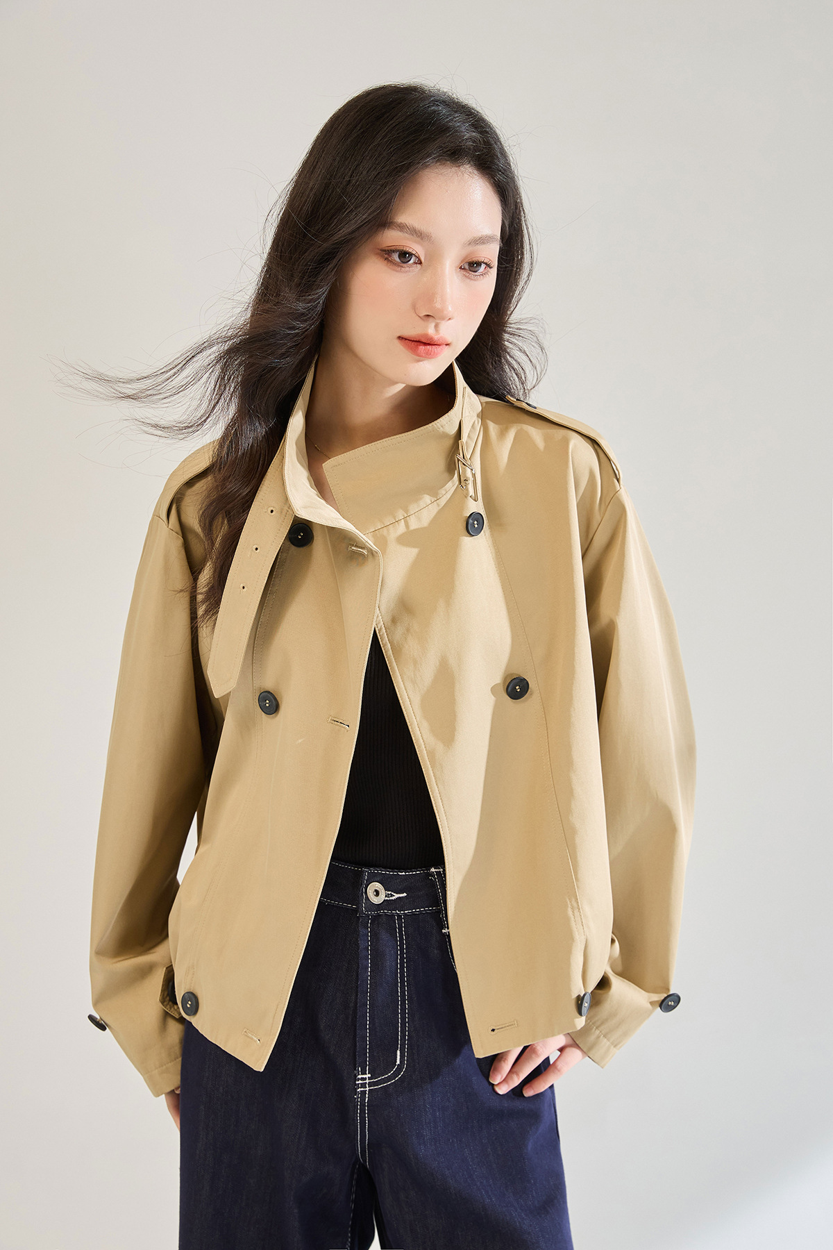 「高货sh」全新升级【铂金会员404/天猫539/差价135】(11202)洛诗琳新款气质双排扣外套2025秋季立领廓形短款风衣外套