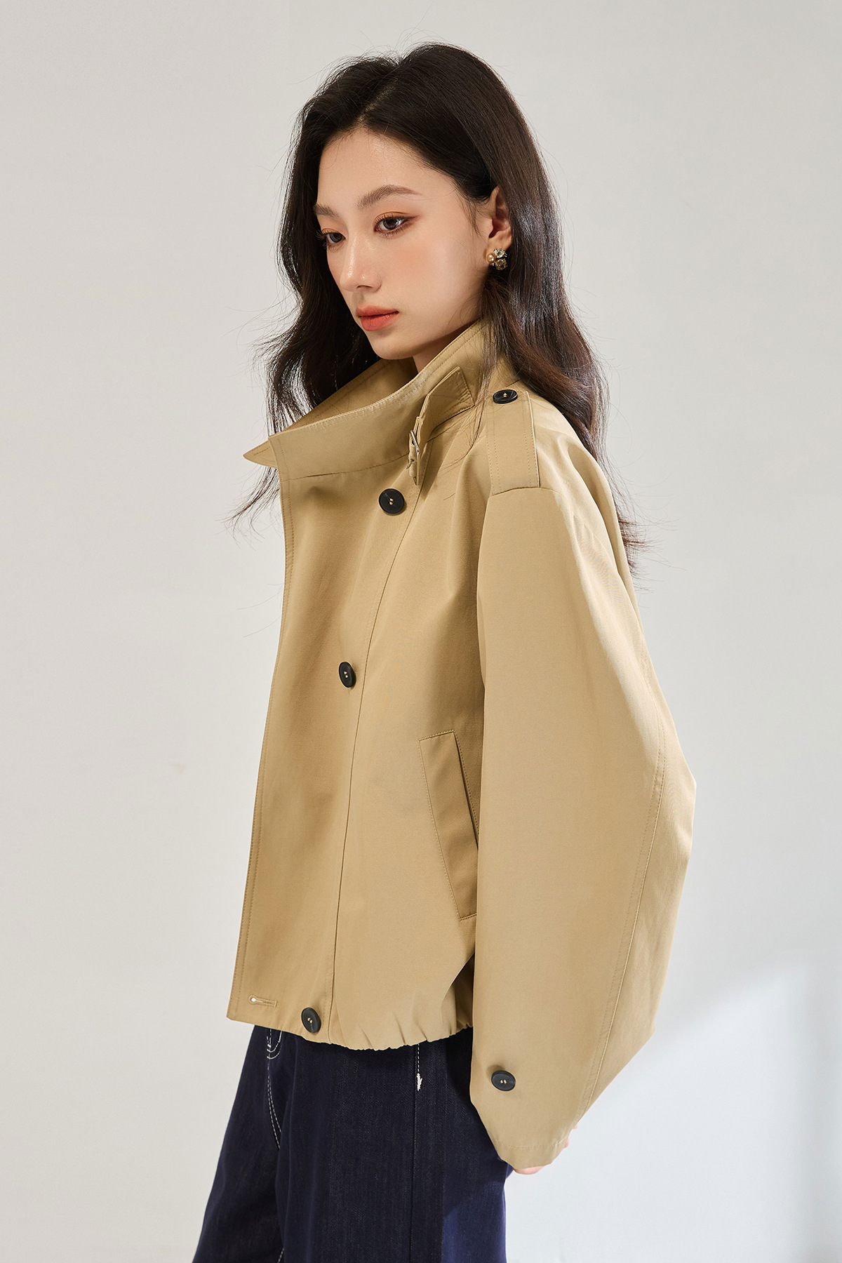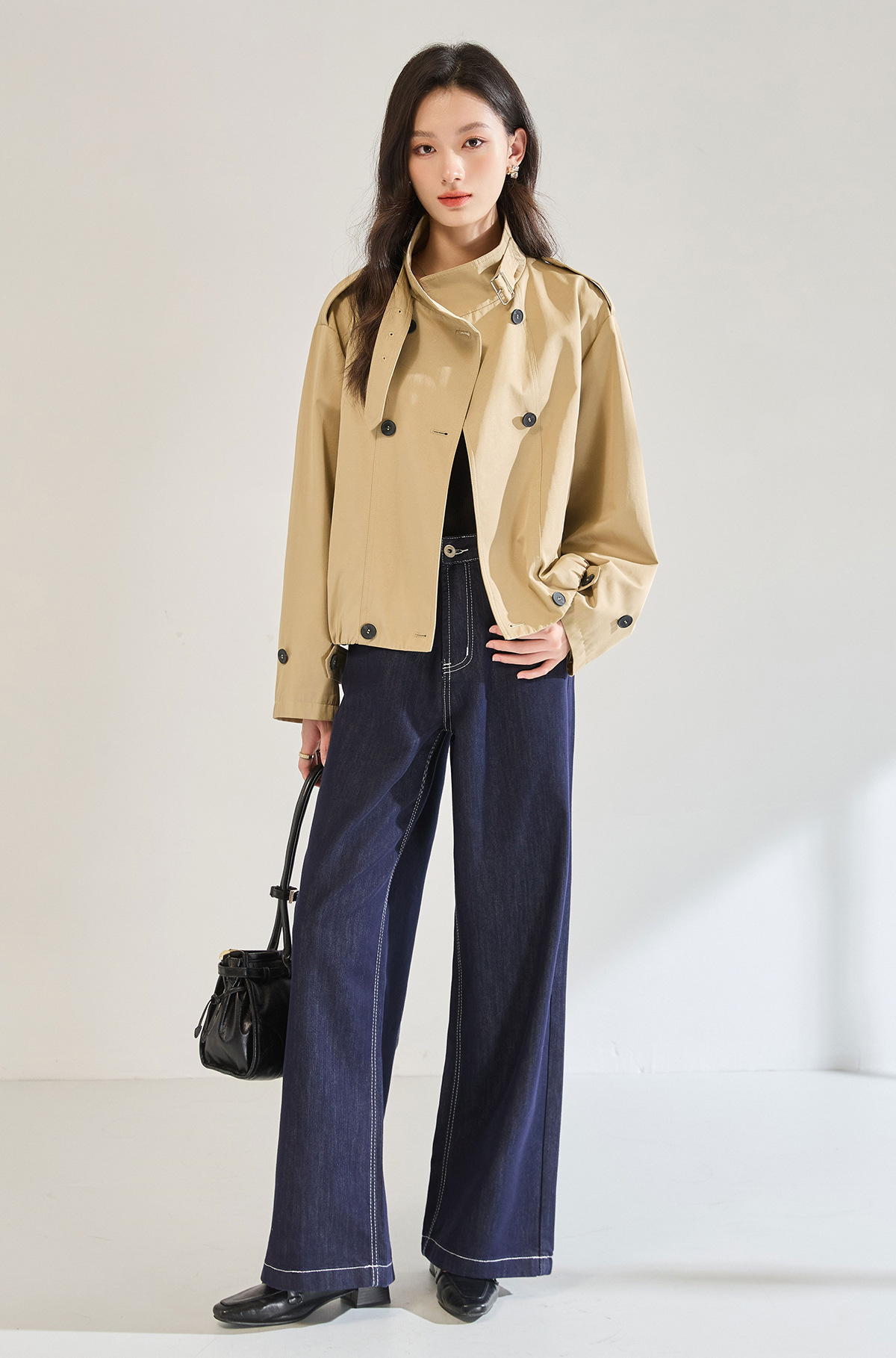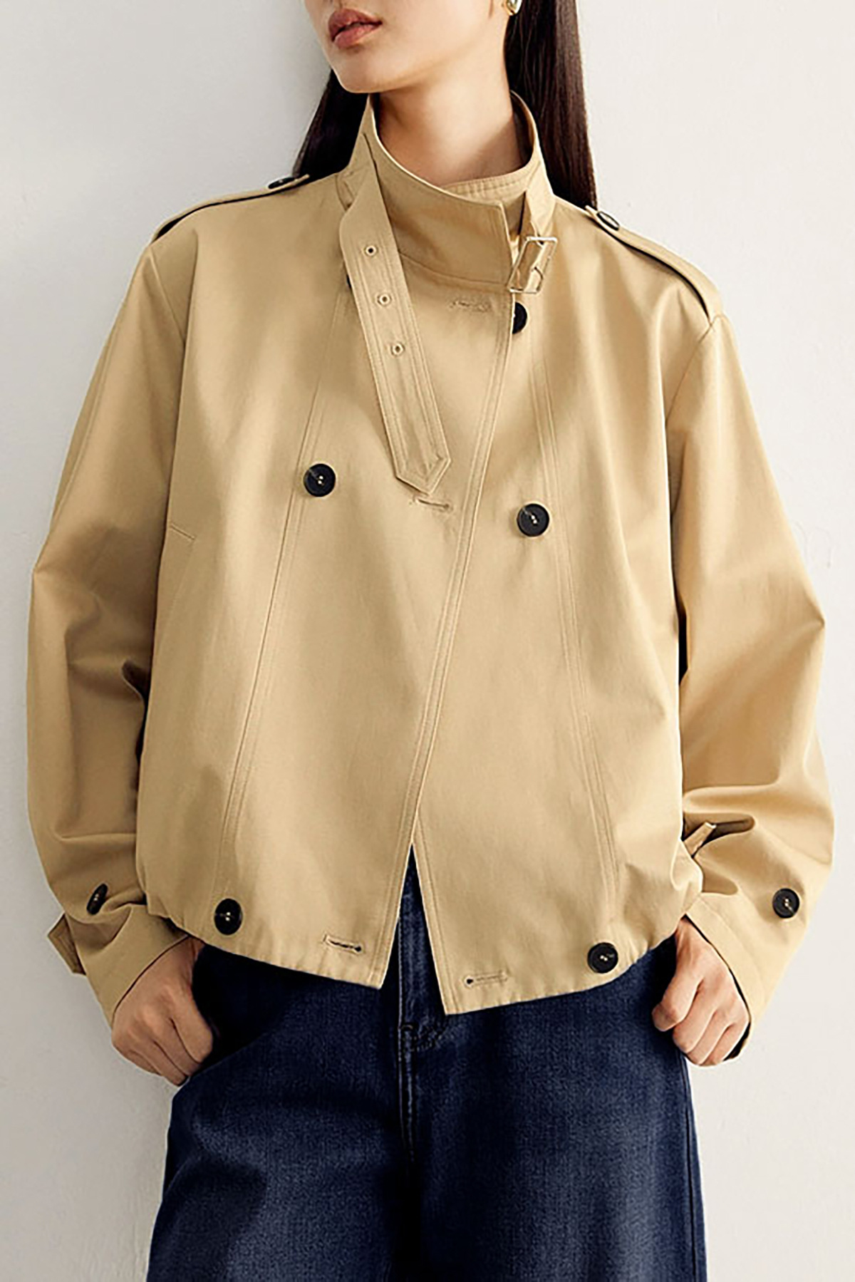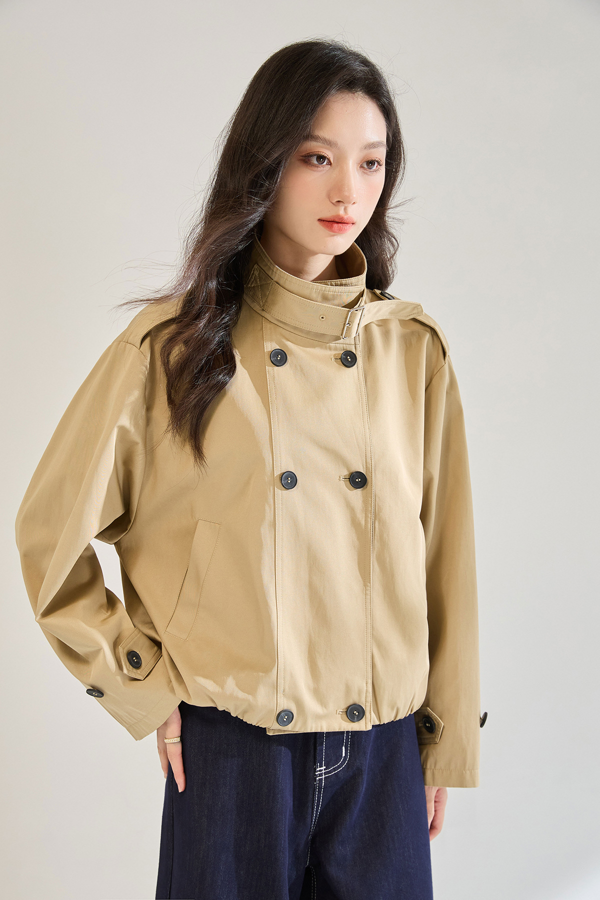 「高货sh」全新升级【铂金会员404/天猫539/差价135】(11202)洛诗琳新款气质双排扣外套2025秋季立领廓形短款风衣外套