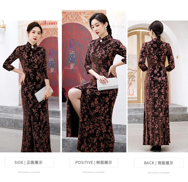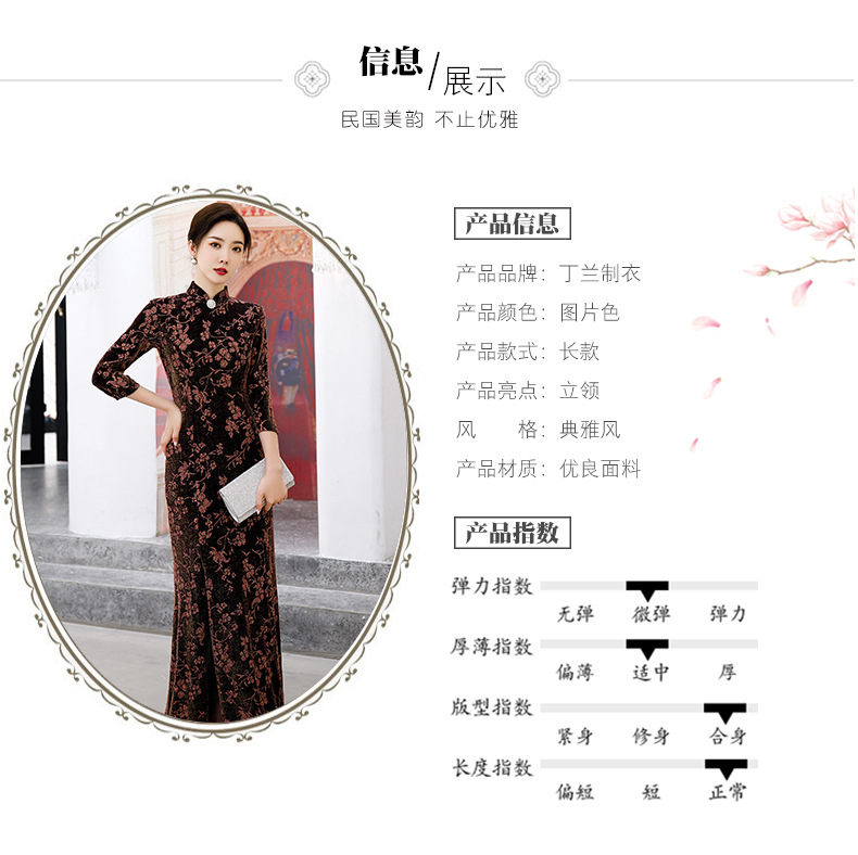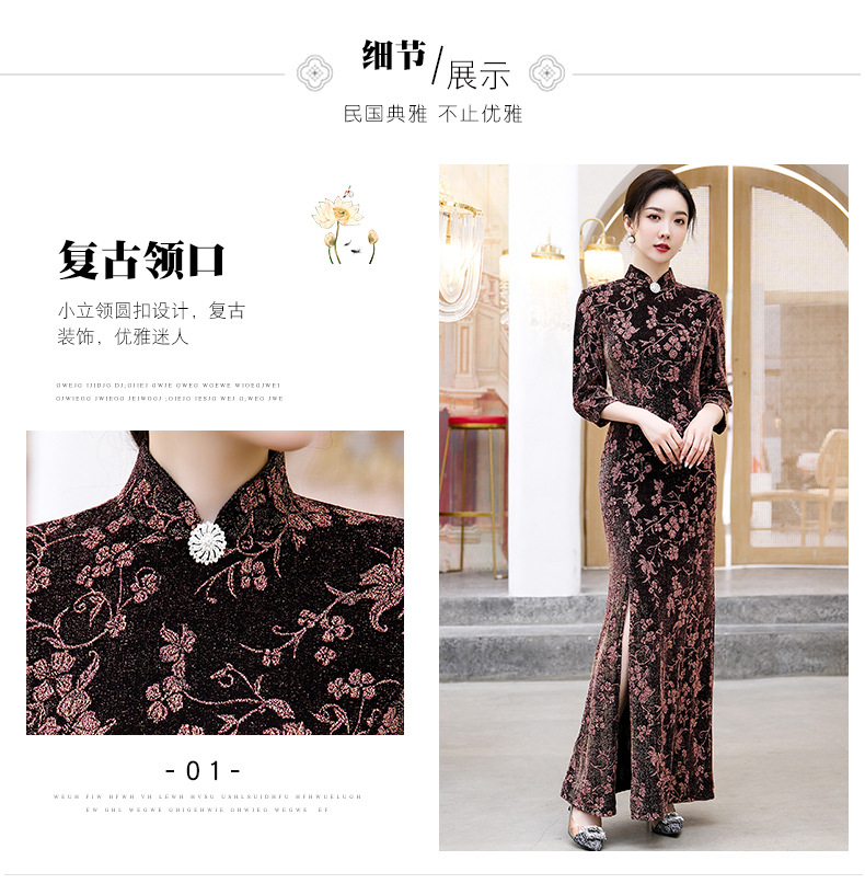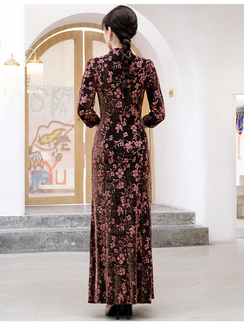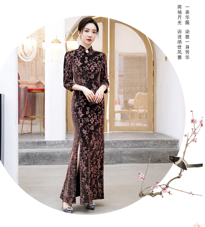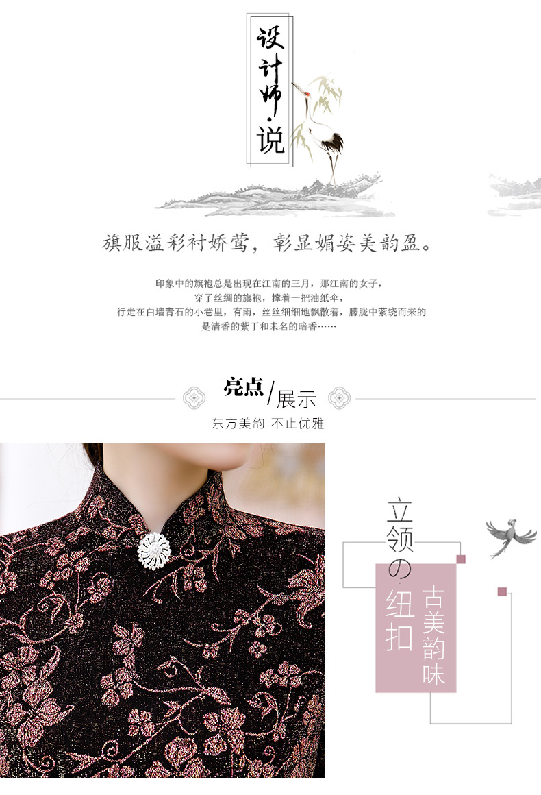 上海旗袍厂BJ-265长款旗袍秋冬新款亮丝妈妈装旗袍气质淑女复古时尚立领改良旗袍