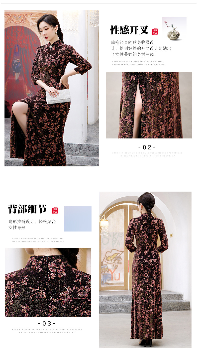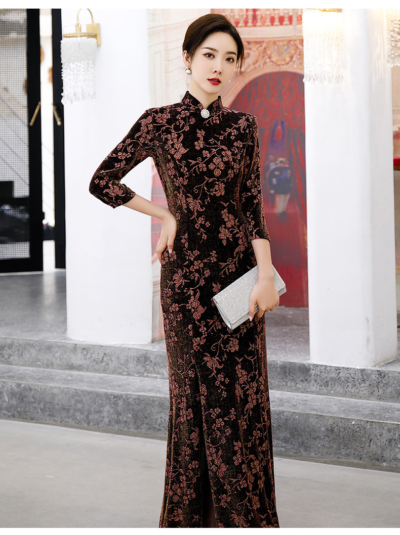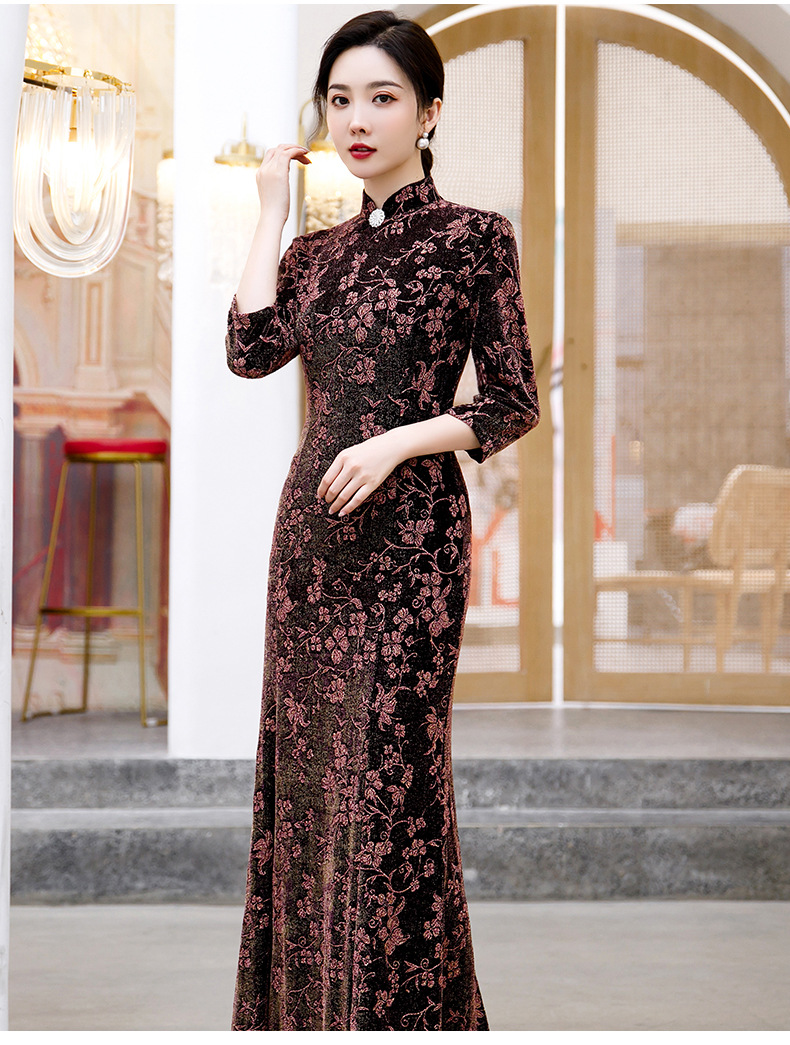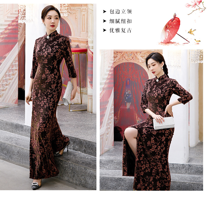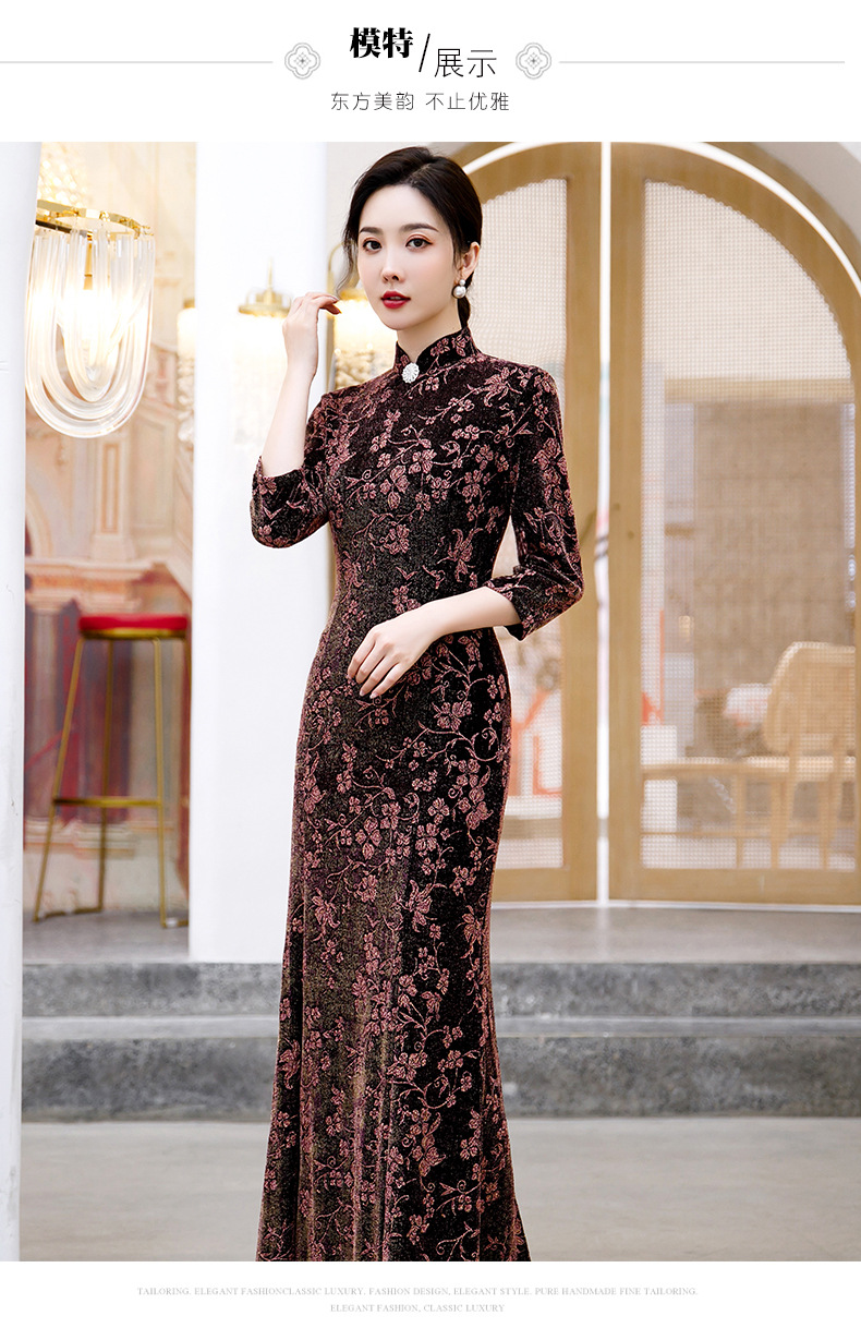 上海旗袍厂BJ-265长款旗袍秋冬新款亮丝妈妈装旗袍气质淑女复古时尚立领改良旗袍