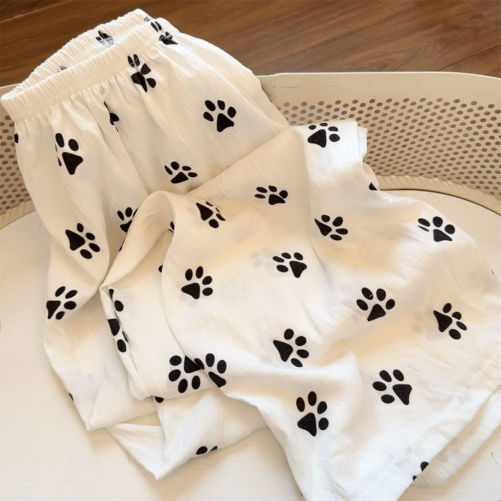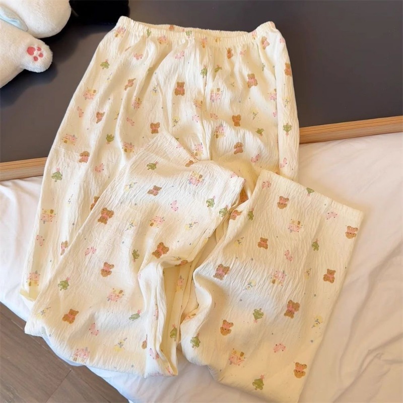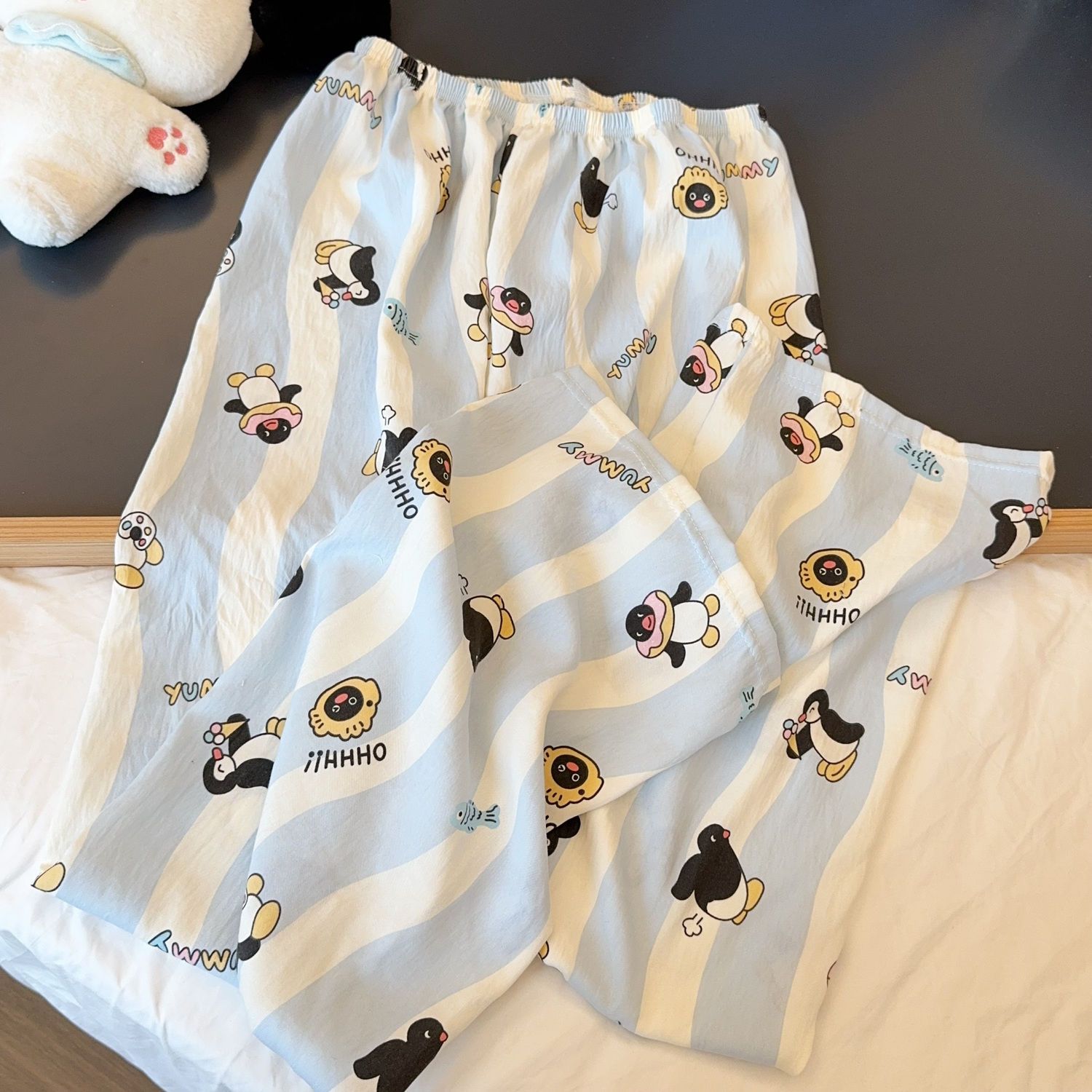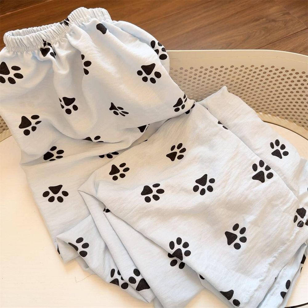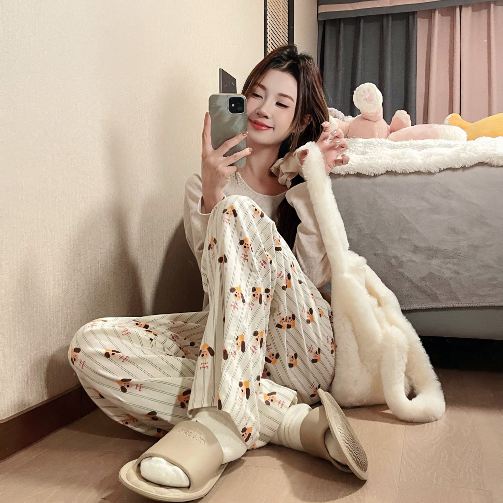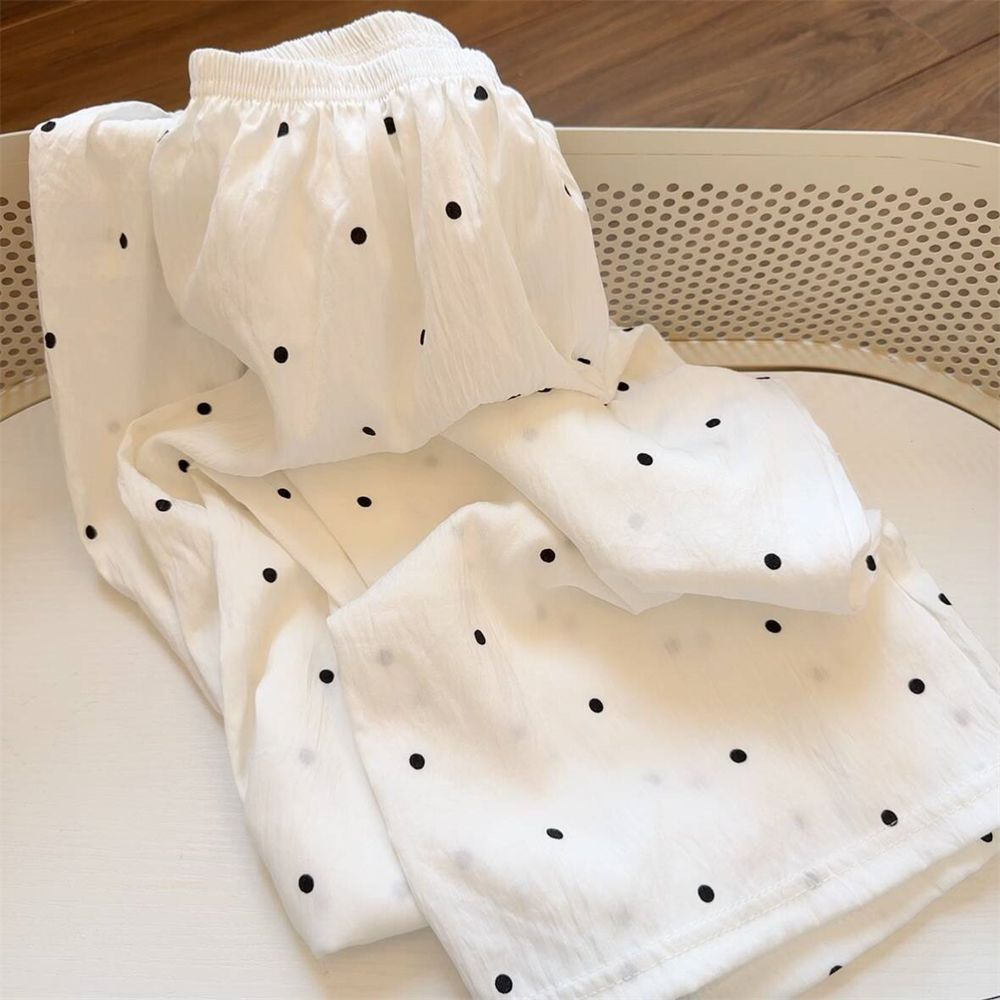【家居裤必备,直筒裤型修身显瘦】睡裤女春秋季新款 白波点腊肠狗可爱家居裤 宽松柔软直筒遛弯裤-QQ