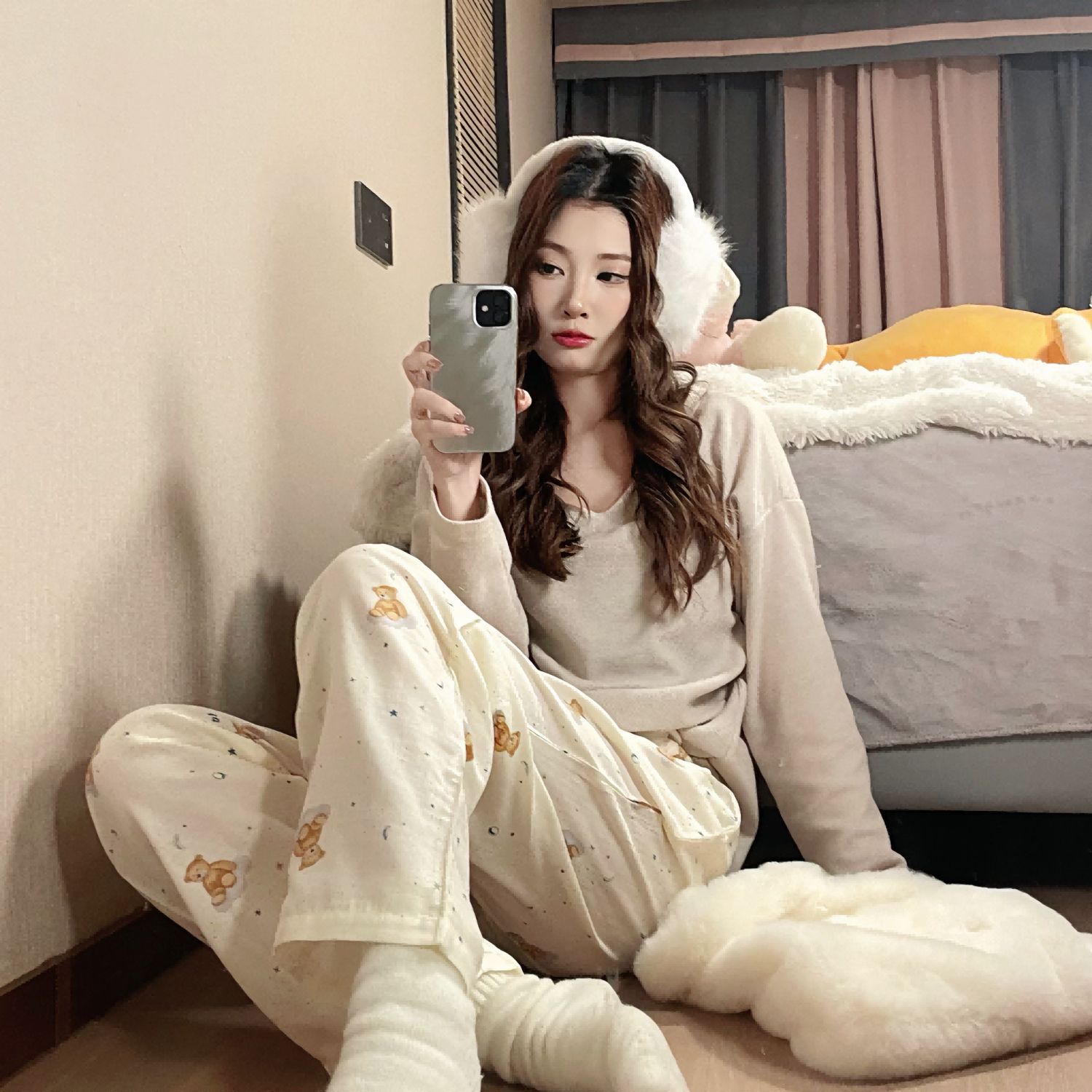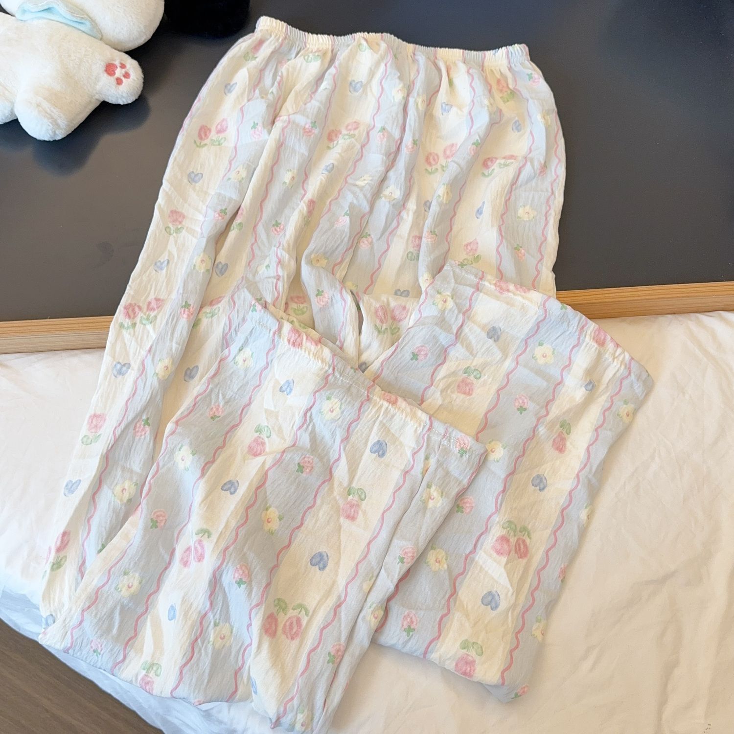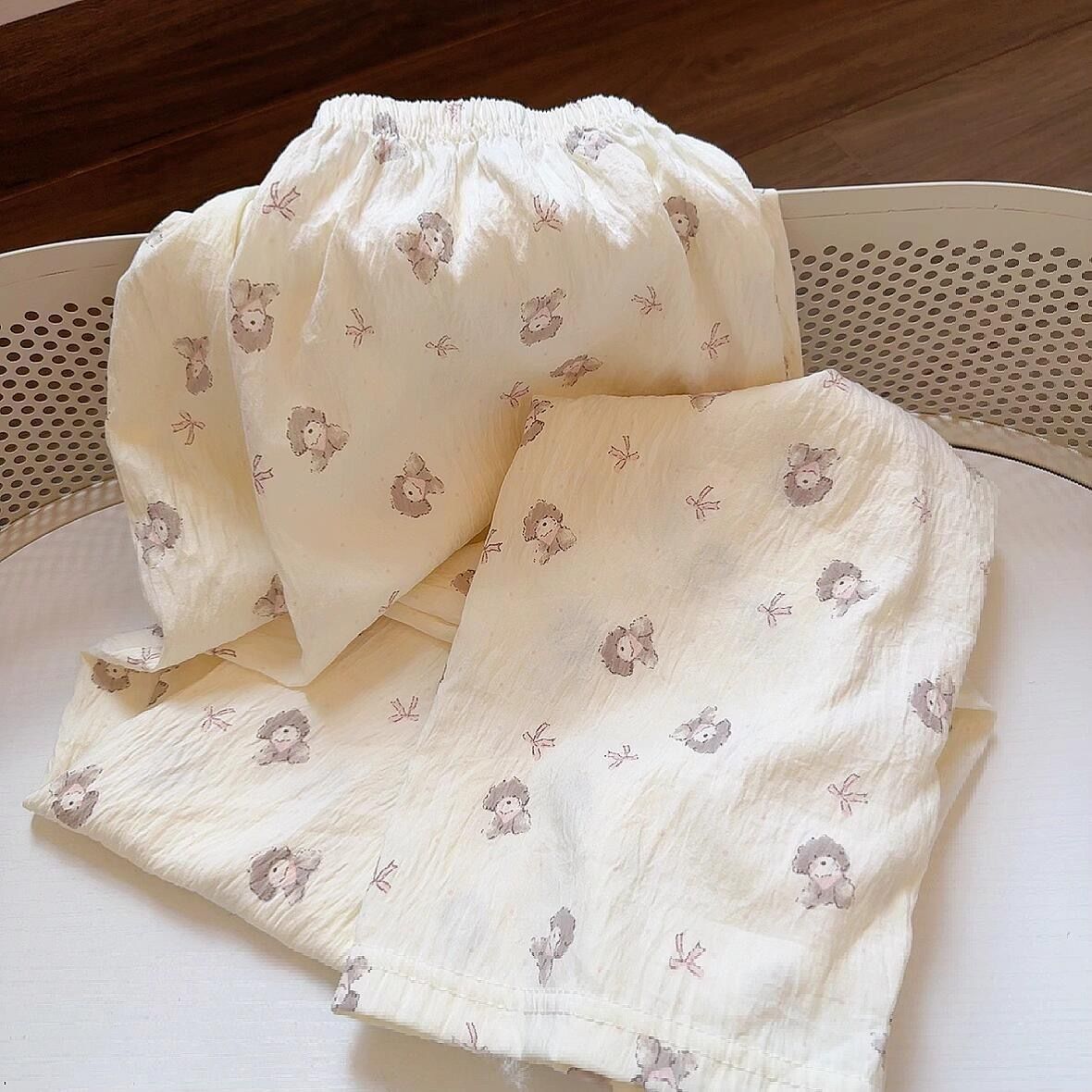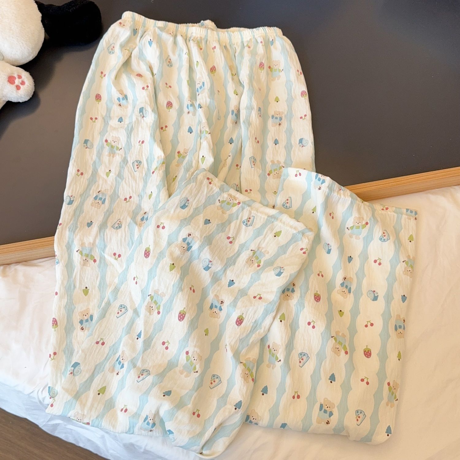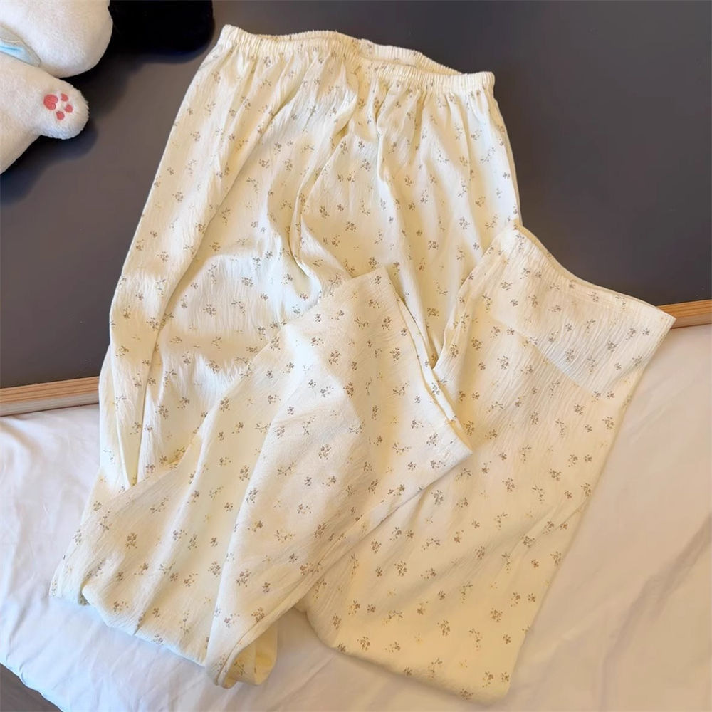 【家居裤必备,直筒裤型修身显瘦】睡裤女春秋季新款 白波点腊肠狗可爱家居裤 宽松柔软直筒遛弯裤-QQ