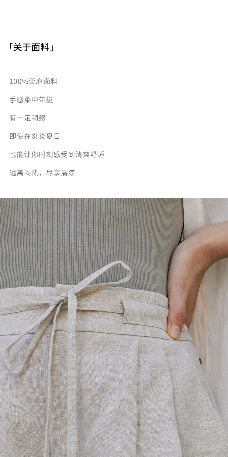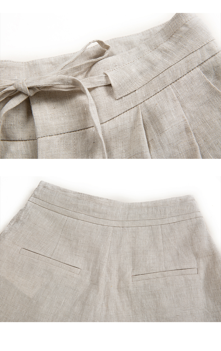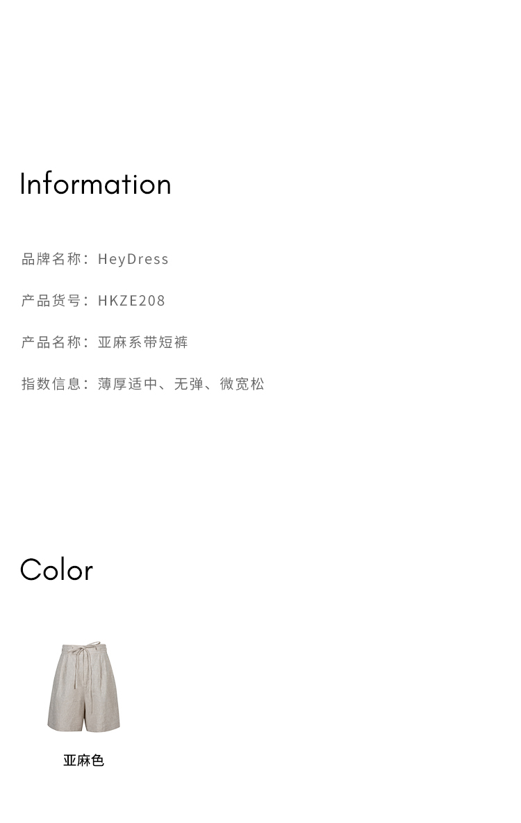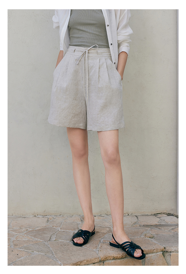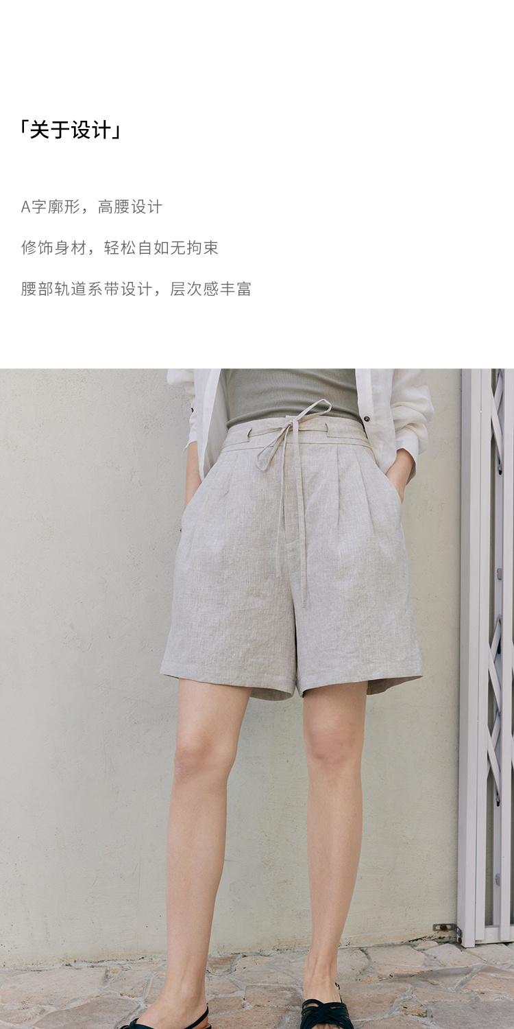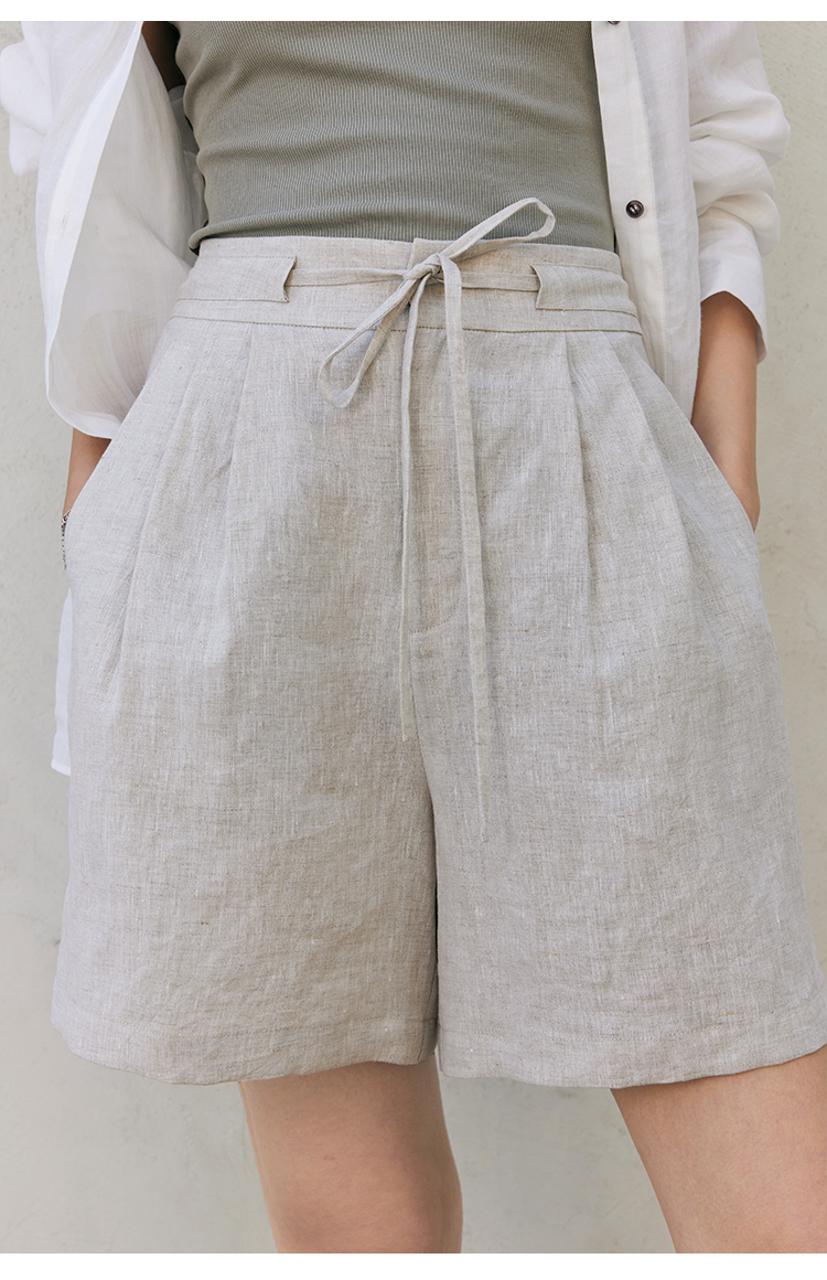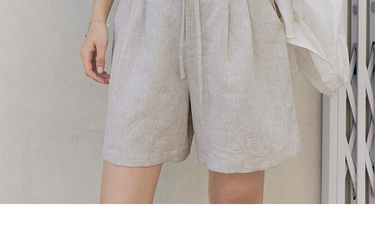 HeyDress亚麻短裤女夏季高腰系带宽松阔腿休闲裤通勤百搭直筒裤子