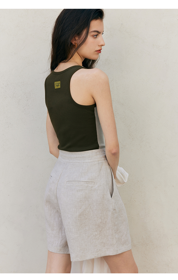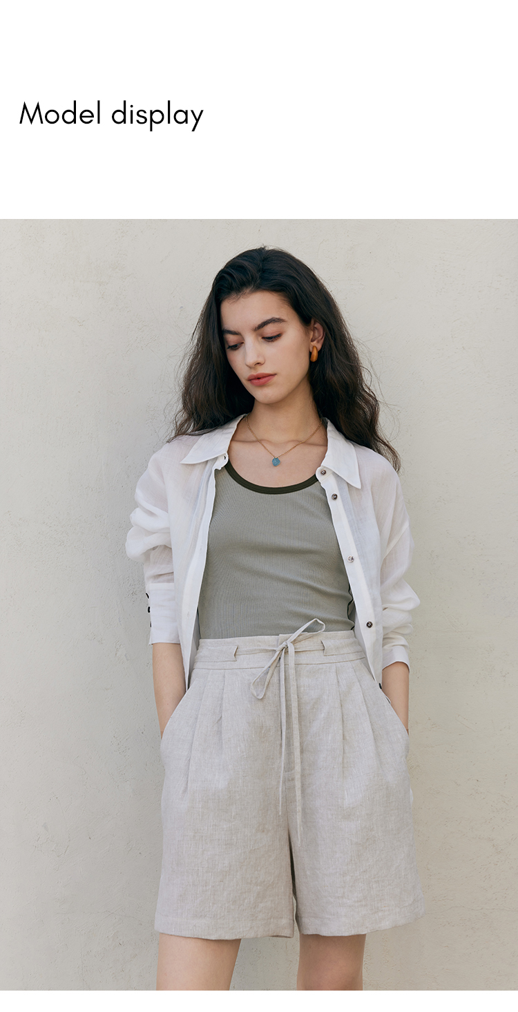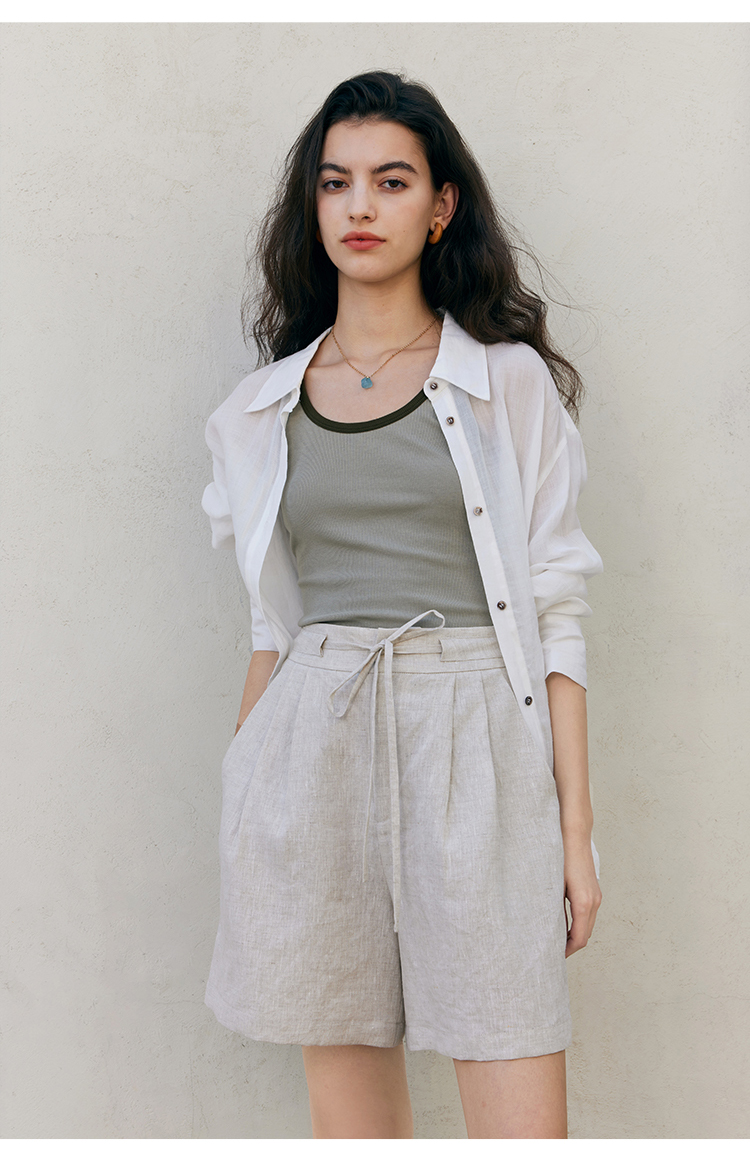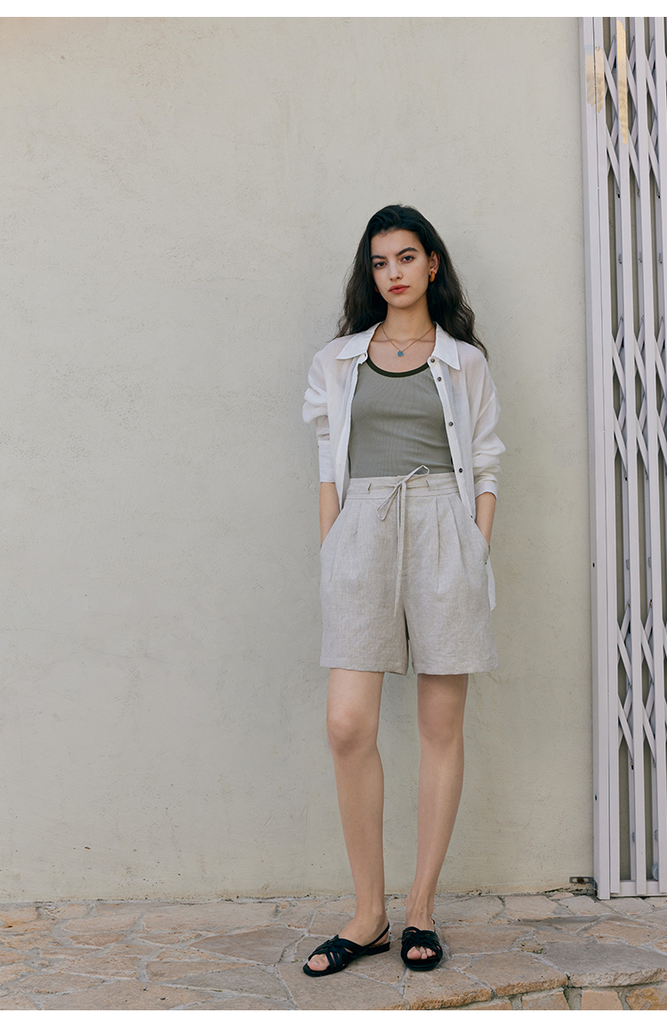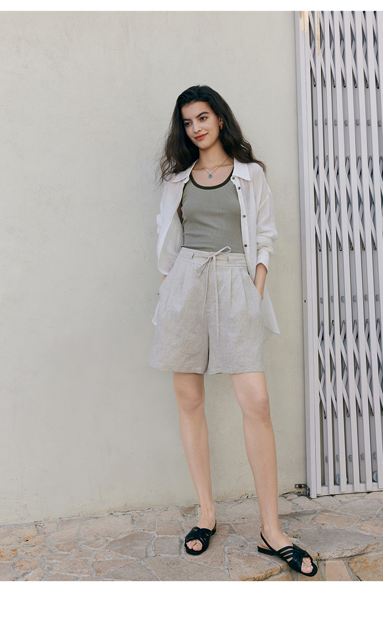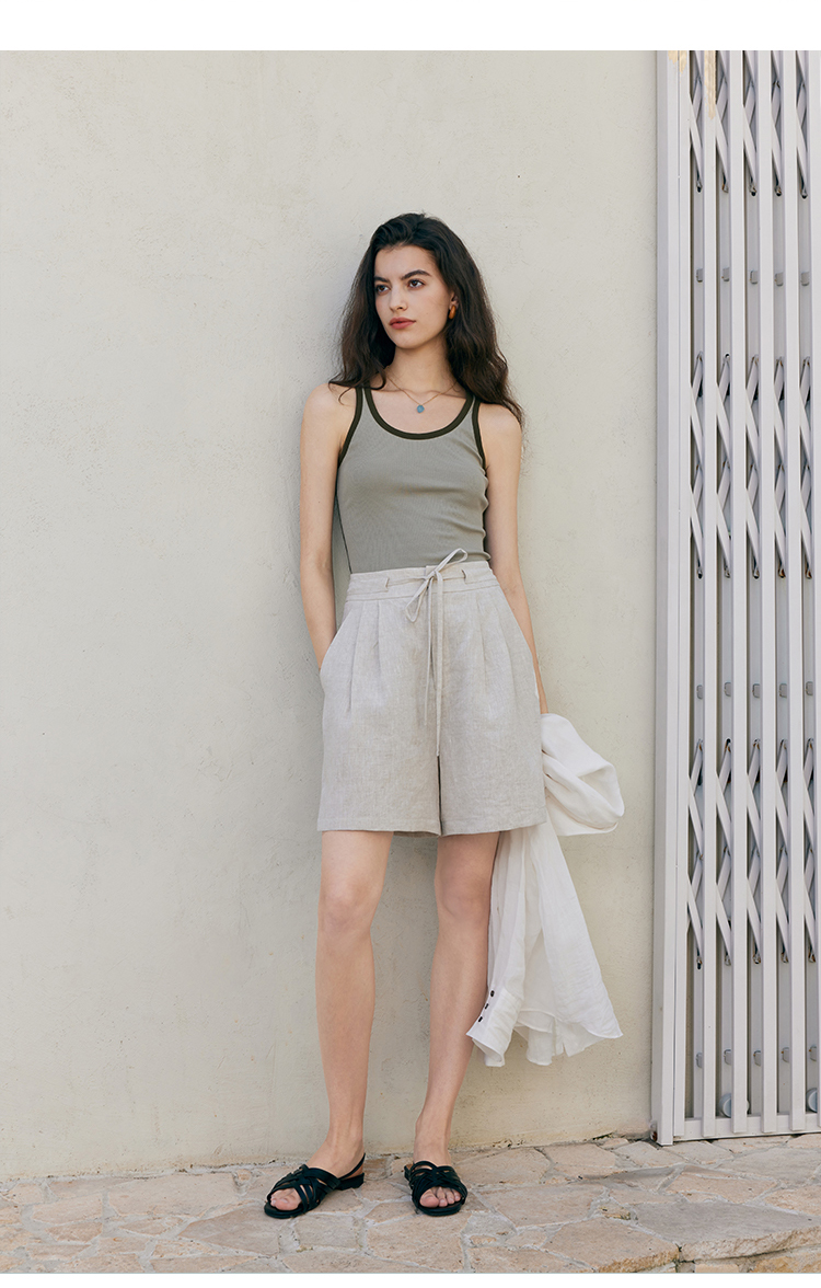 HeyDress亚麻短裤女夏季高腰系带宽松阔腿休闲裤通勤百搭直筒裤子