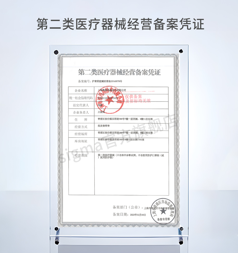 医疗器械许可证编号:沪食药械生产备20000080号