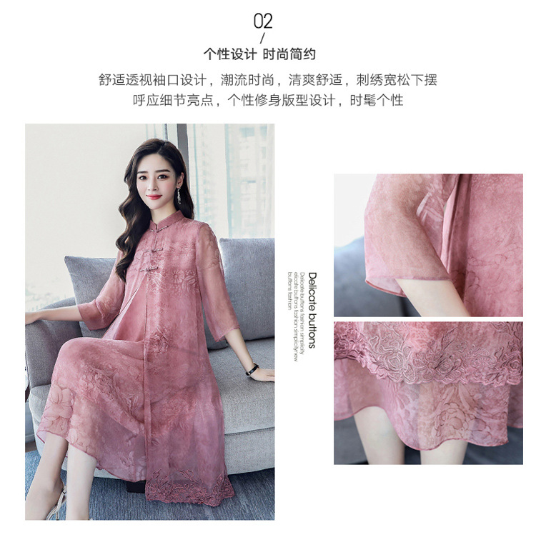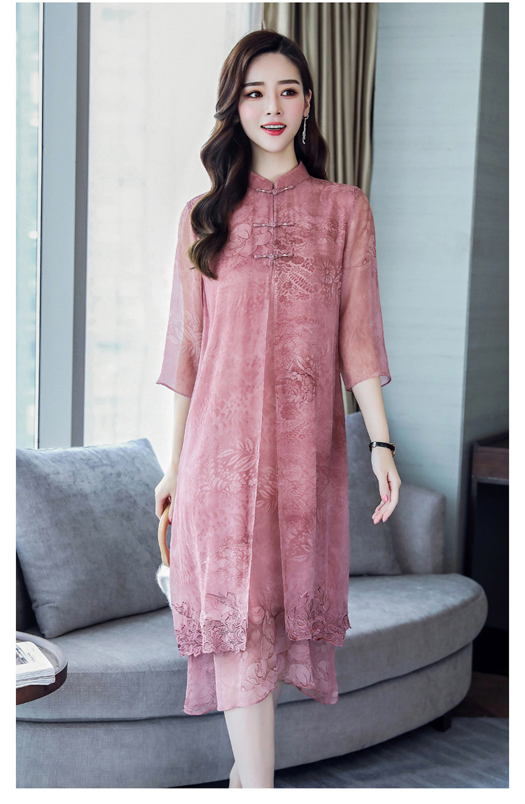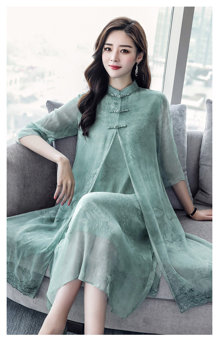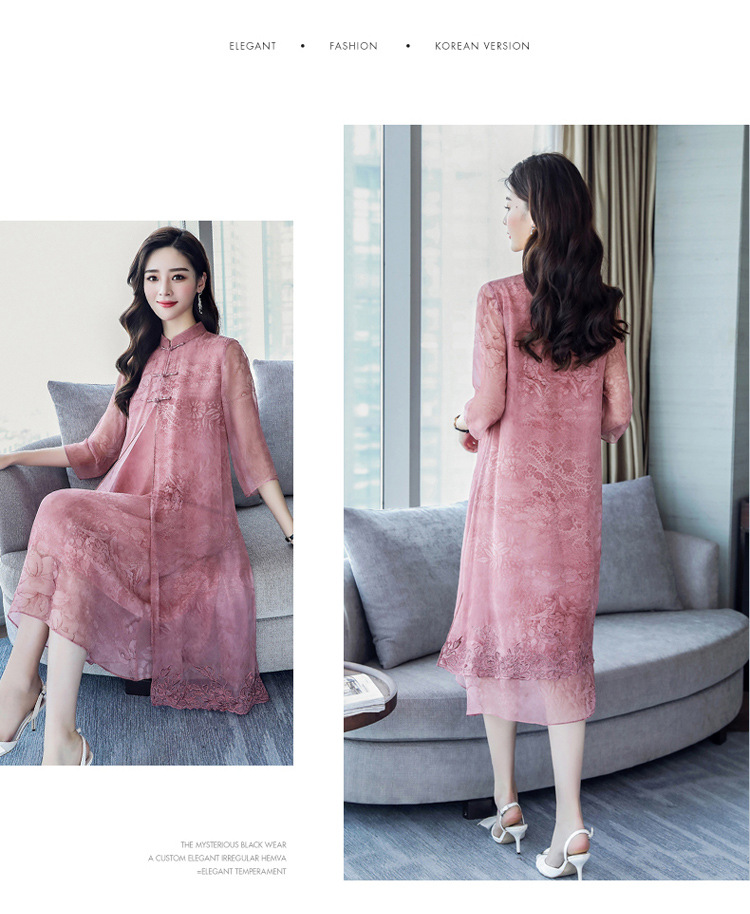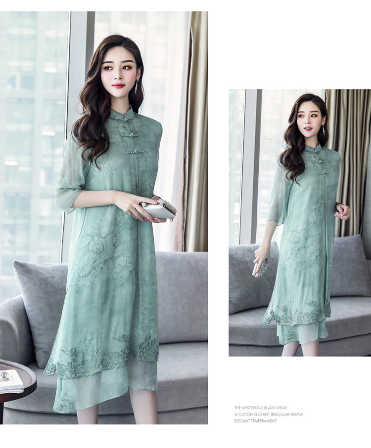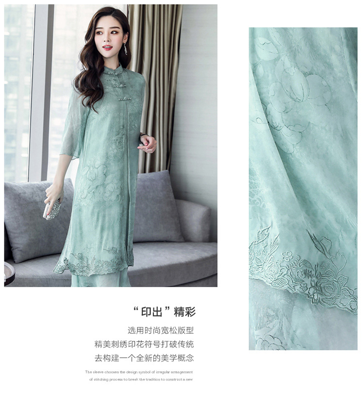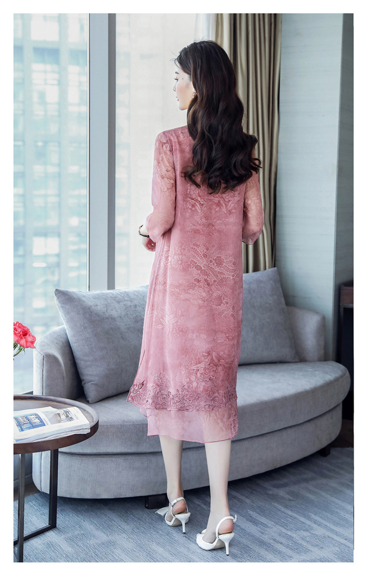 ASE-8810LWR刺绣真丝两件套连衣裙