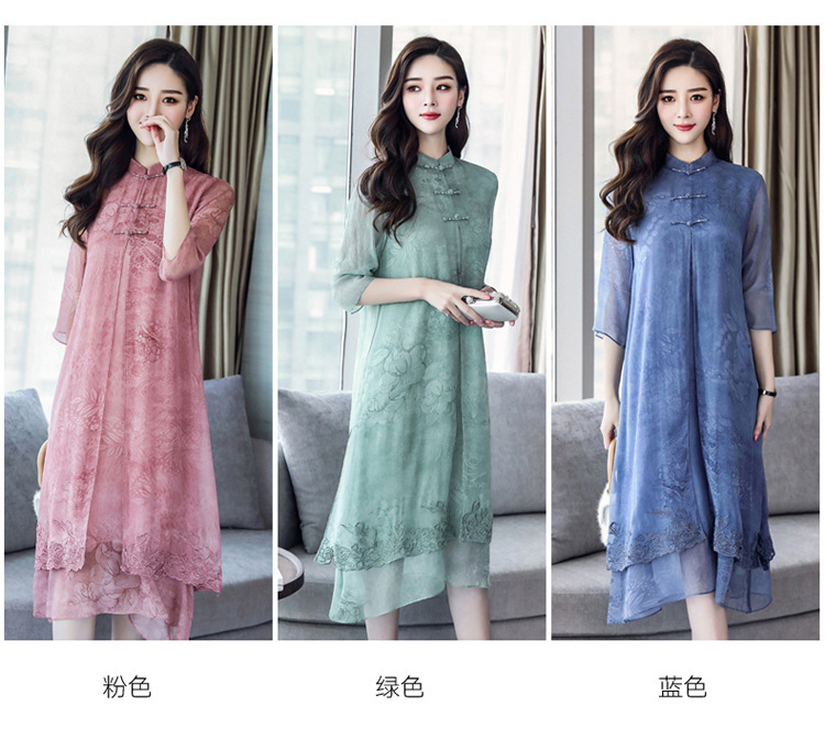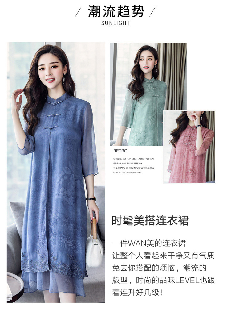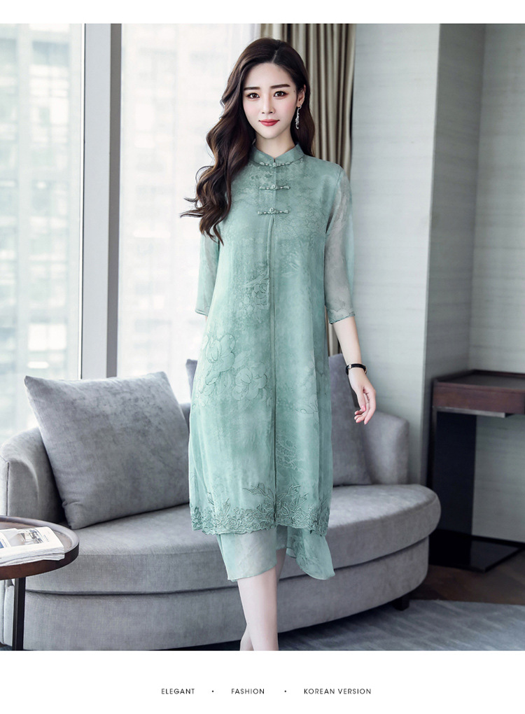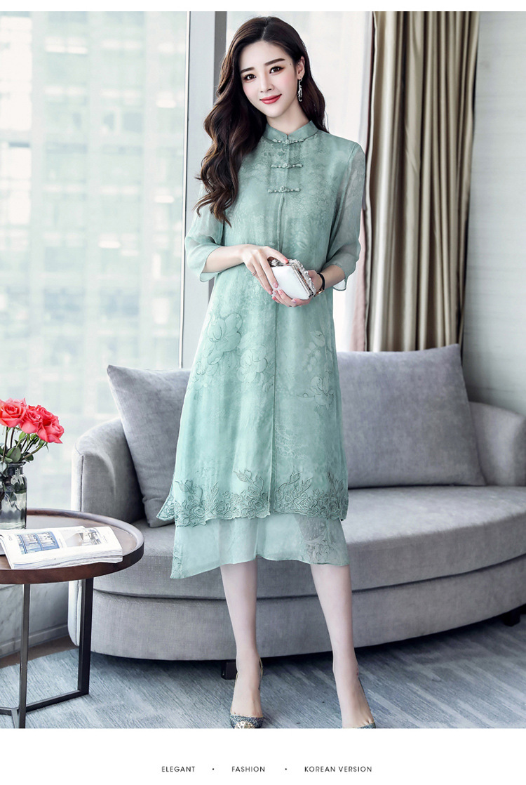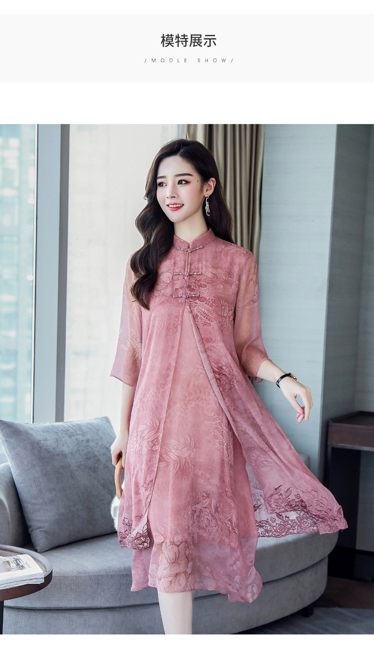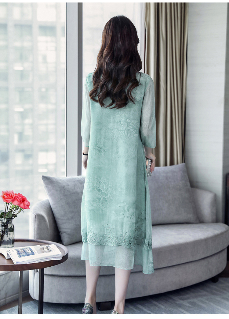 ASE-8810LWR刺绣真丝两件套连衣裙