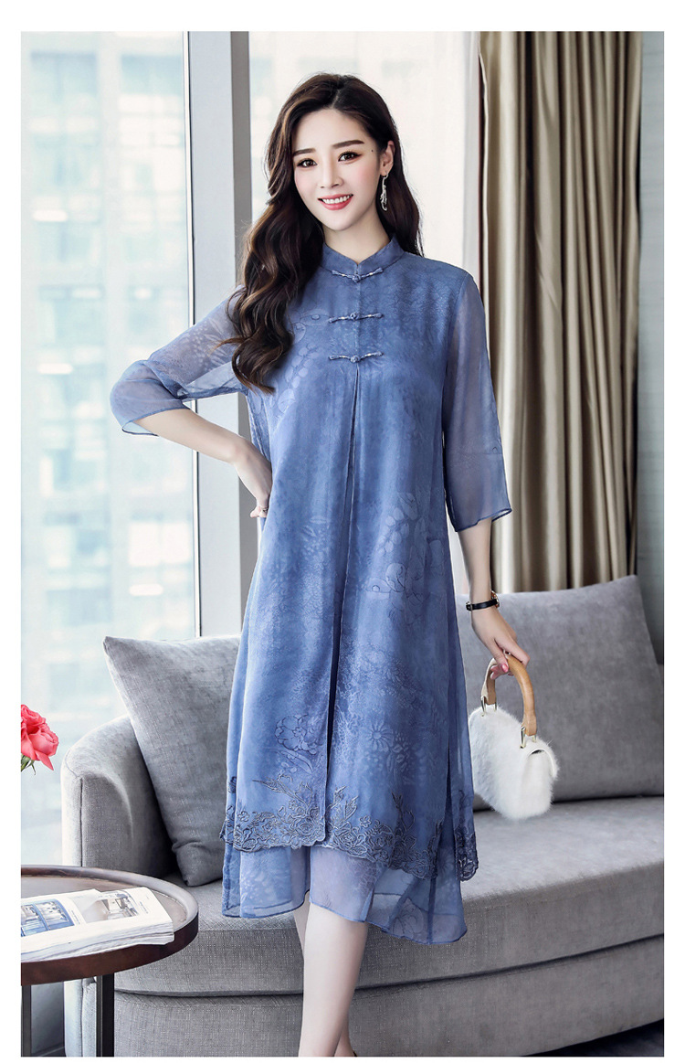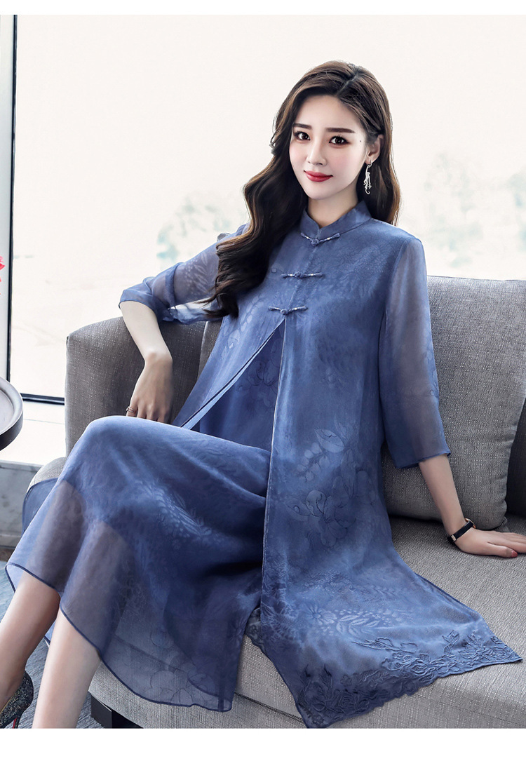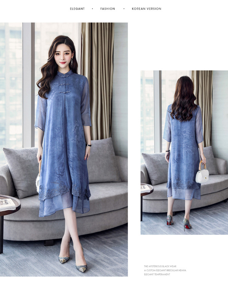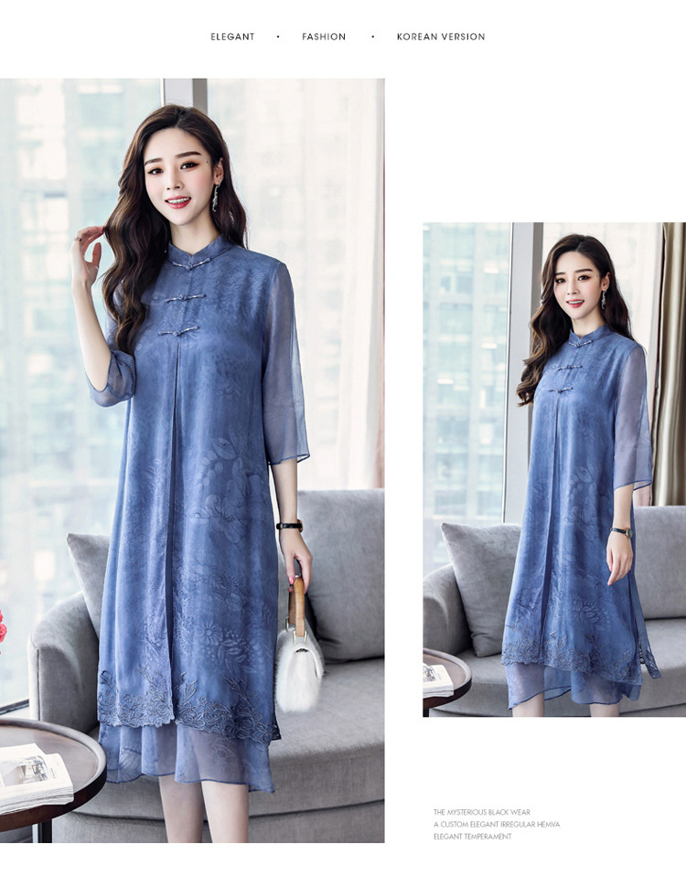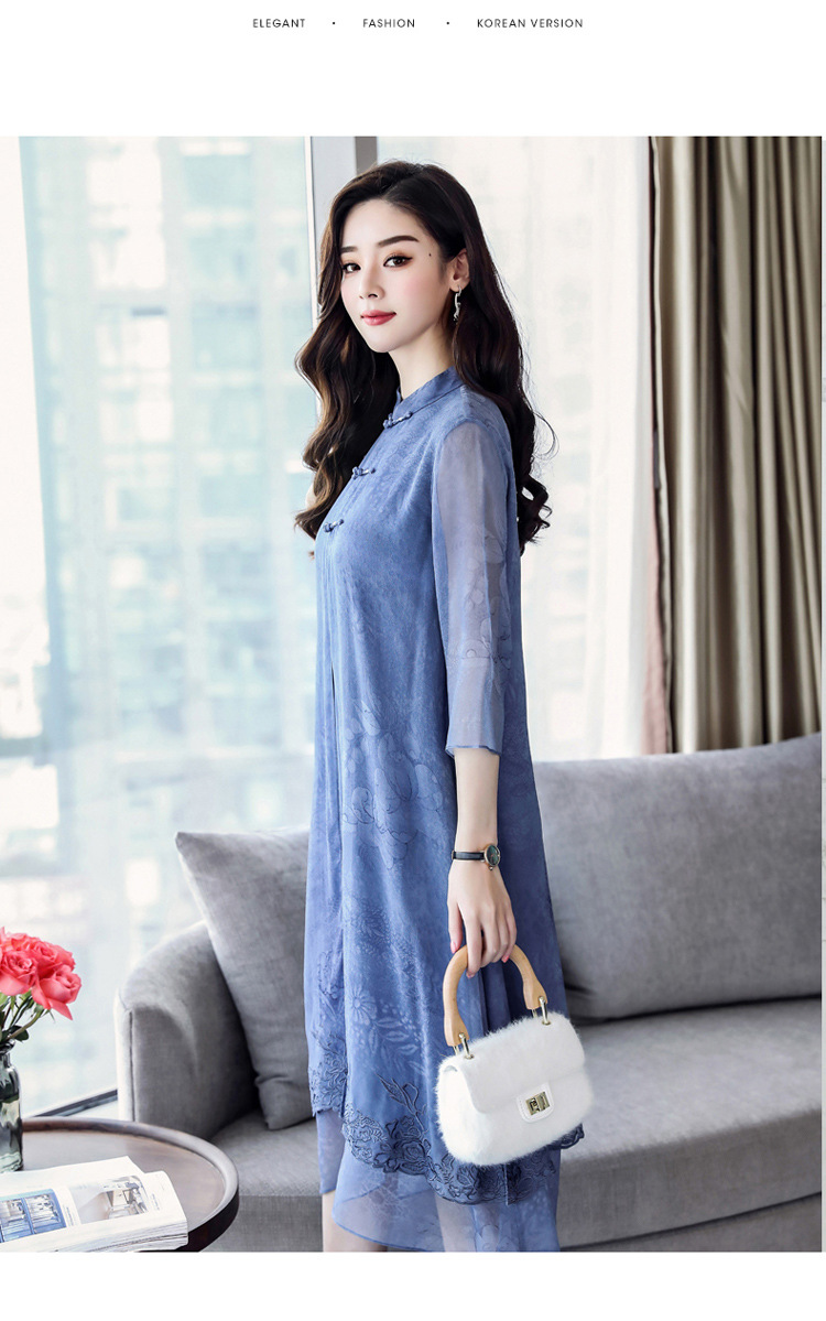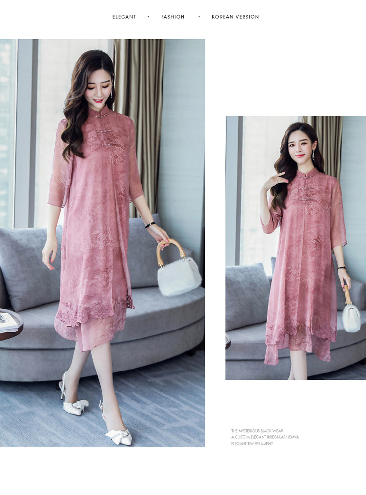 ASE-8810LWR刺绣真丝两件套连衣裙
