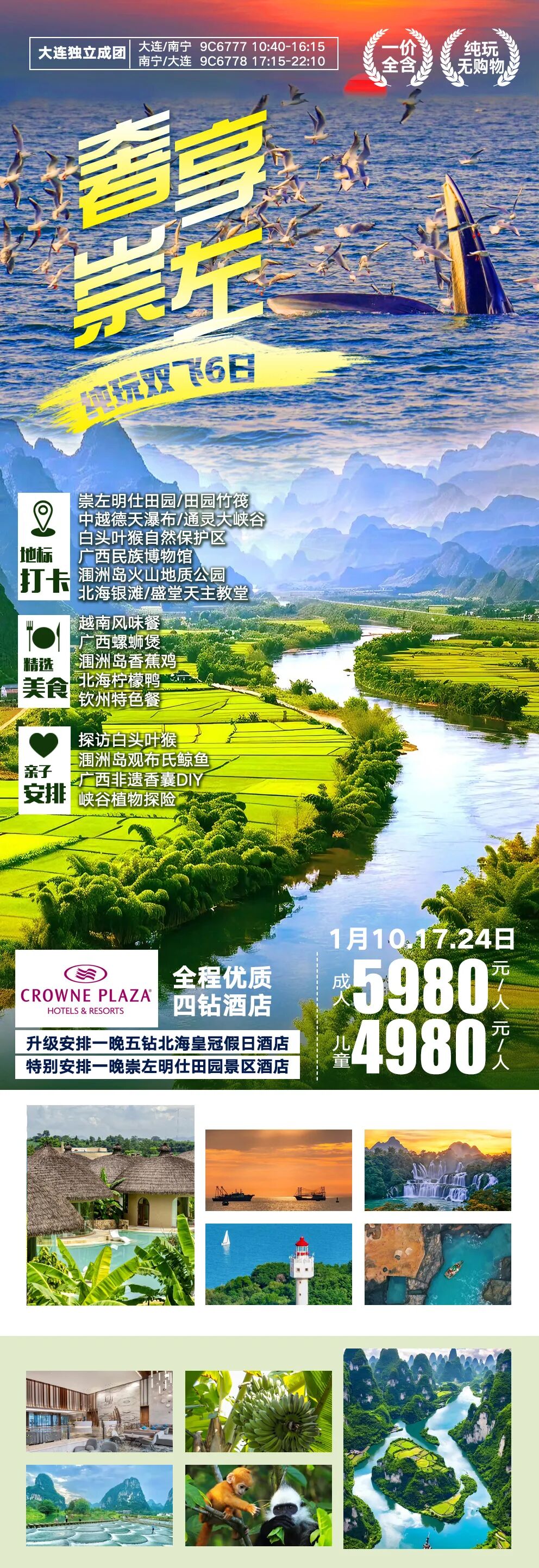 4、交通:大连南宁往返机票含税;国内空调旅游车