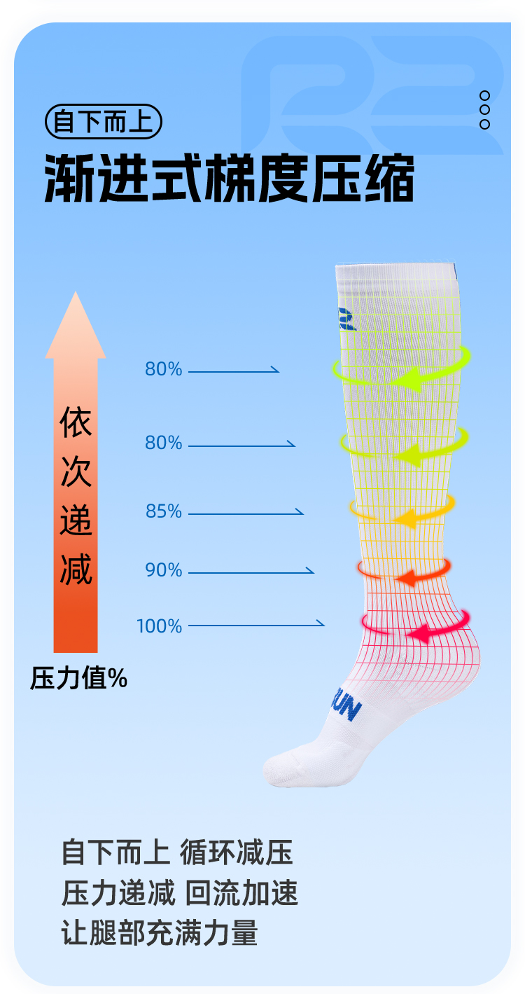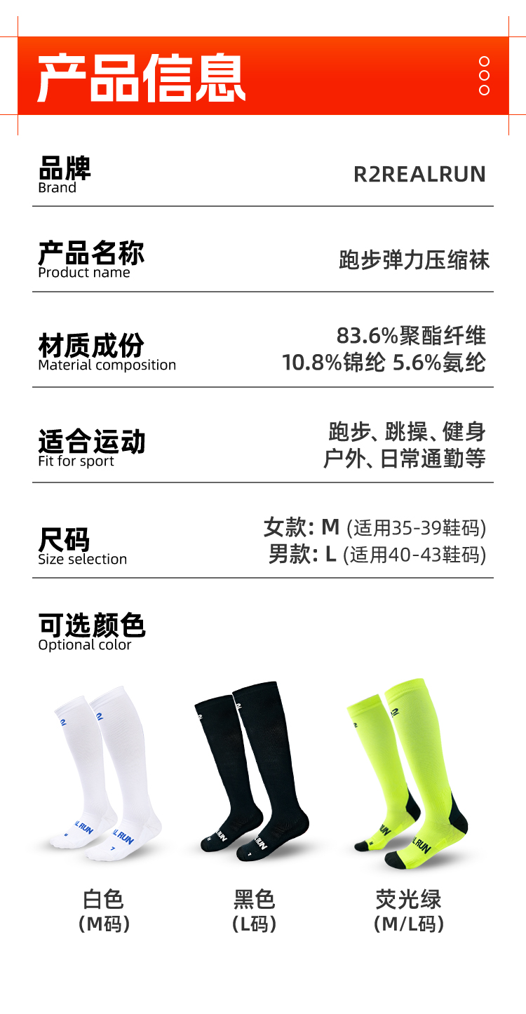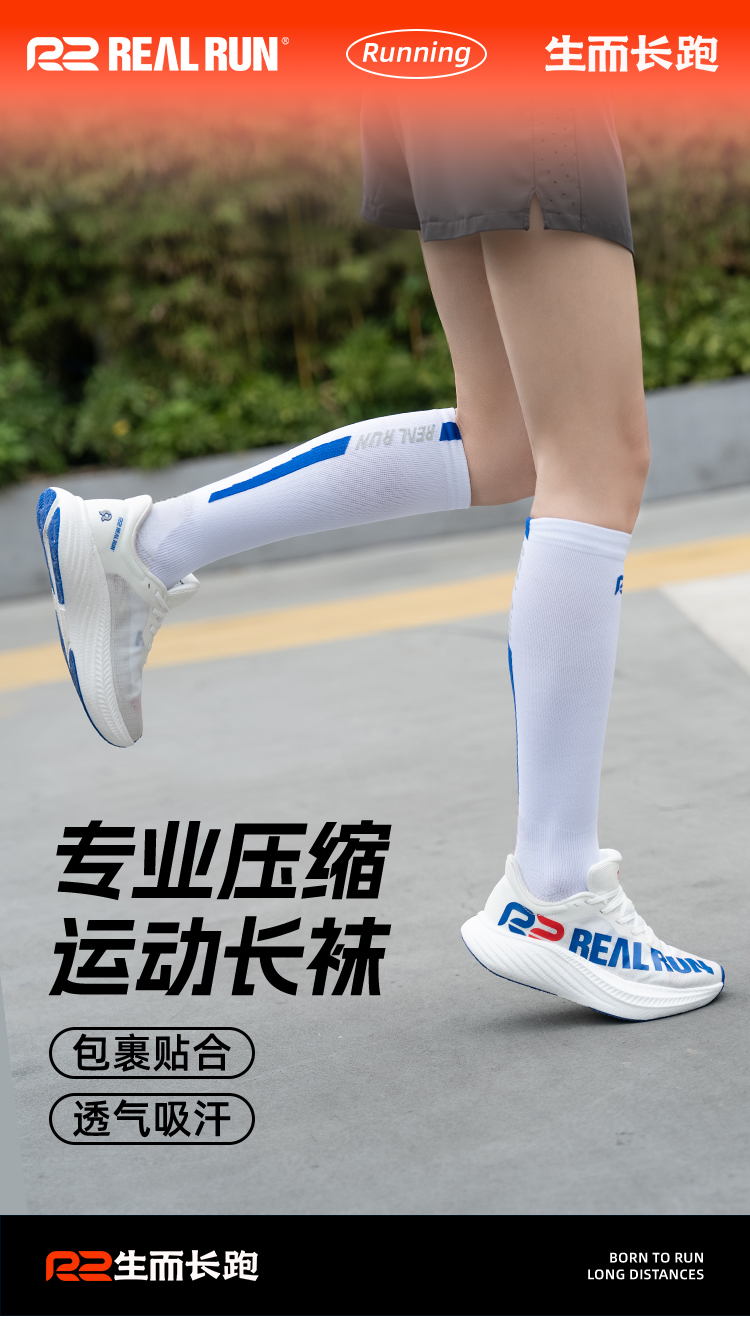 R2专业马拉松压缩长袜竞速压力长筒袜男女跑步袜户外运动透气速干