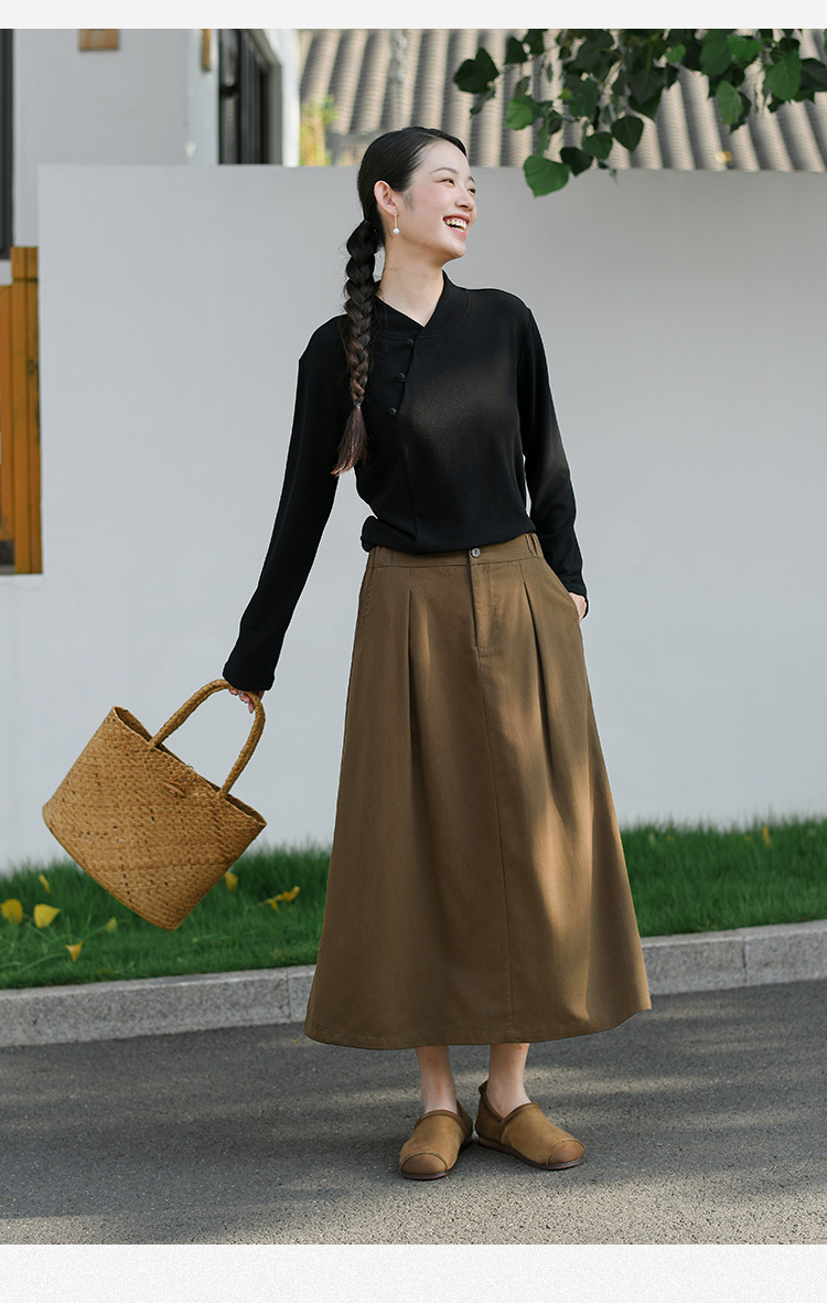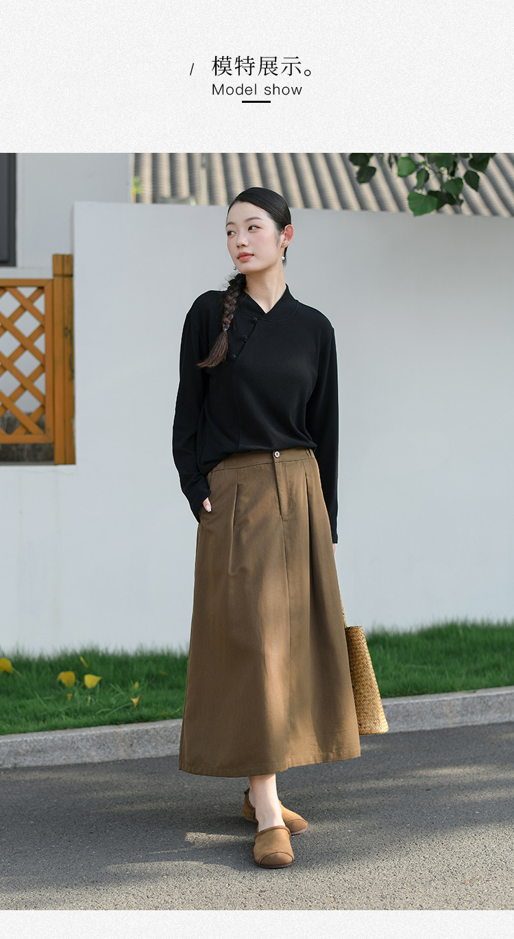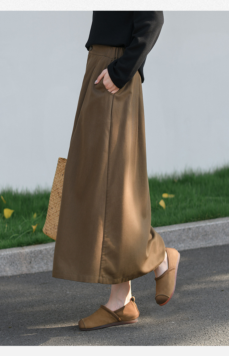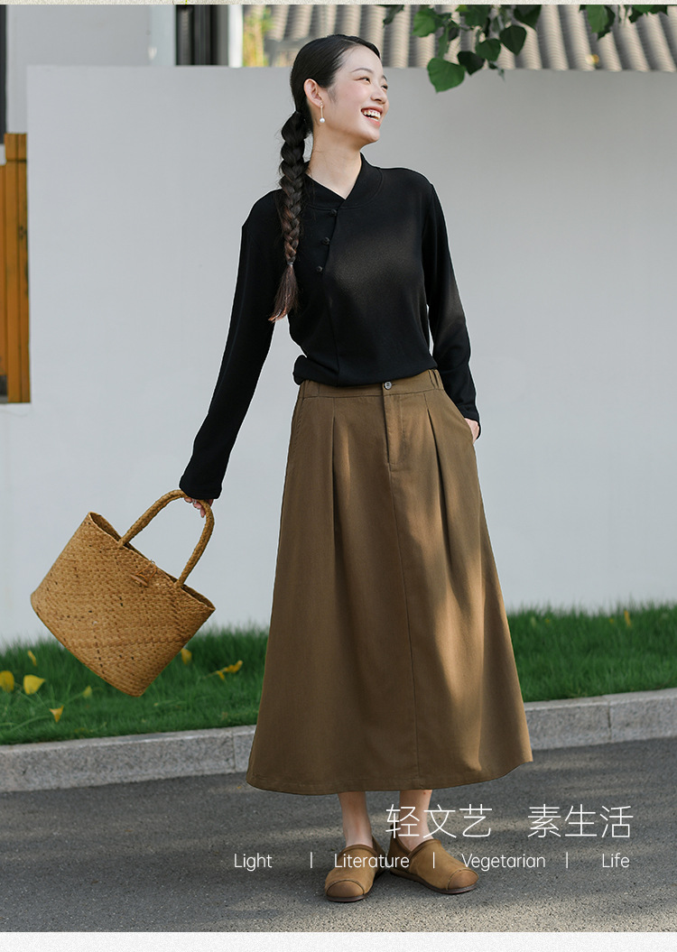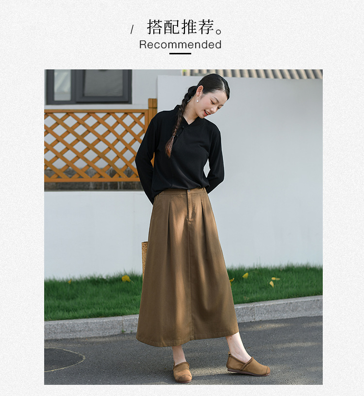 文艺纯色百搭半身裙,设计感抗皱垂感a字长裙QM-6367