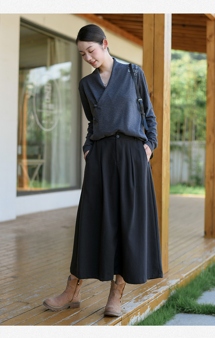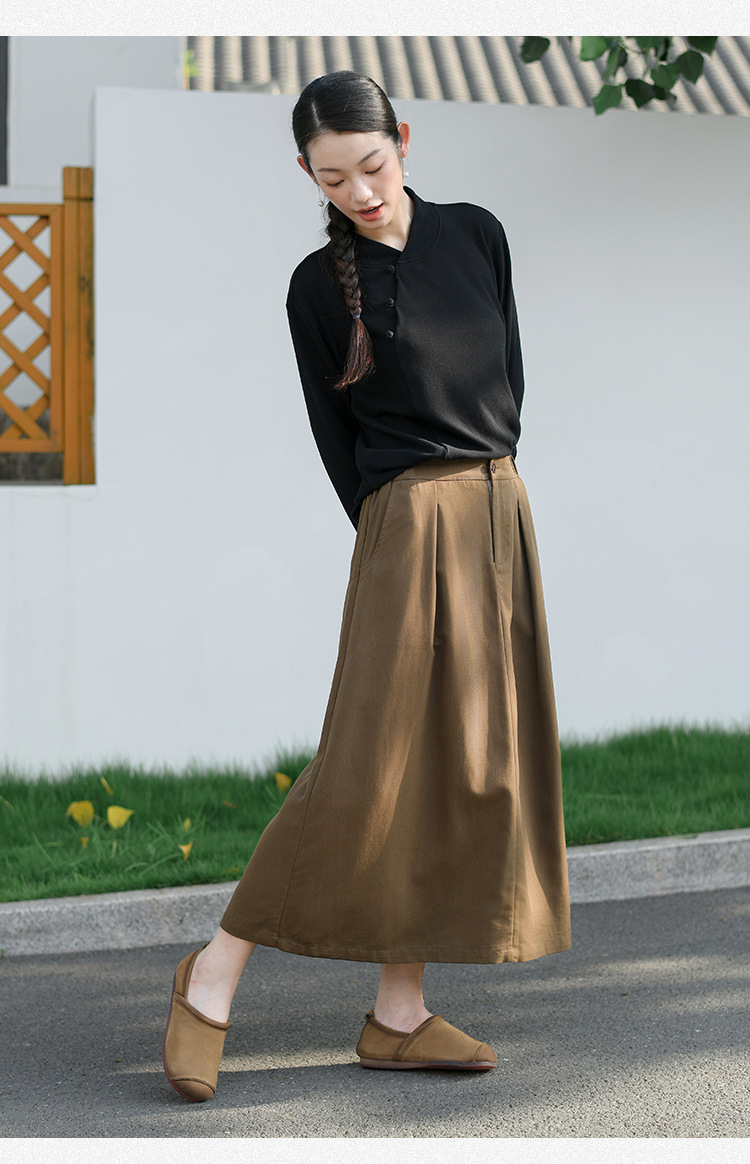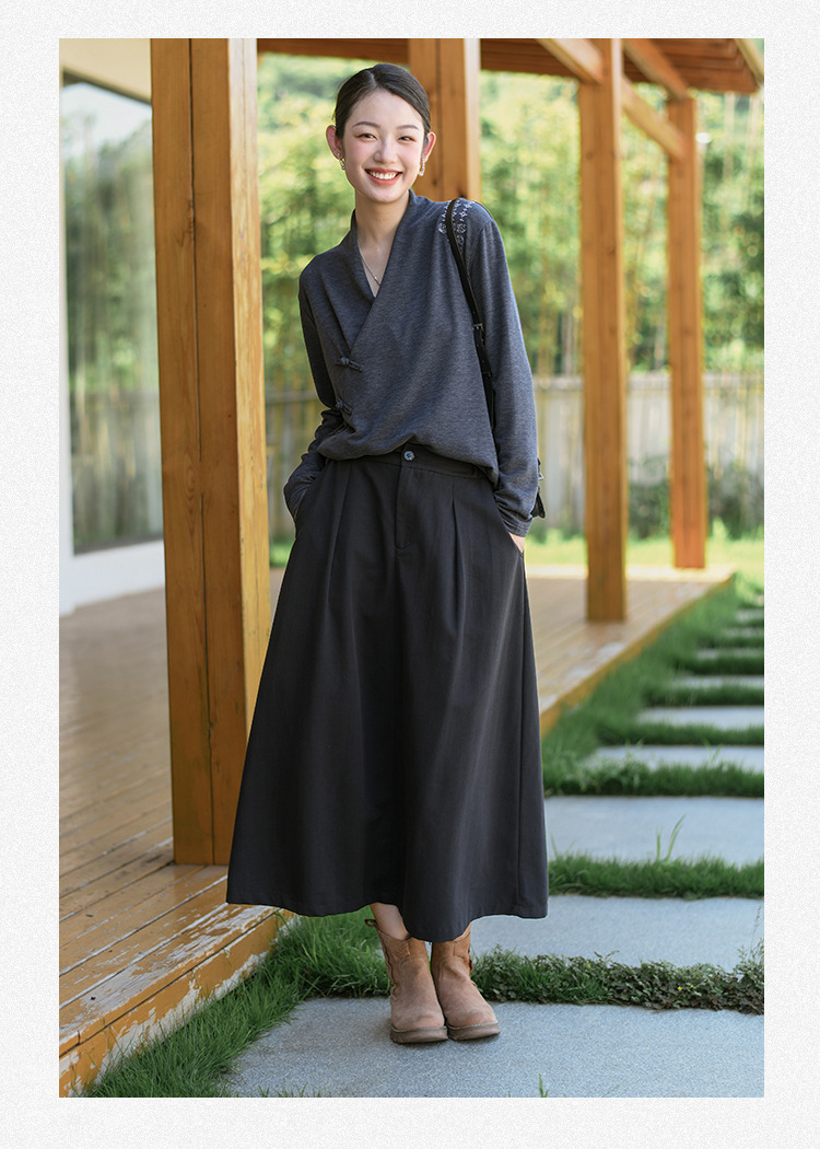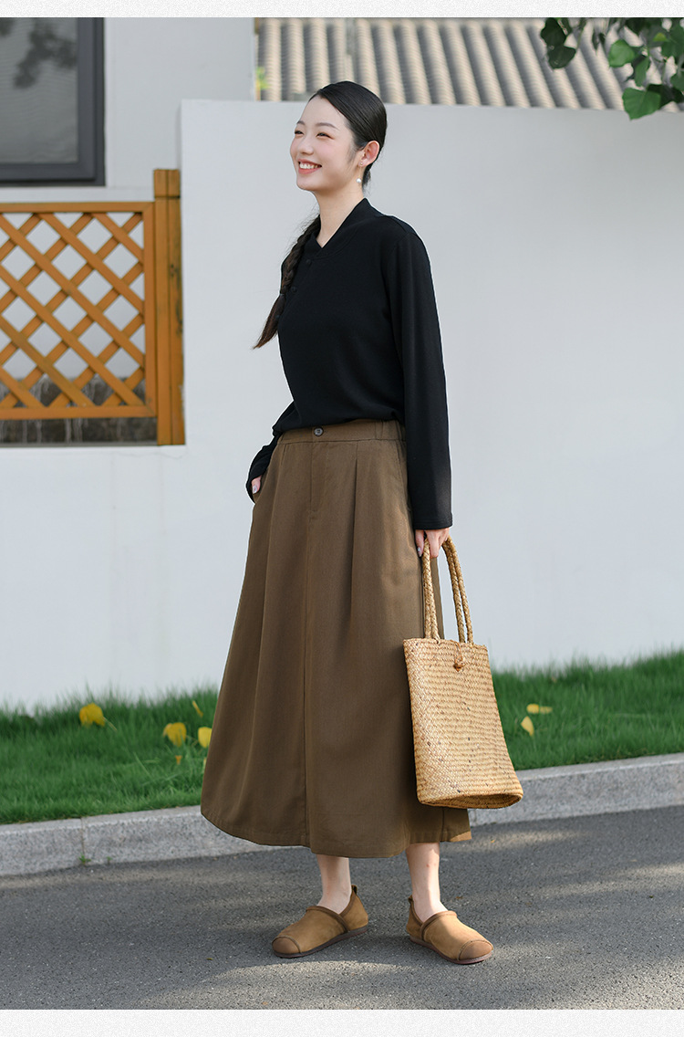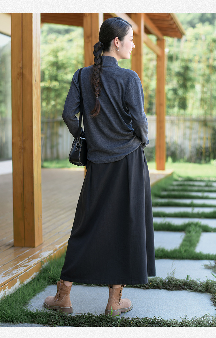 文艺纯色百搭半身裙,设计感抗皱垂感a字长裙QM-6367