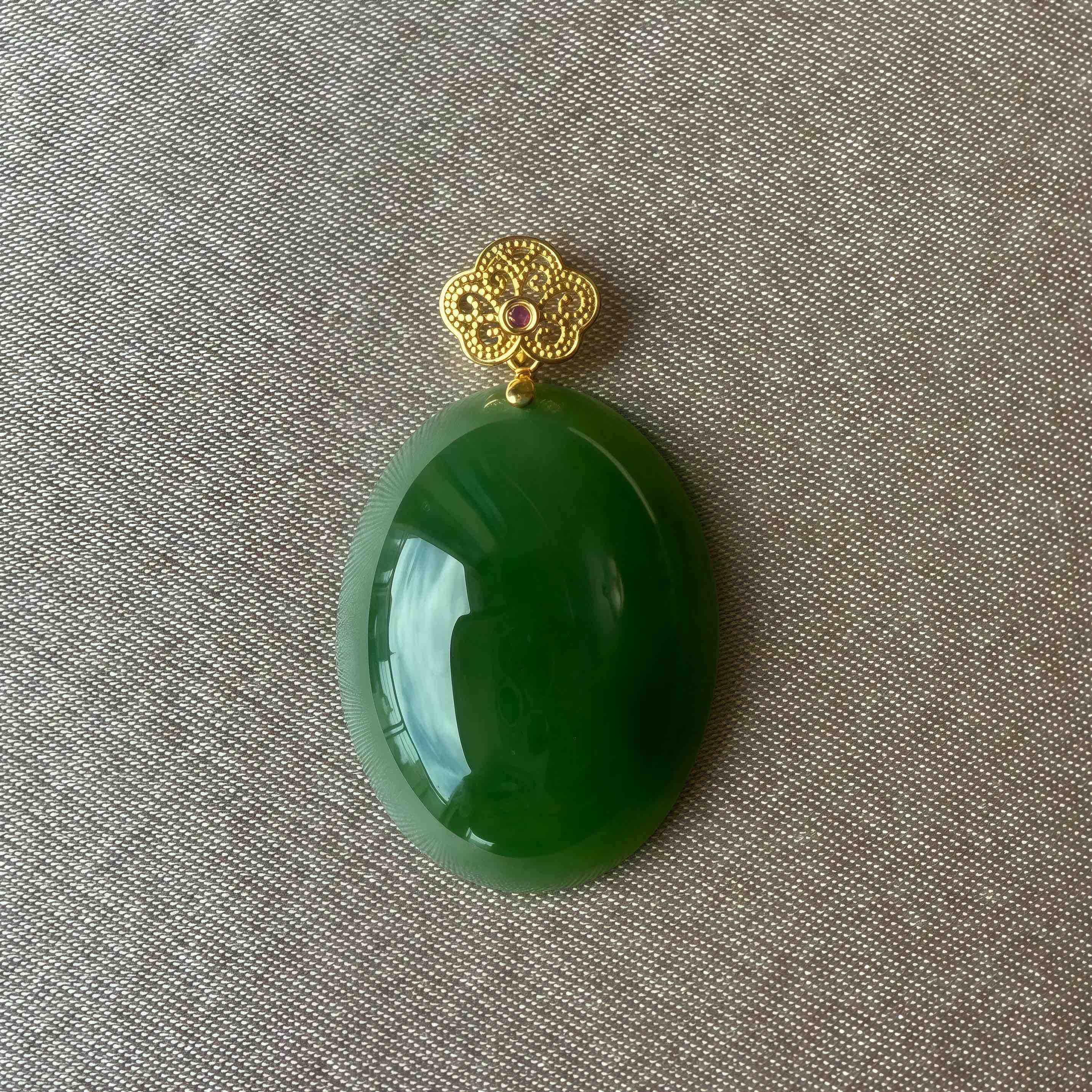 18K玫瑰金和田玉(碧玉)蛋面吊坠
