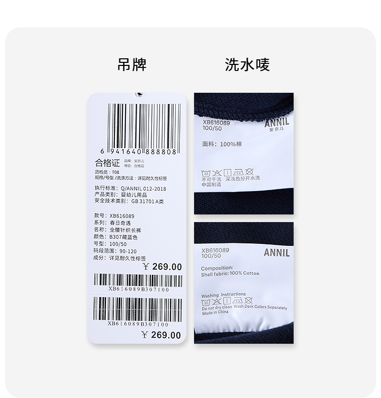 【实体店同款】男童全腰针织长裤春季新款安奈儿童装XB616089