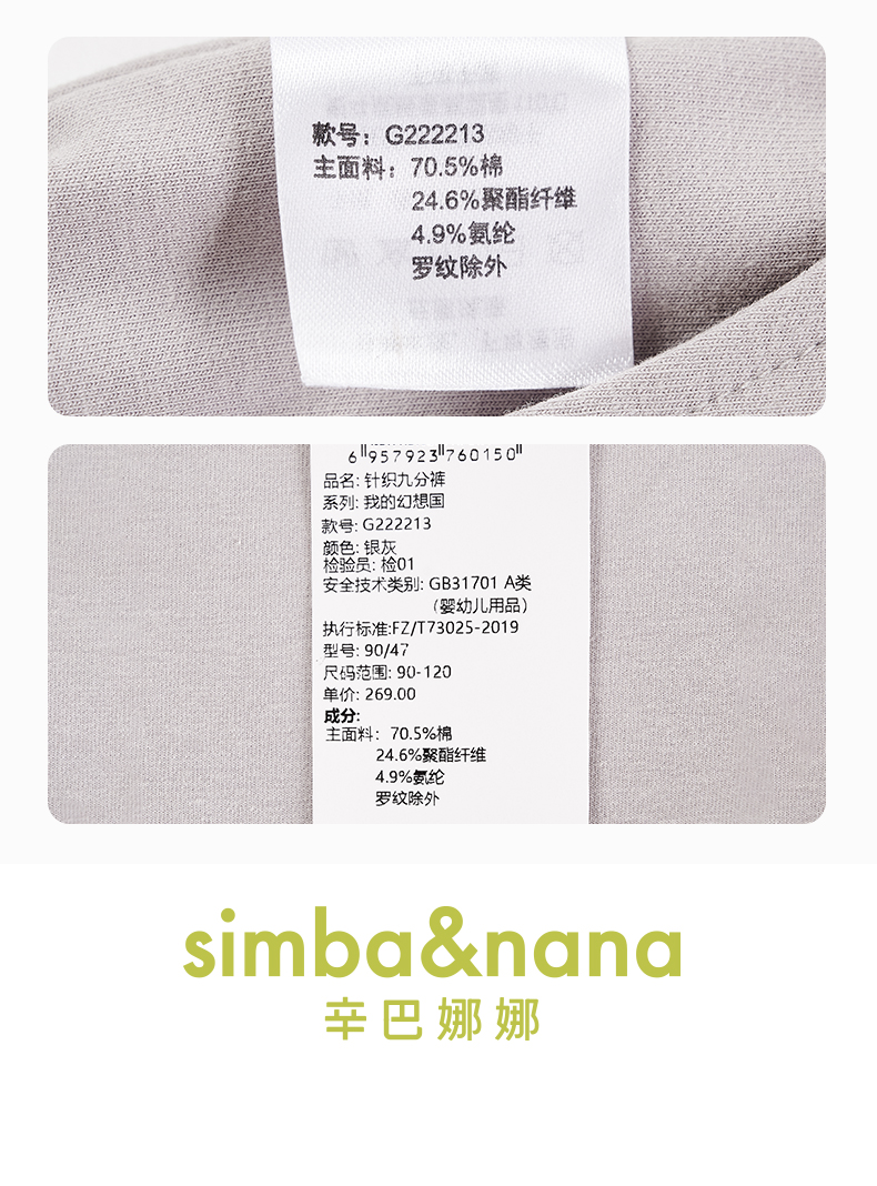【辛巴娜娜】simbanana童装女童裤子新款儿童小童宝宝时尚百搭休闲九分裤