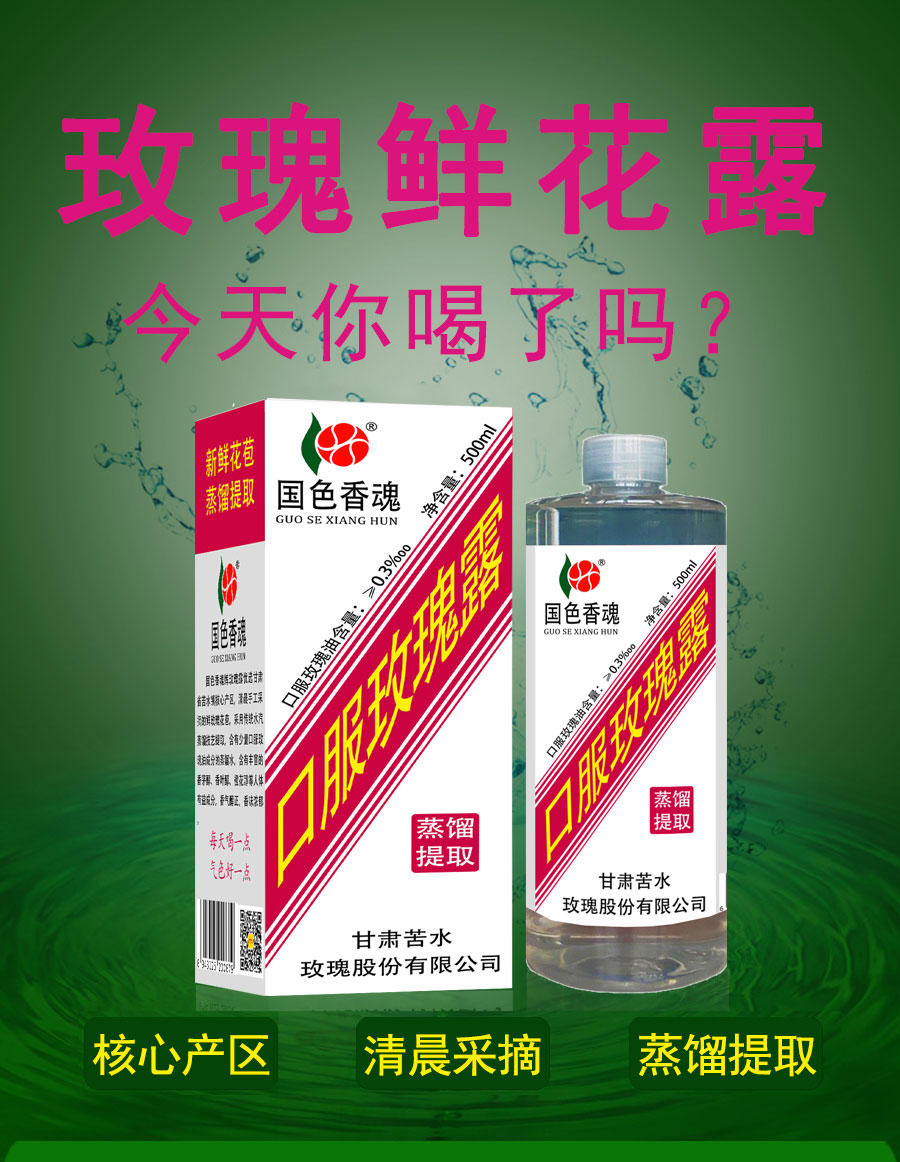 国色香魂牌口服玫瑰露500ml甘肃核心产区玫瑰蒸馏提取补水滋养
