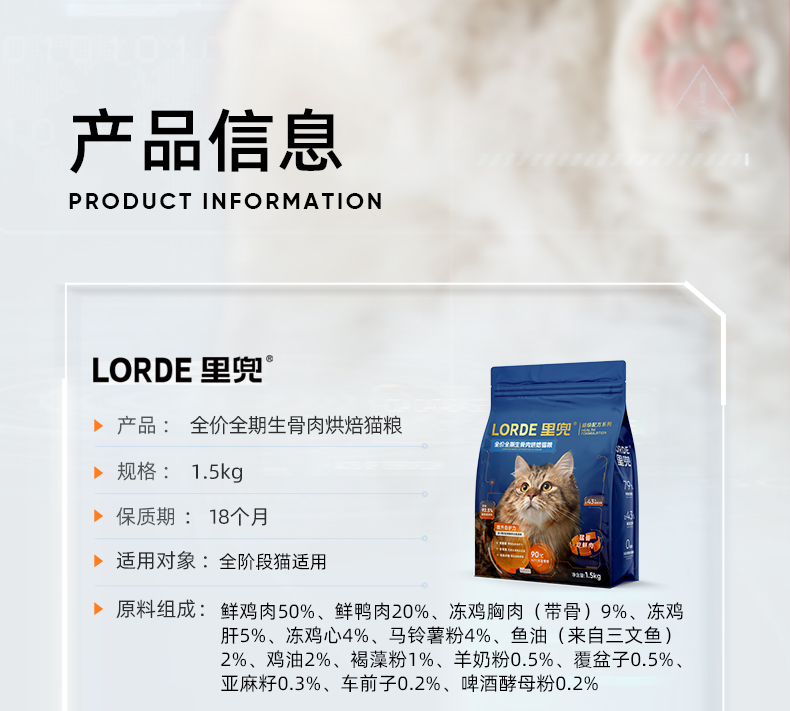 LORDE里兜全价全期生骨肉烘焙猫粮1.5kg