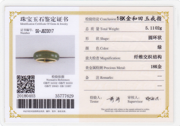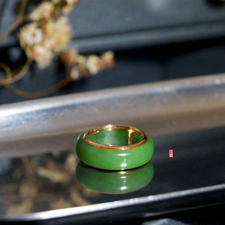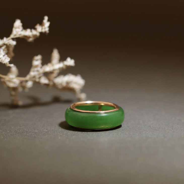 18K玫瑰金和田玉(碧玉)戒指