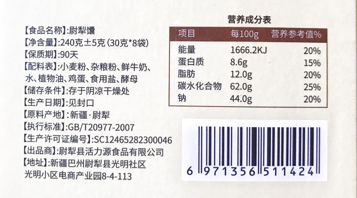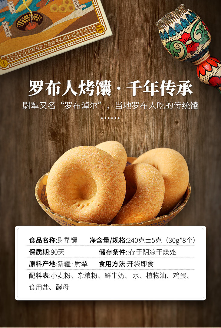 尉犁县杂粮馕240克*3 【30克/个*8个/盒240克*3 】 八种口味混装