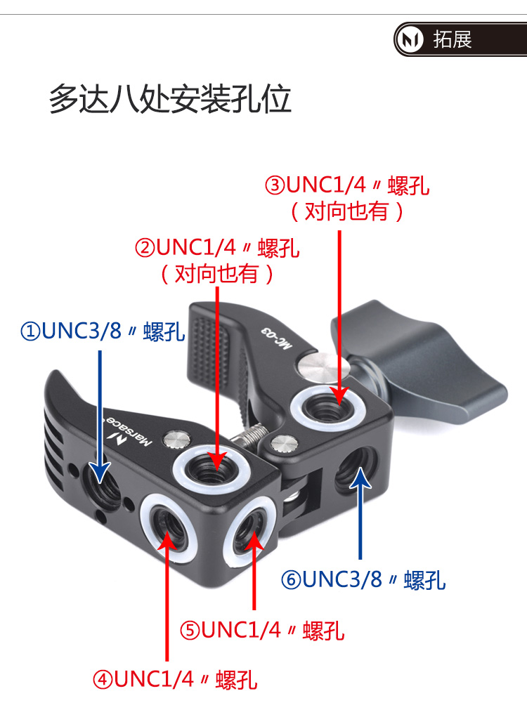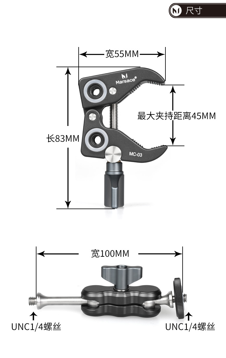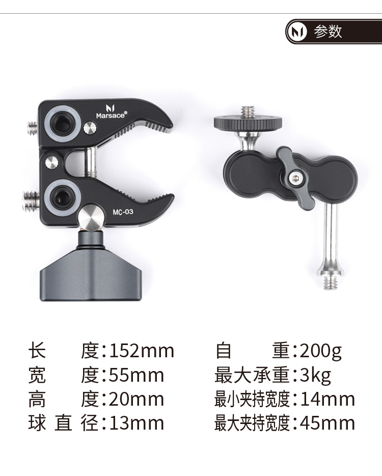 马小路Marsace MC-03大力夹魔术臂套装 多拓展孔接口(深灰色)