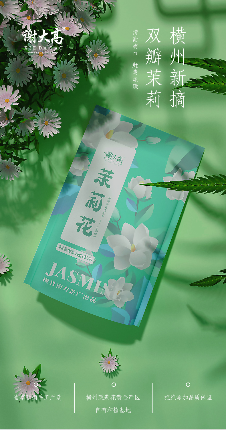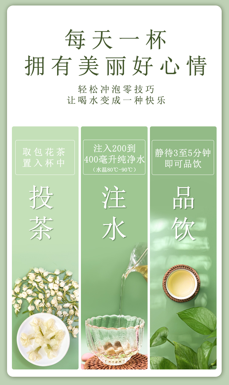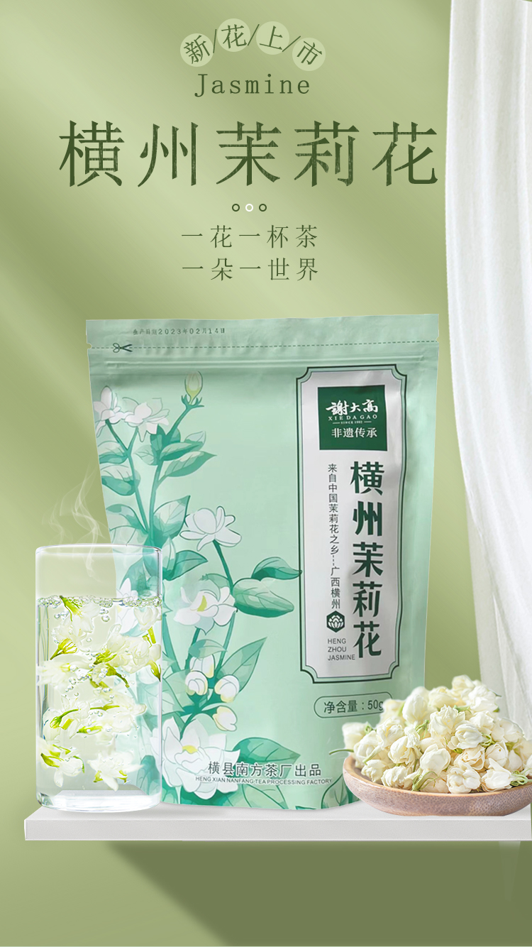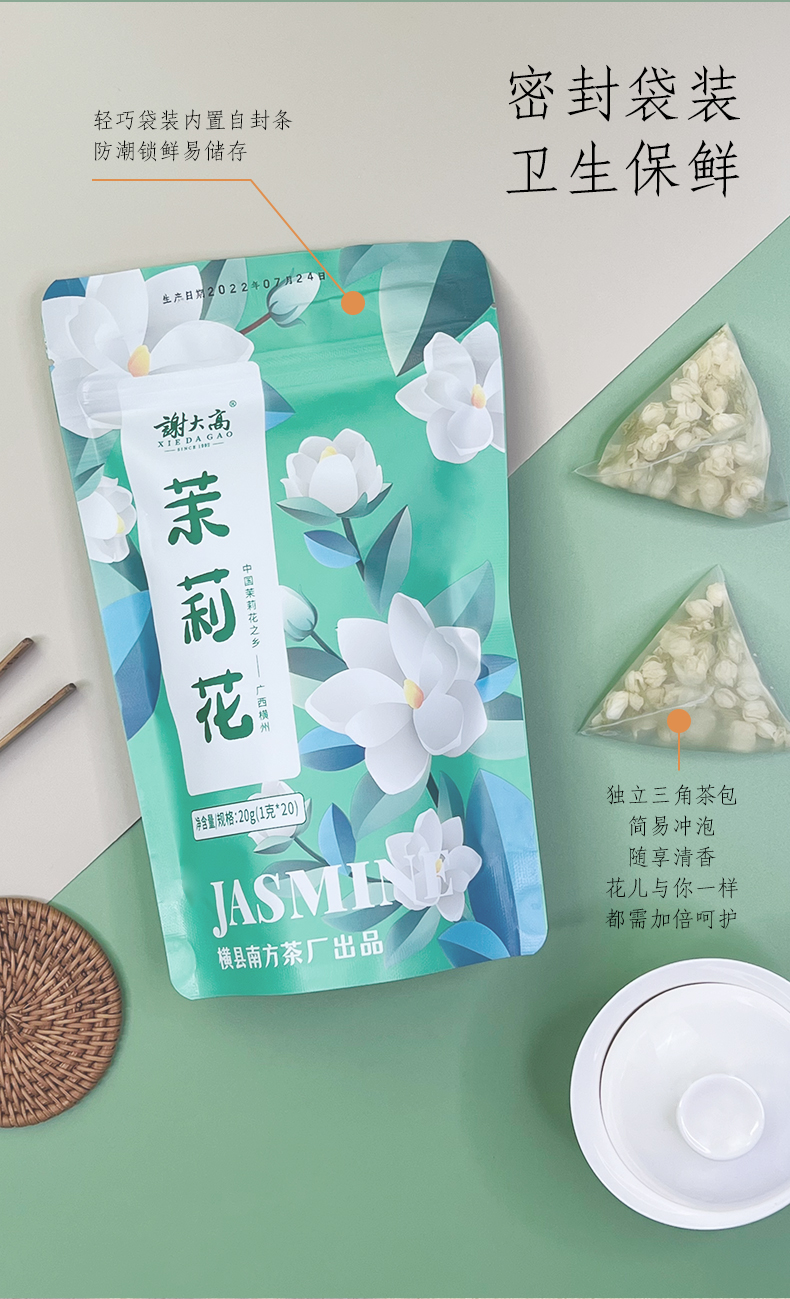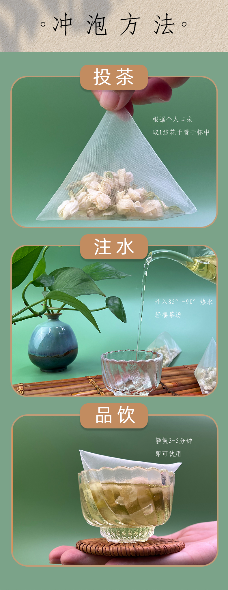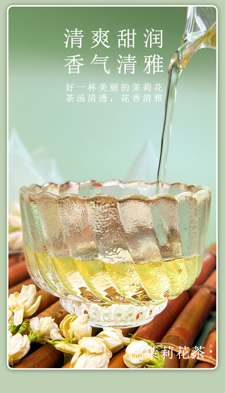 横州茉莉花 | 选用晴天午后茉莉 机器首筛人工复筛 6斤鲜花出1斤干花 花香更浓郁朵型更饱满 一花一杯茶 清爽甜润 香气清雅