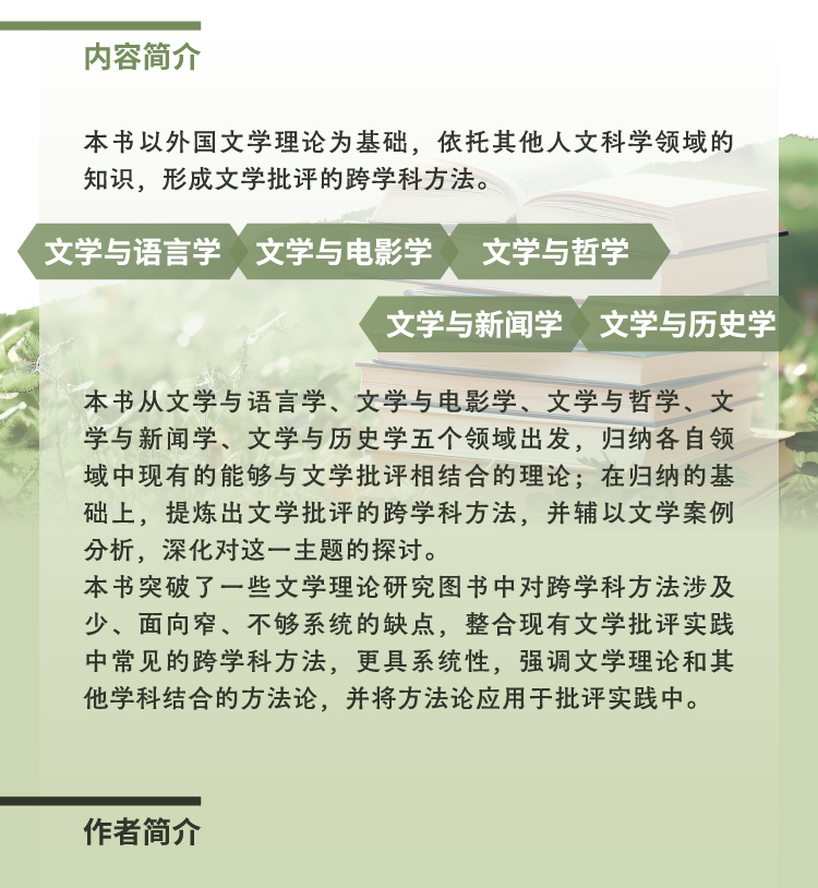本书以外国文学理论为基础,依托其他人文科学领域的知识,形成文学批评的跨学科方法。本书从文学与语言学、文学与电影学、文学与哲学、文学与新闻学、文学与历史学五个领域出发,归纳各自领域中现有的能够与文学批评相结合的理论;在归纳的基础上,提炼出文学批评的跨学科方法,并辅以文学案例分析,深化对这一主题的探讨。本书突破了一些文学理论研究图书中对跨学科方法涉及少、面向窄、不够系统的缺点,整合现有文学批评实践中常见的跨学科方法,更具系统性,强调文学理论和其他学科结合的方法论,并将方法论应用于批评实践中。