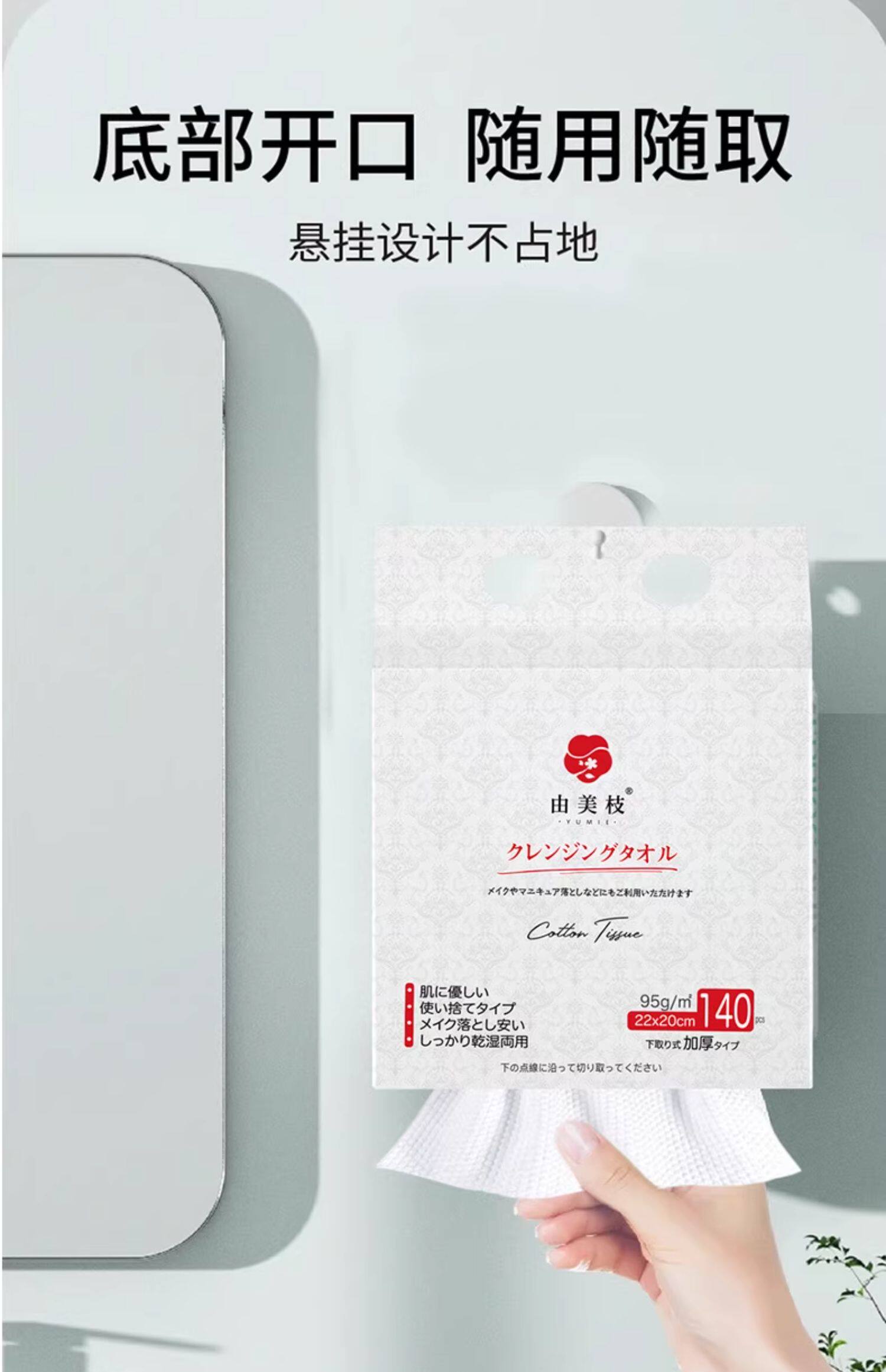 140片由美枝加厚绵柔洁面巾挂式