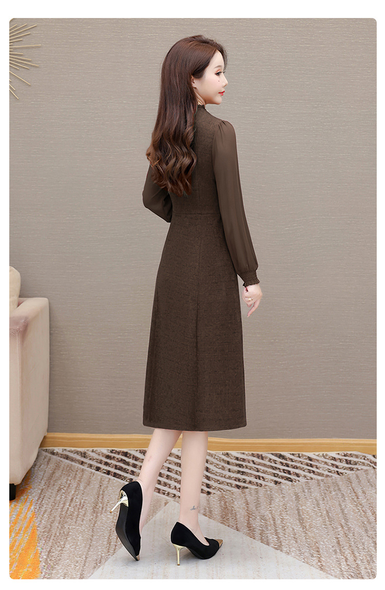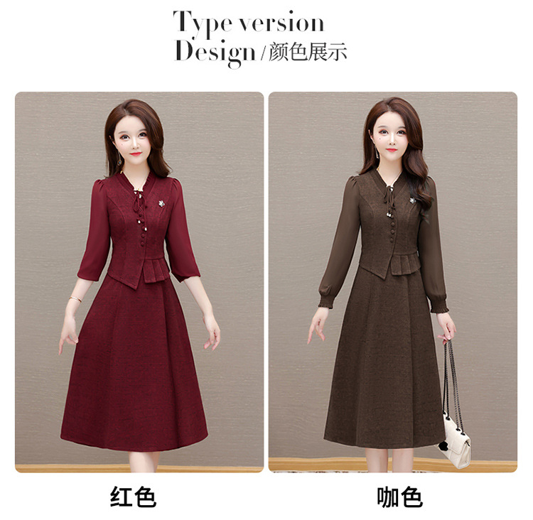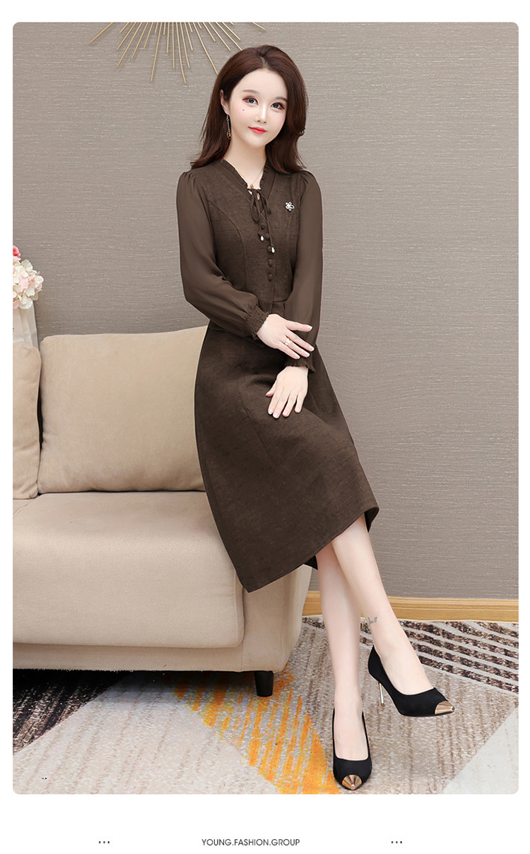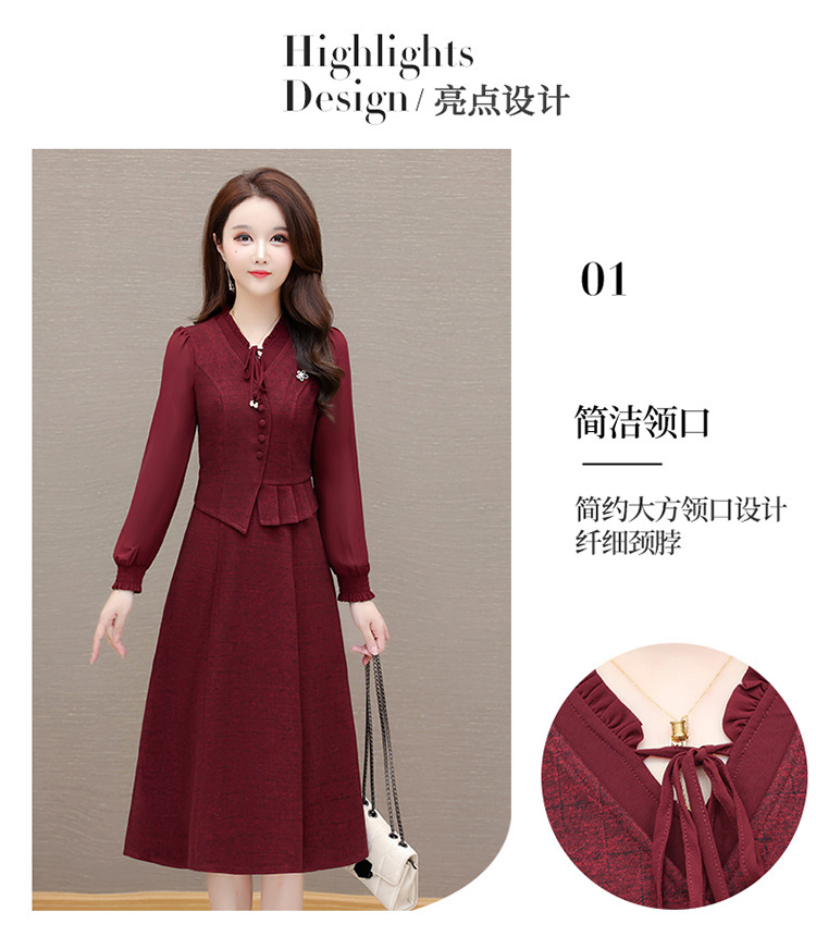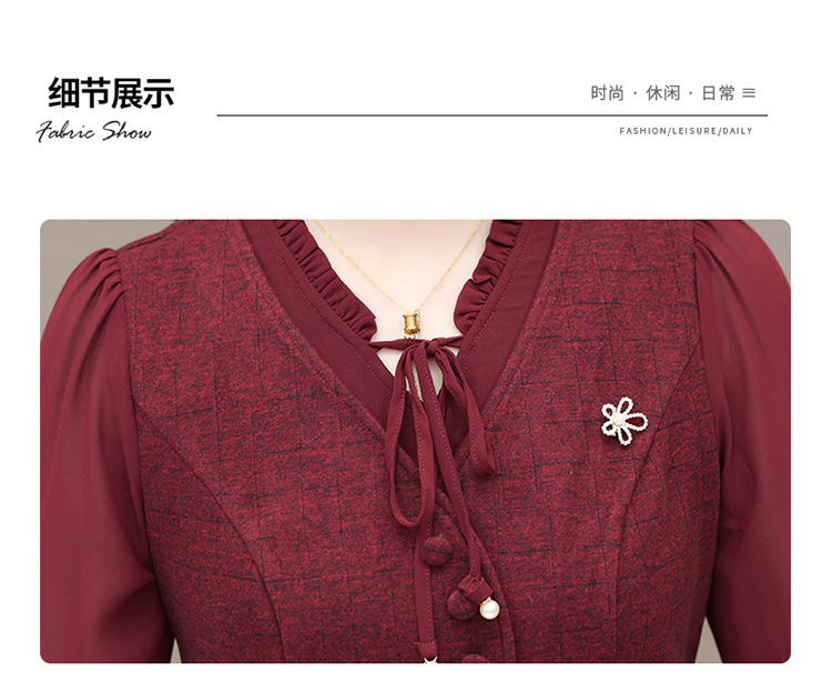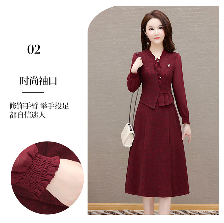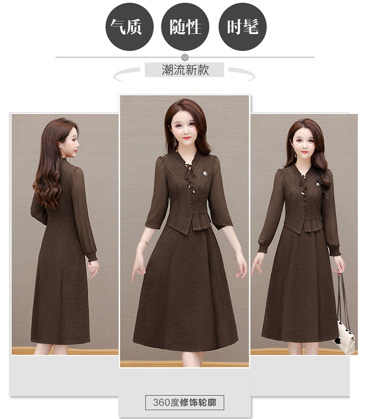 QYM 54A2503-Y假两件马甲连衣裙长袖高腰裙时尚木耳中长裙