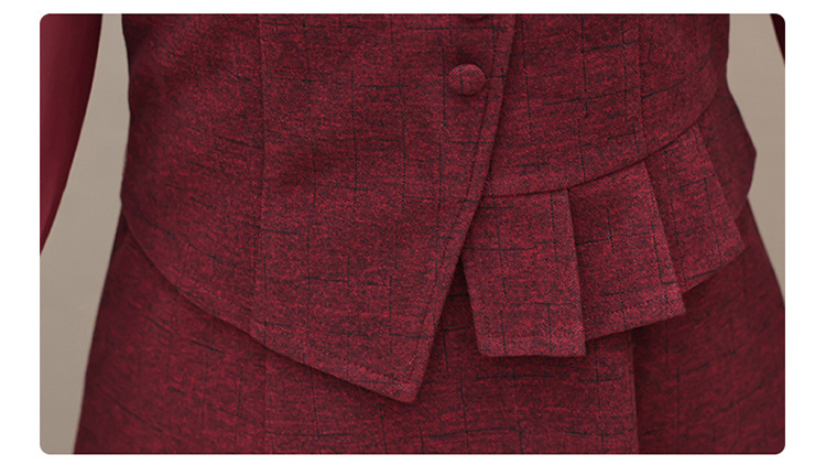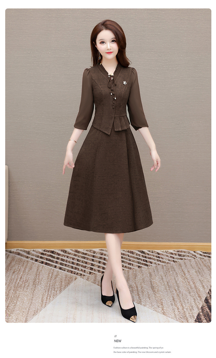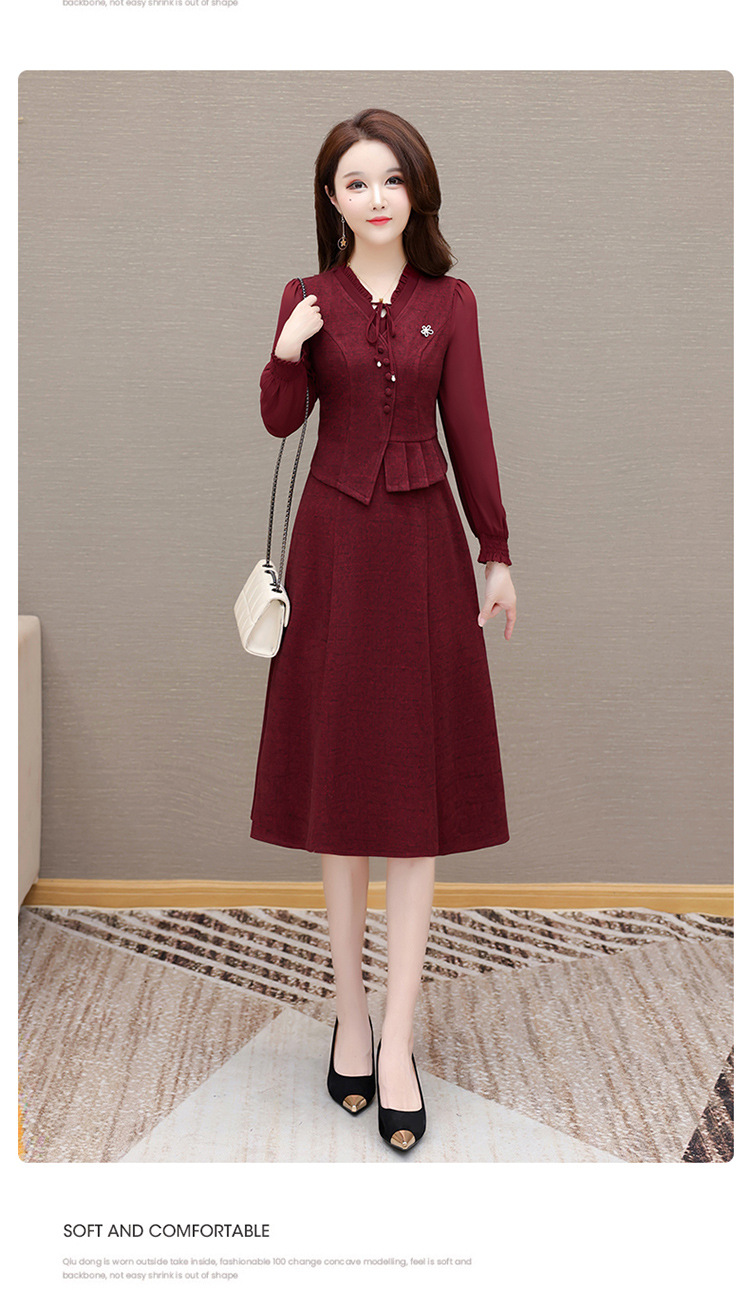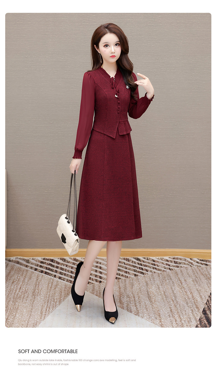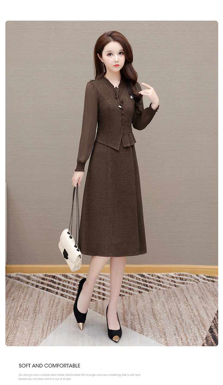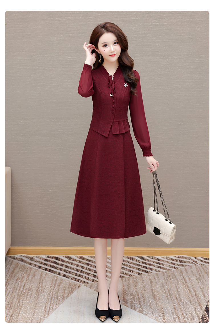 QYM 54A2503-Y假两件马甲连衣裙长袖高腰裙时尚木耳中长裙