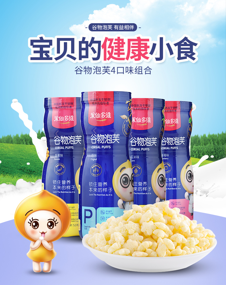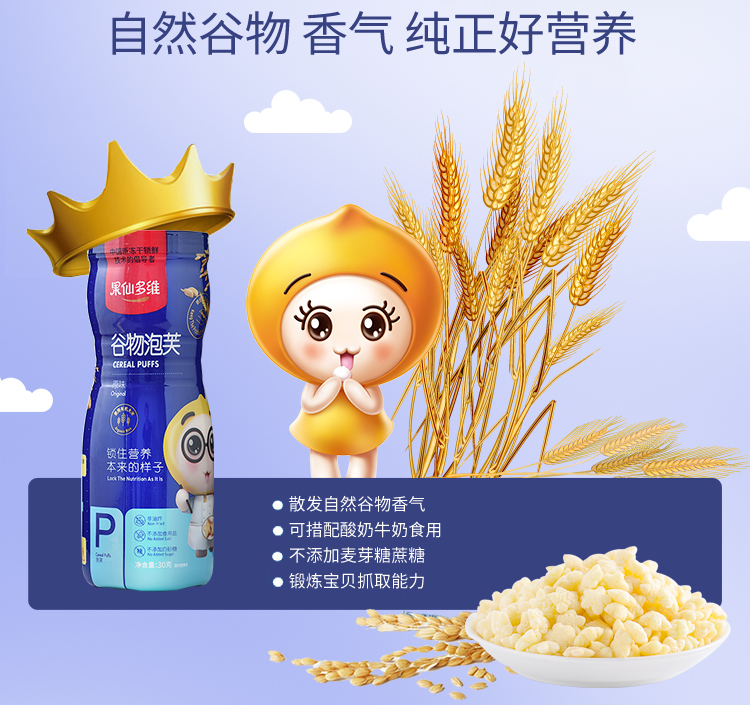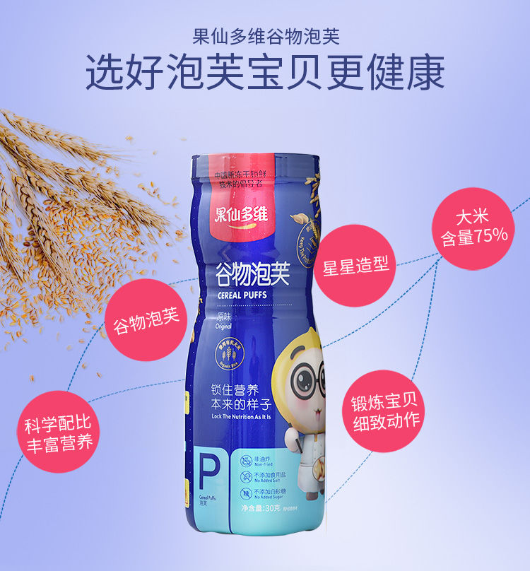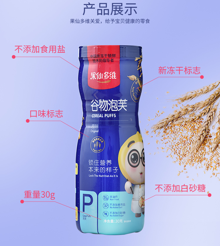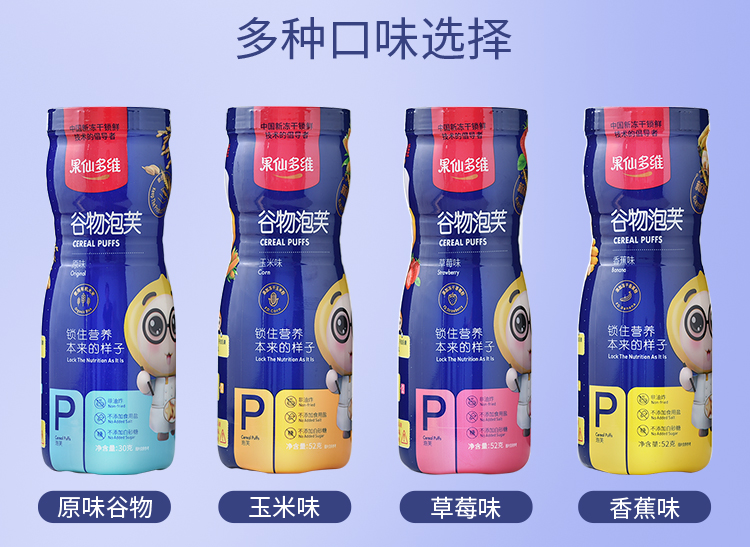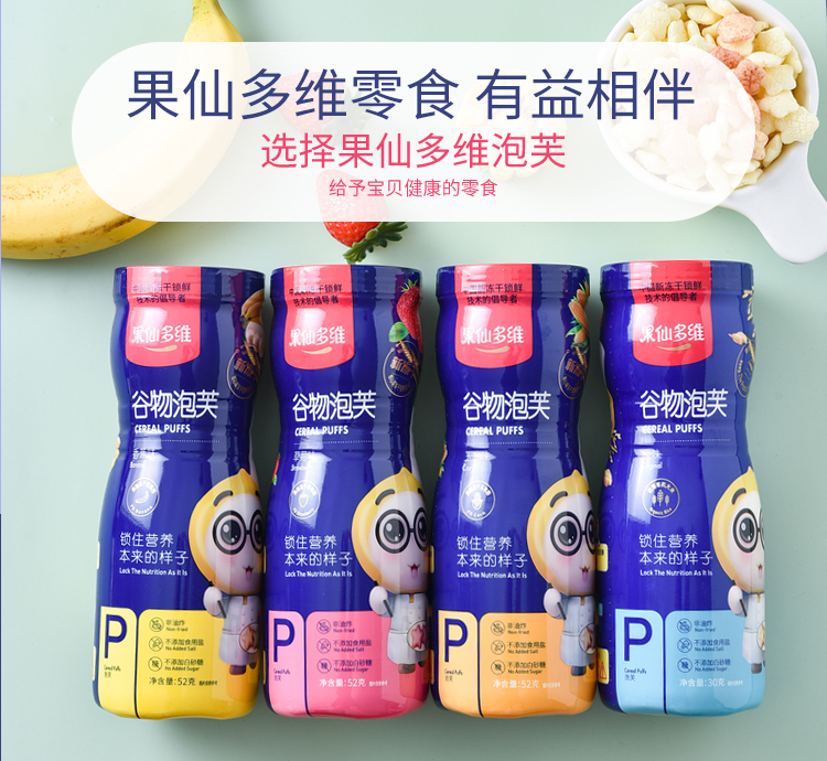 果仙多维谷物泡芙 宝宝婴儿辅食零食多口味不加糖盐非油炸52g(买3罐得4罐)