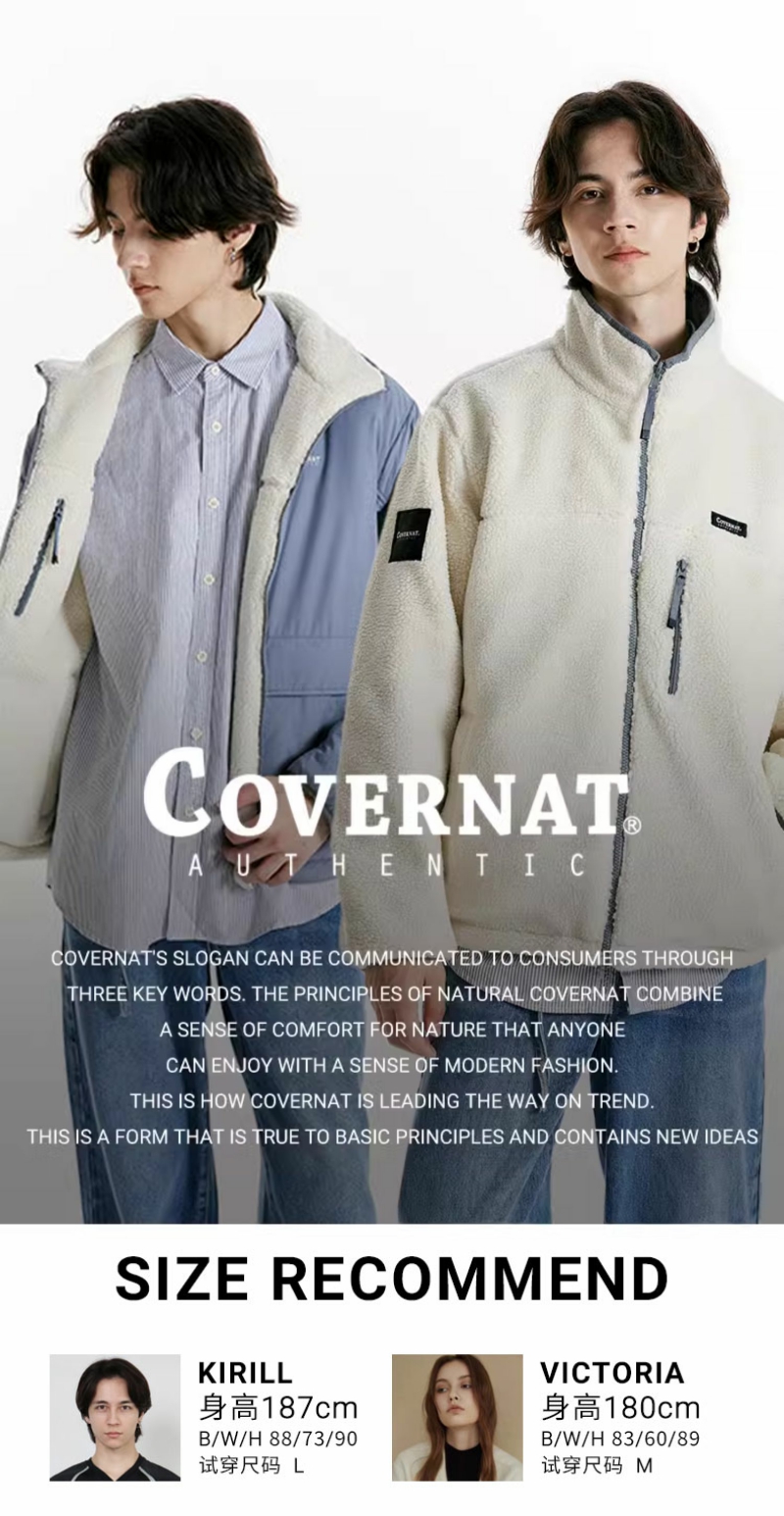 Covernat摇粒绒拉链棉夹克男女2024秋冬新品双面穿毛绒棉外套CO2203JK02