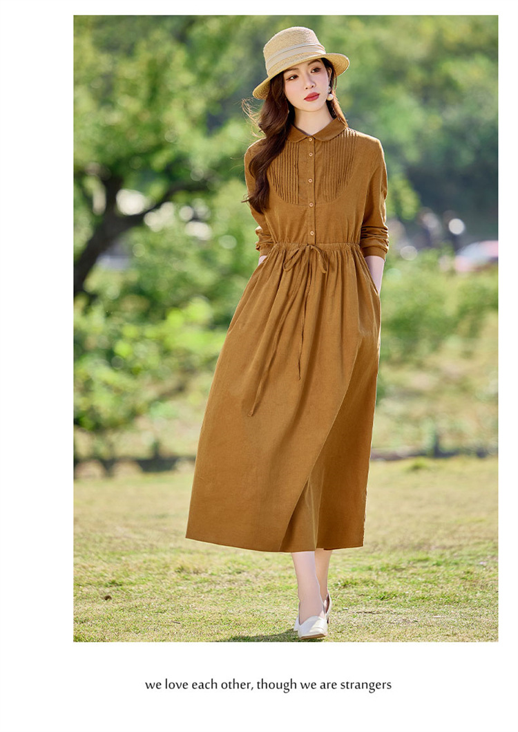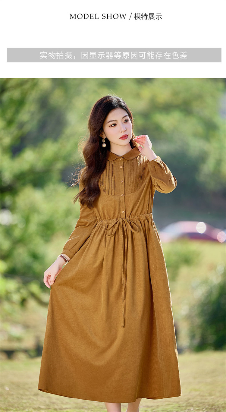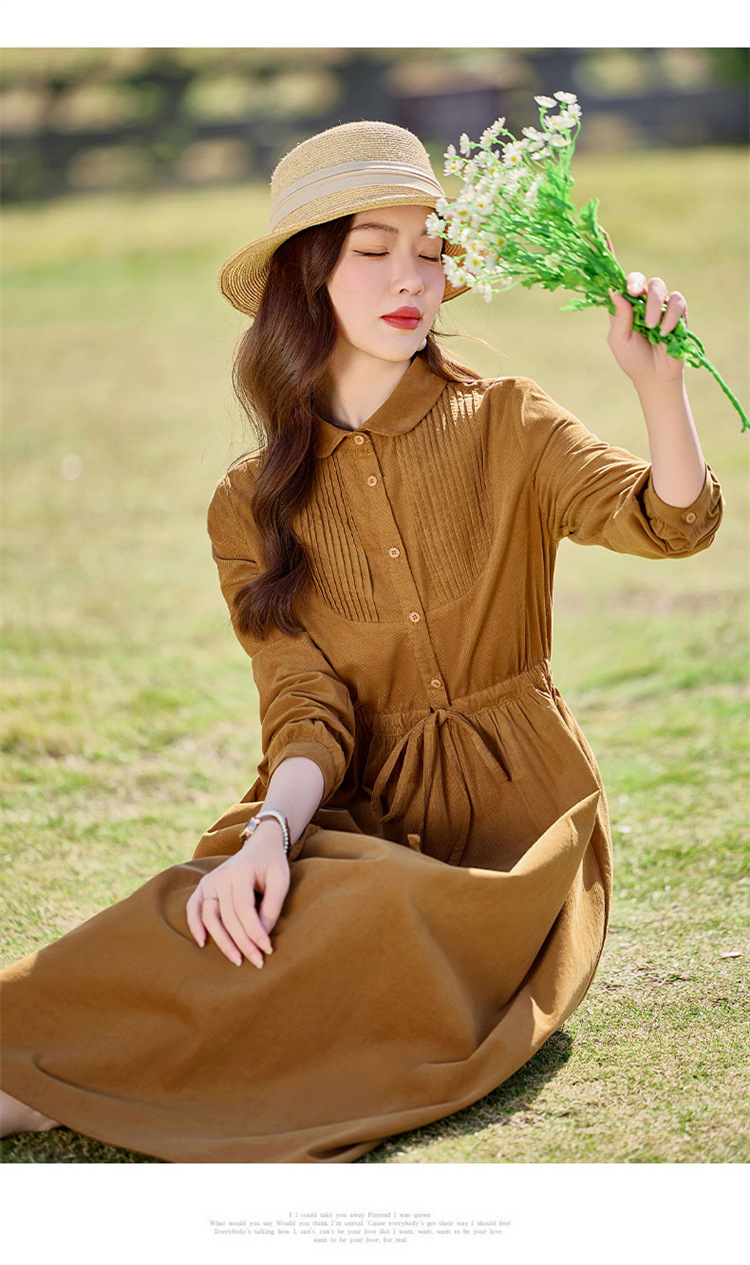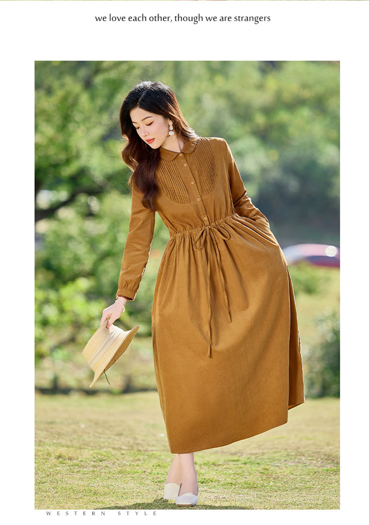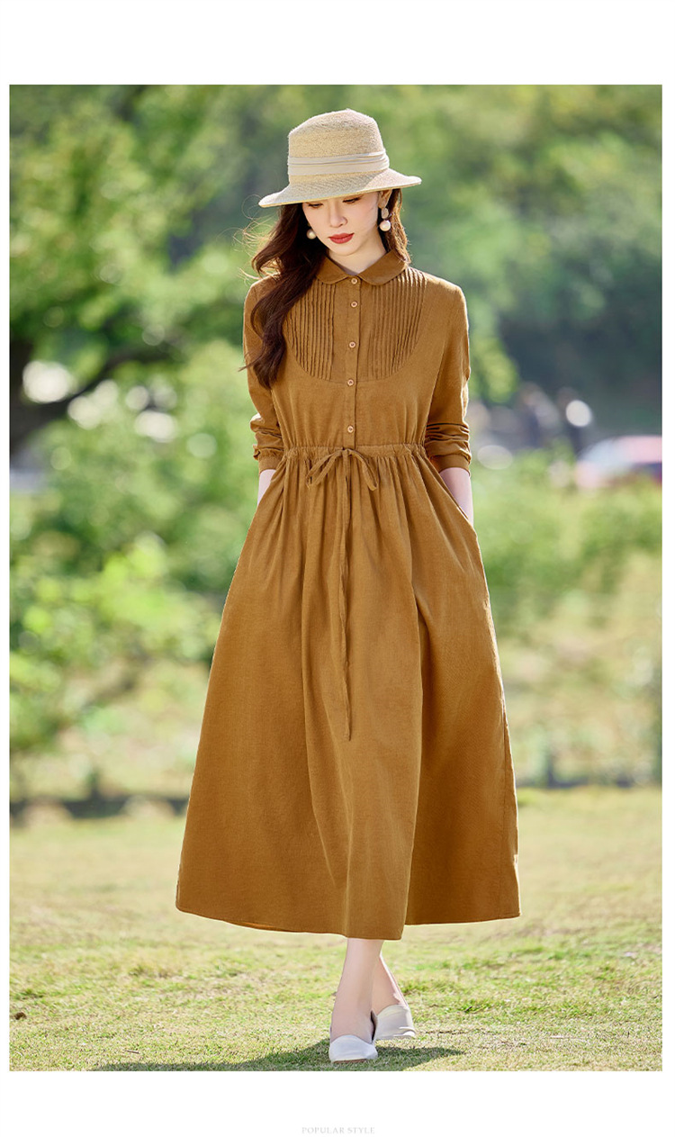 HR-SYY2663文艺气质连衣裙2025女式春季新款长袖时尚收腰显瘦娃娃领中长裙