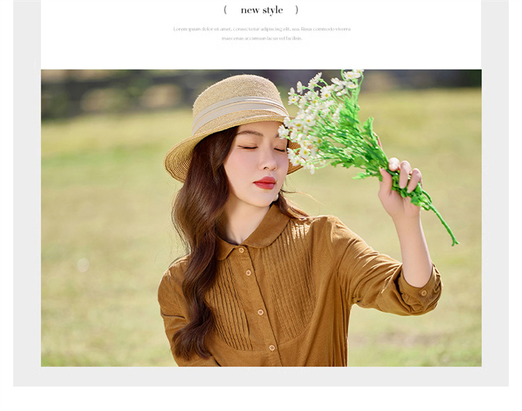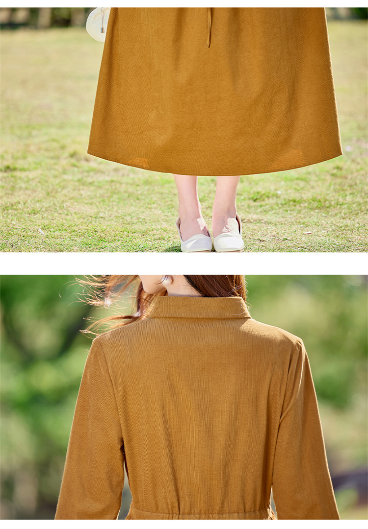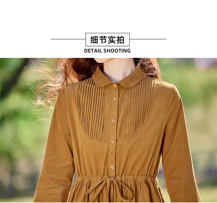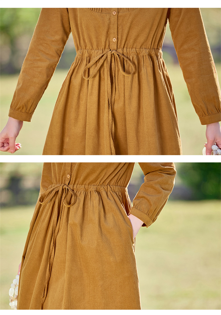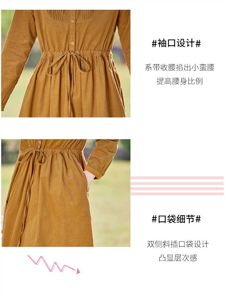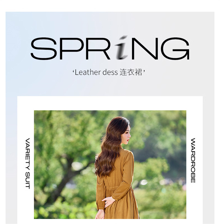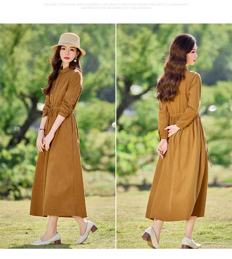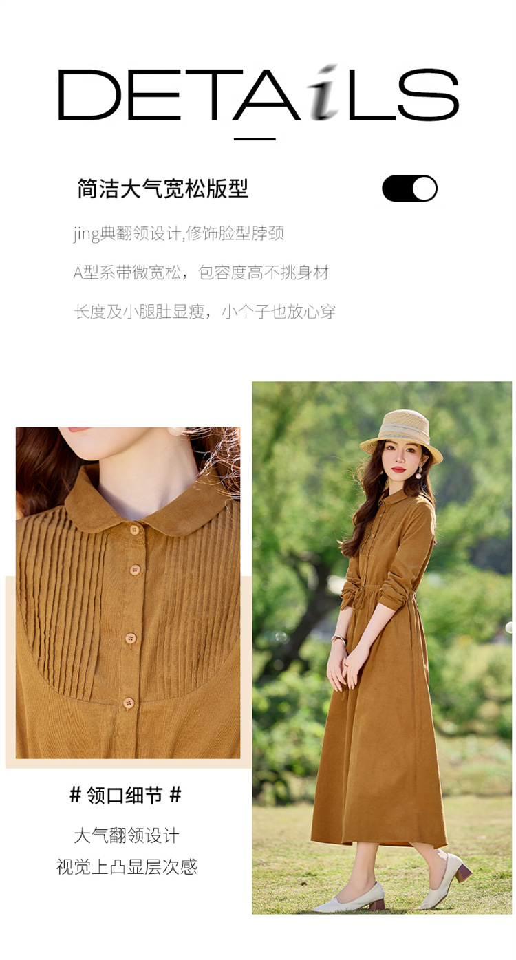 HR-SYY2663文艺气质连衣裙2025女式春季新款长袖时尚收腰显瘦娃娃领中长裙