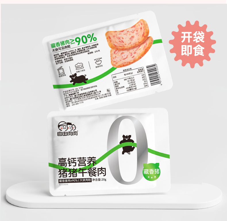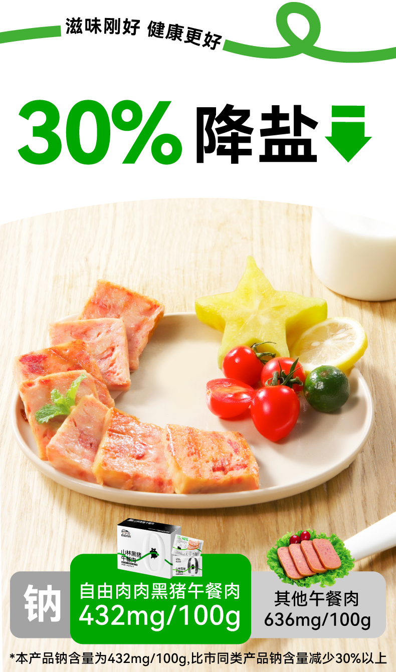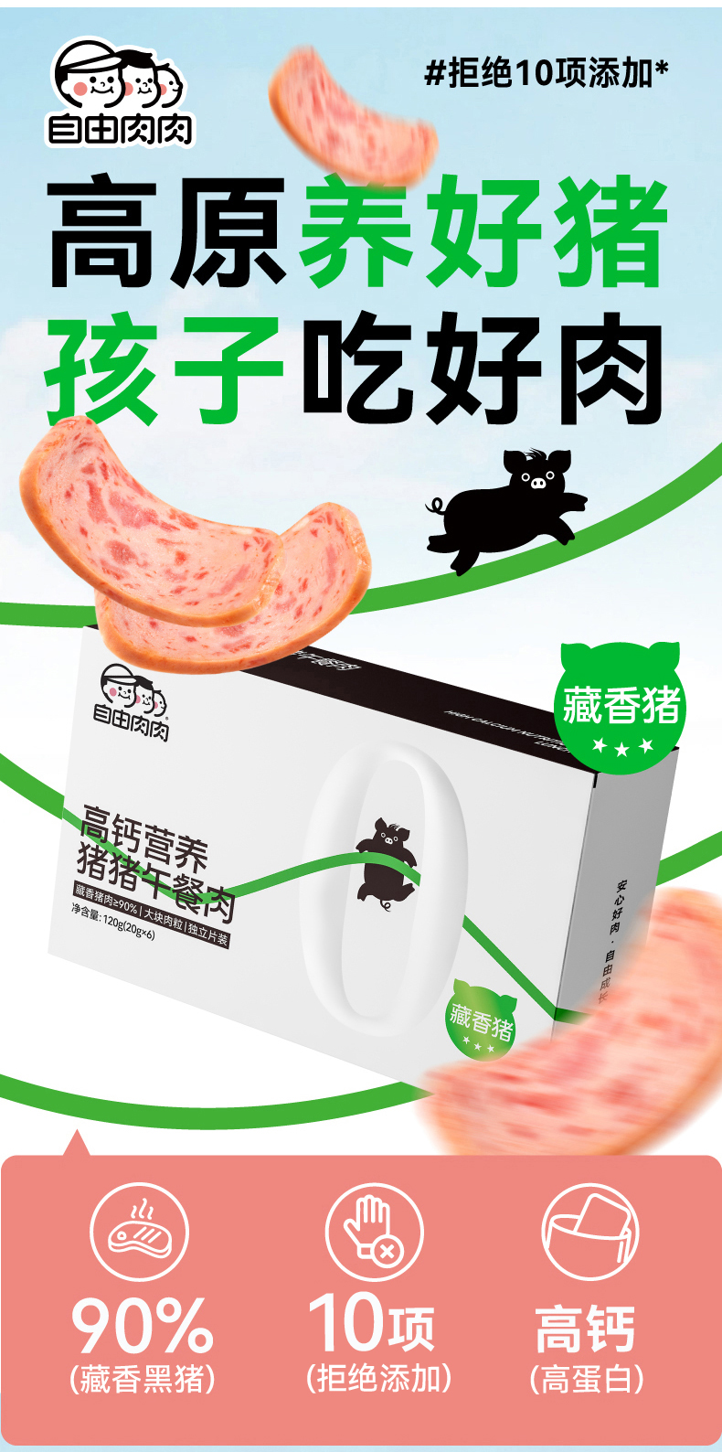 开创儿童安心标准 | 自由肉肉 午餐肉 肉制品 山林黑猪午餐肉200g/盒&藏香猪午餐肉120g/盒(内含独立装)