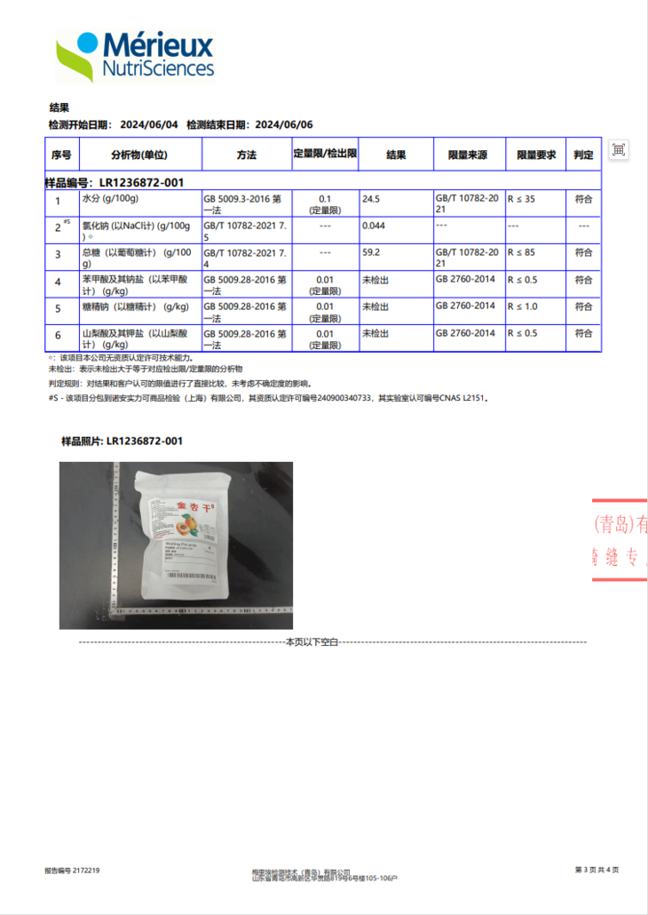 吃罢鲜杏,2024年的生态杏干也准备好和菜友们见面,以上相关检测报告从左自右分别是鲜杏农残检测报告、白砂糖有机认证证书、杏干防腐剂检测报告。