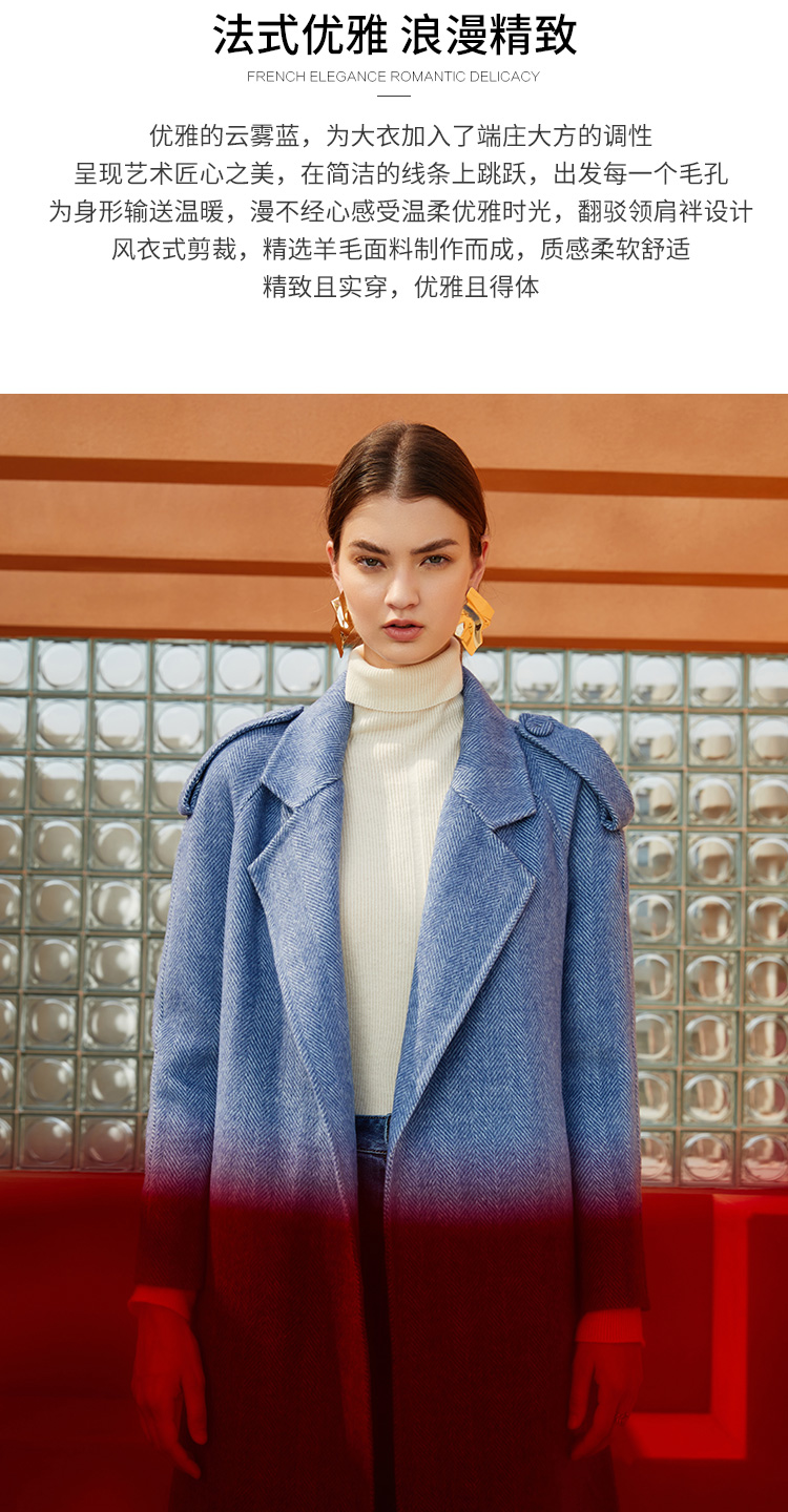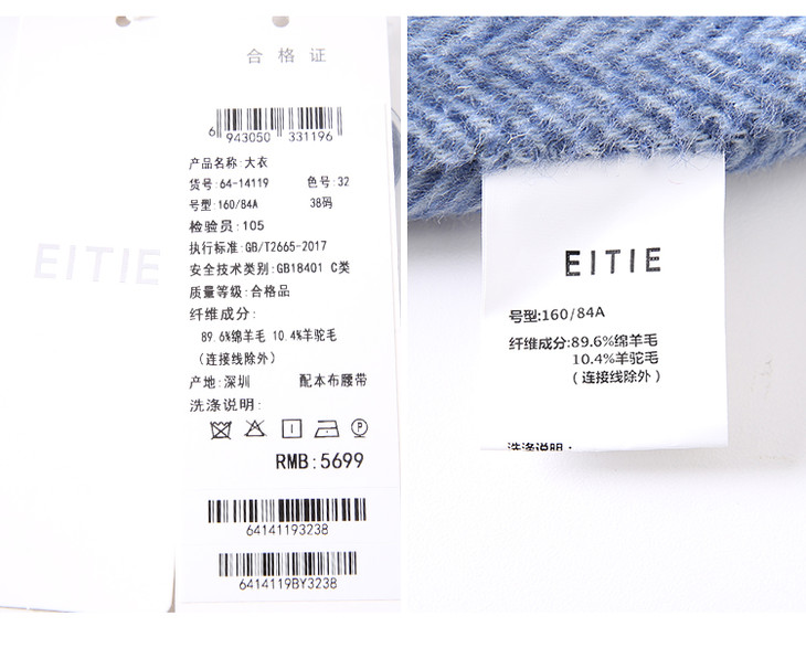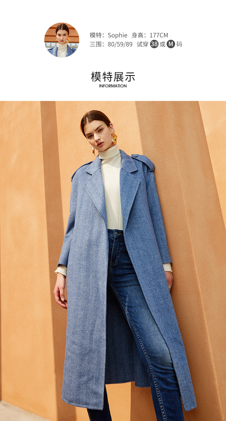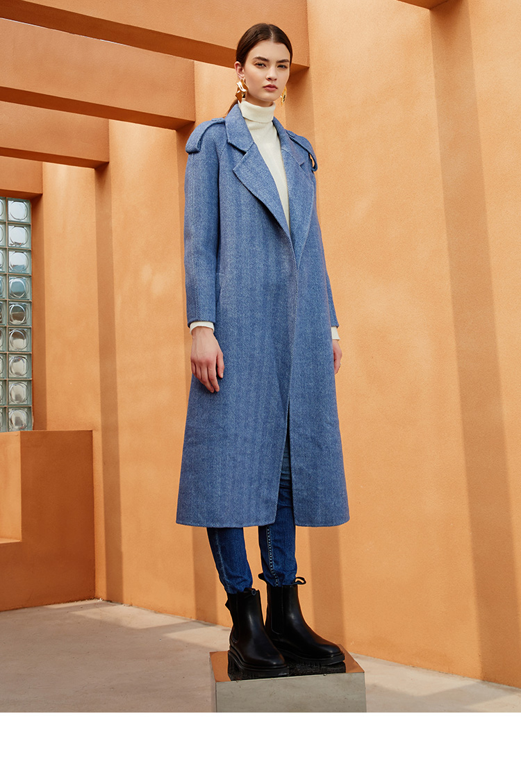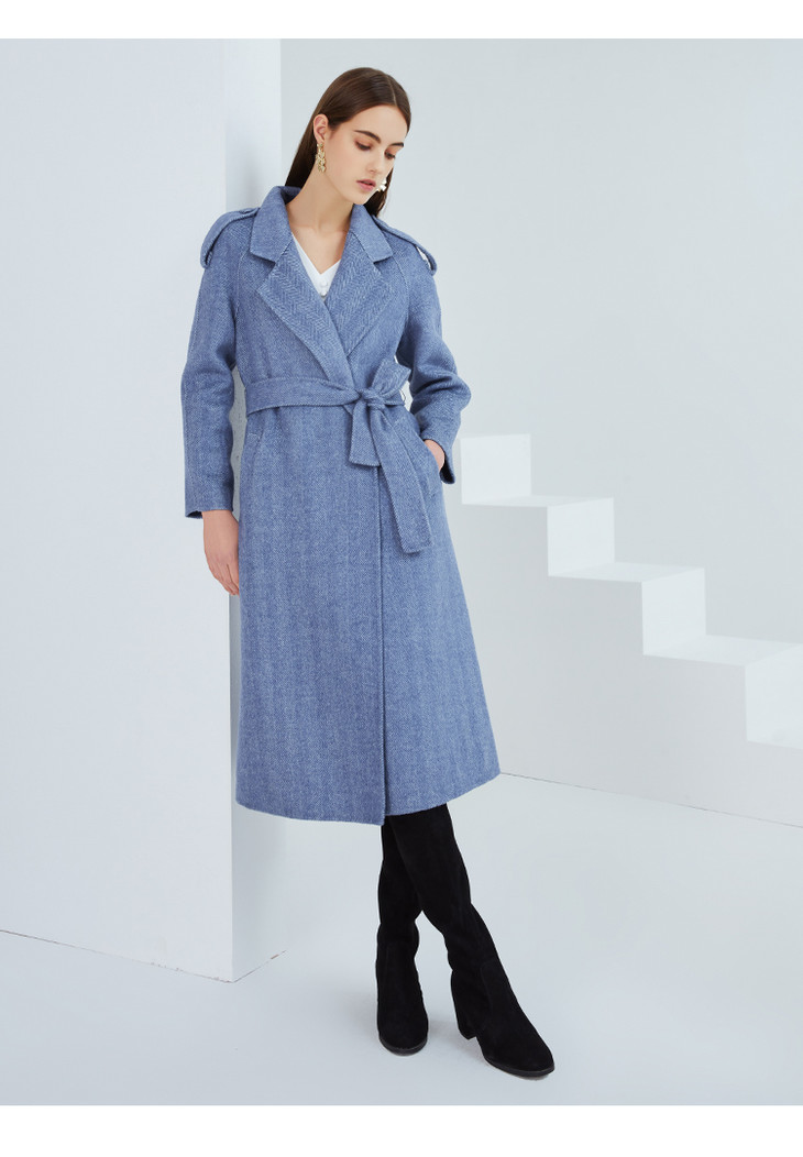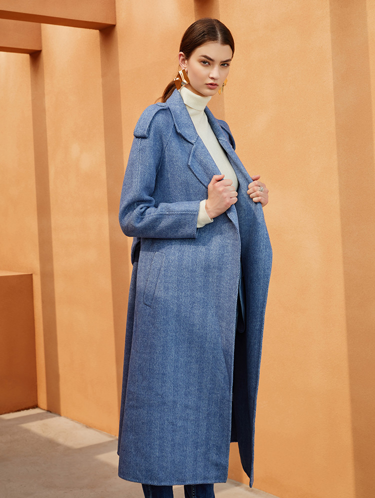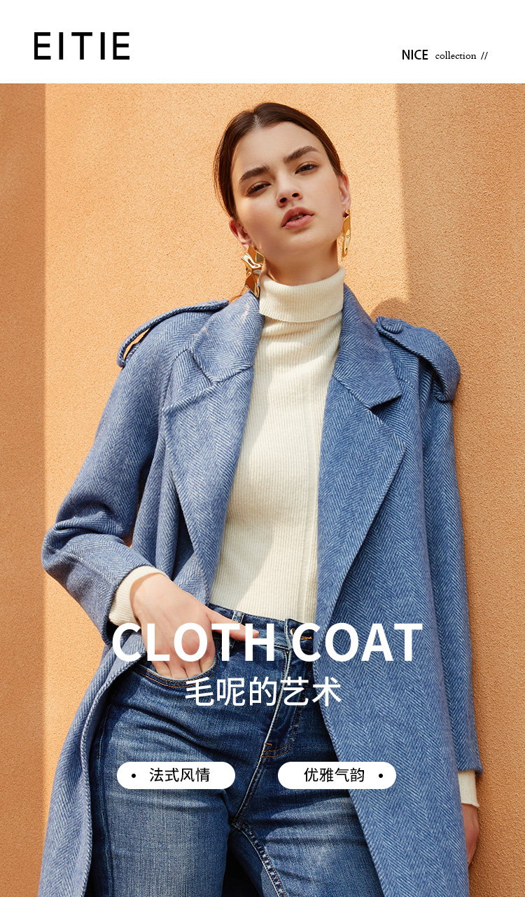 EITIE爱特爱冬季新款经典洋气英伦风收腰长款羊毛呢大衣外套6414119