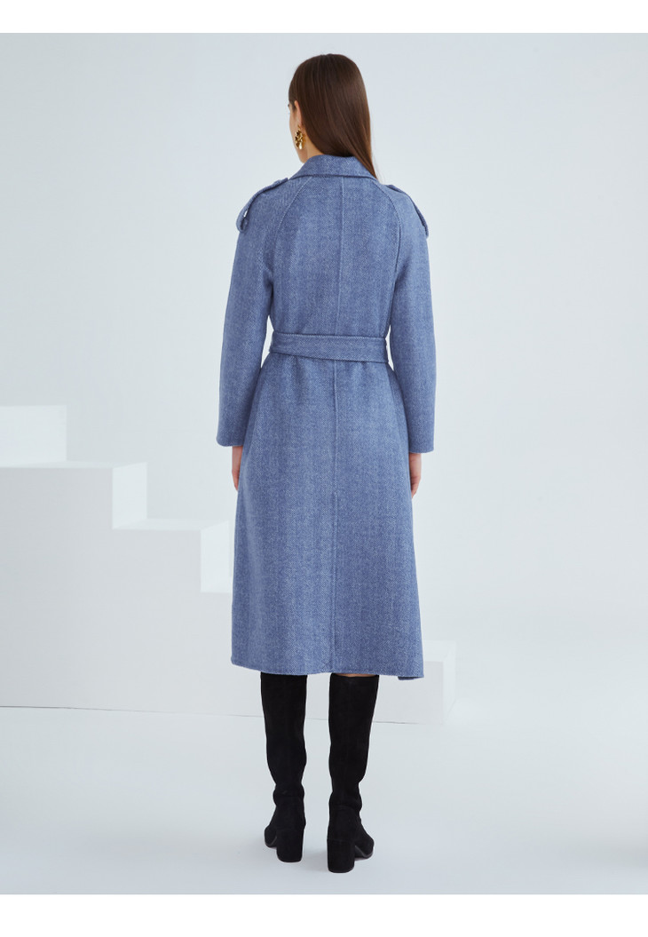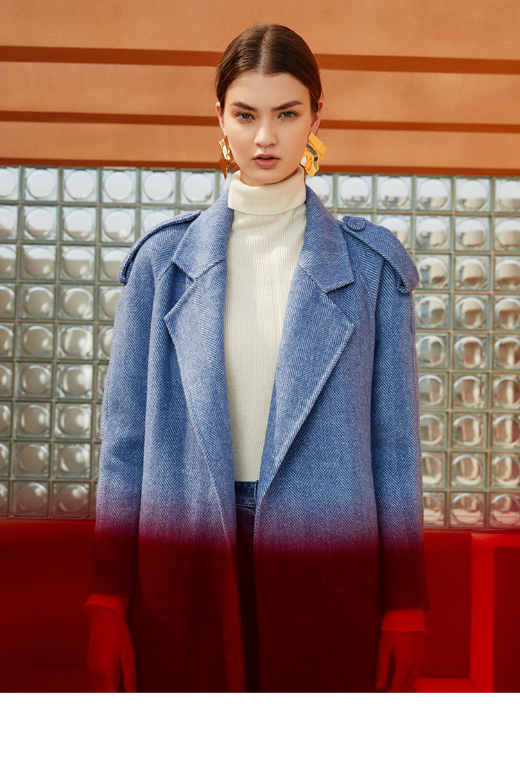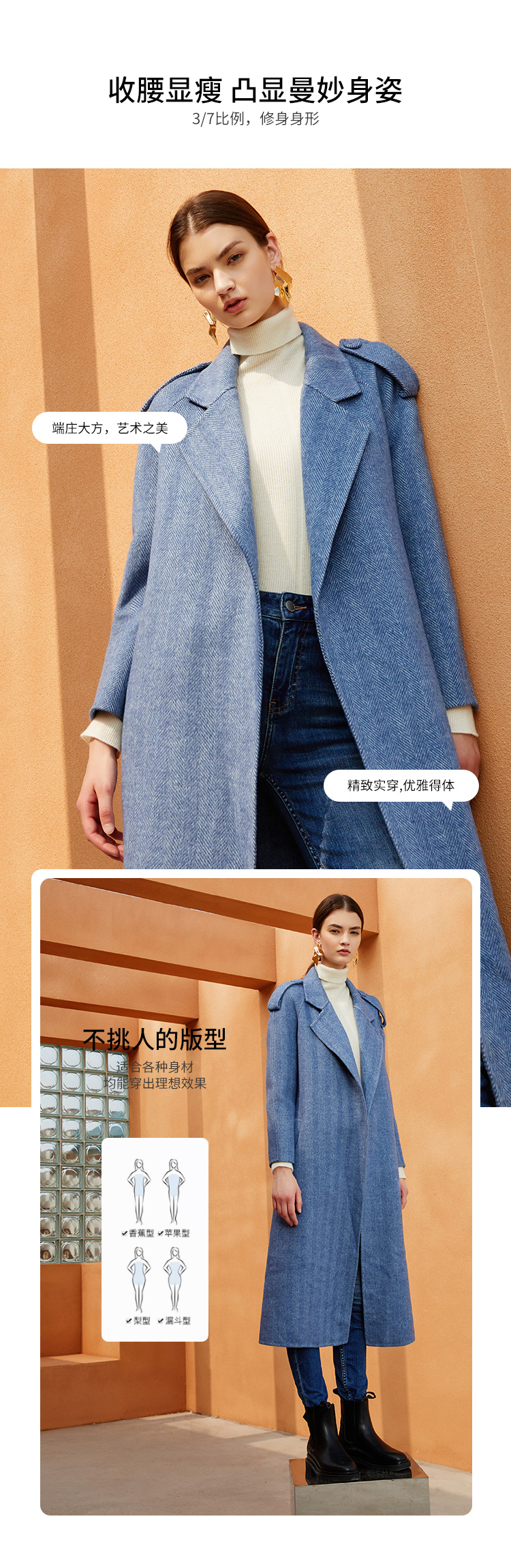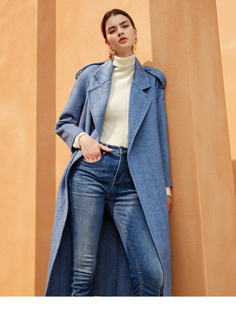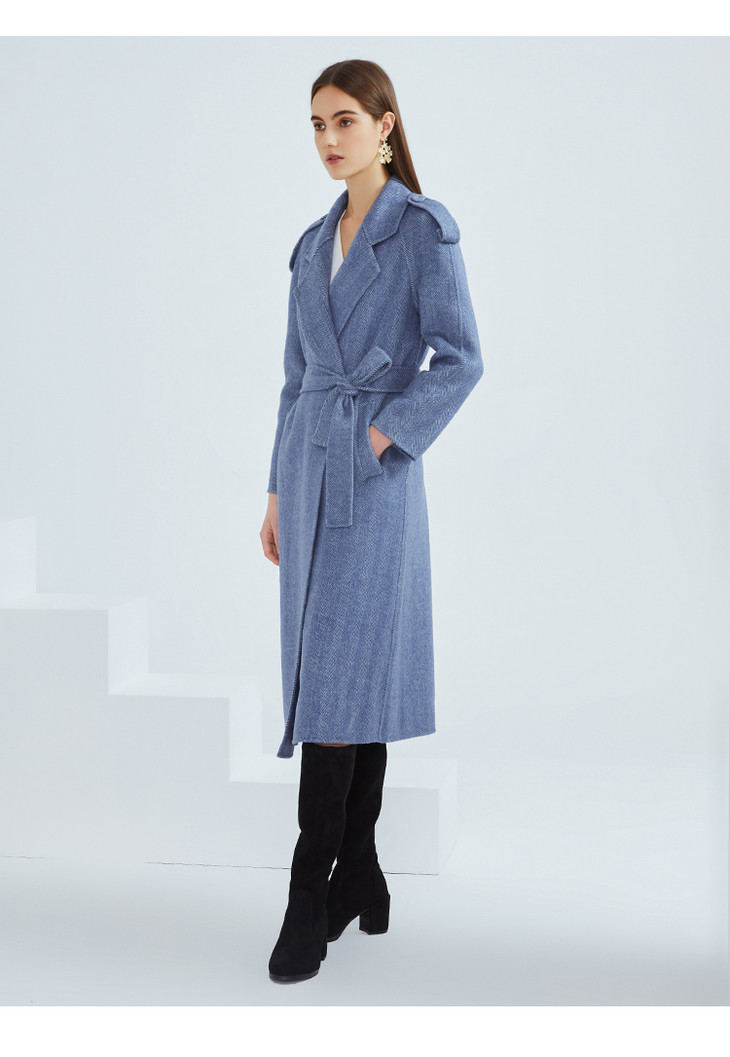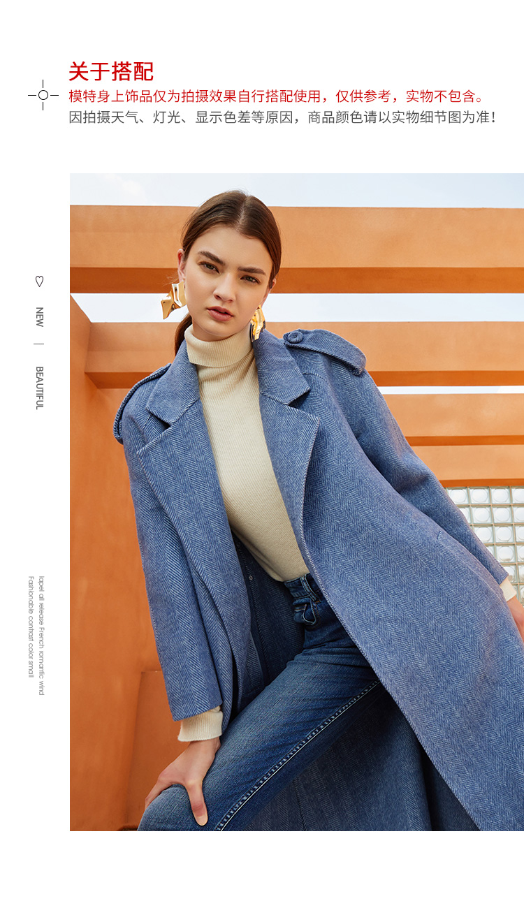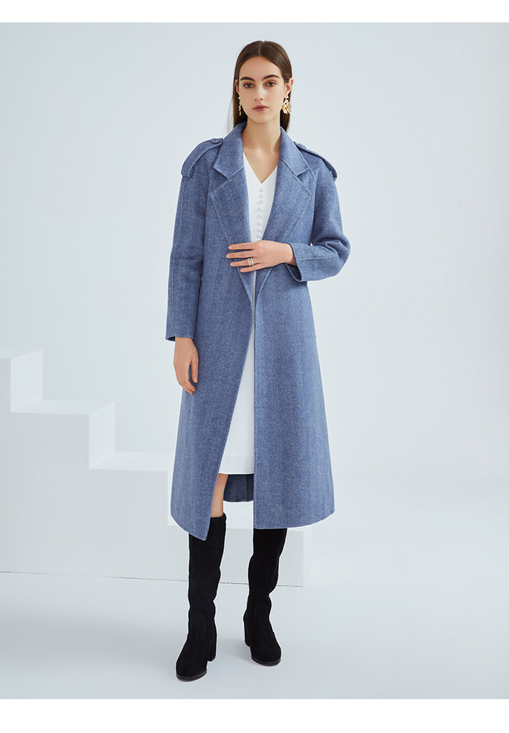 EITIE爱特爱冬季新款经典洋气英伦风收腰长款羊毛呢大衣外套6414119