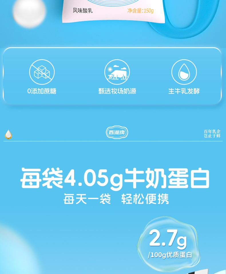 【快递直达】西湖牌百利包0蔗糖酸牛奶150g