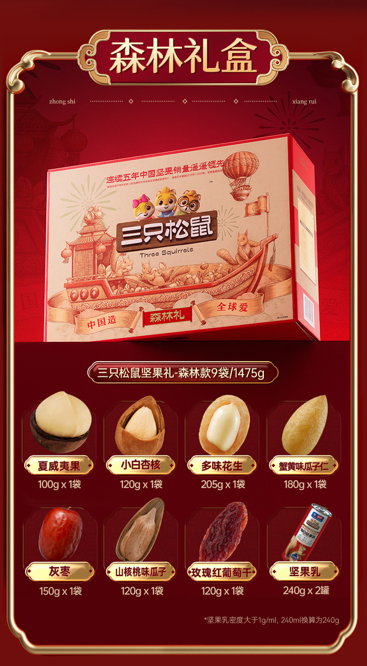 【三只松鼠_坚果大礼包森林款1475g9袋】坚果礼盒日常送礼整箱
