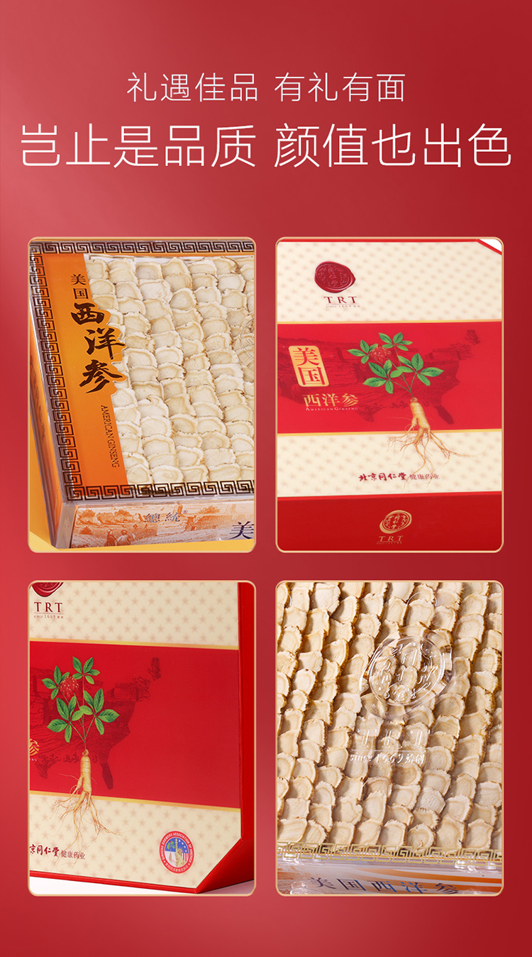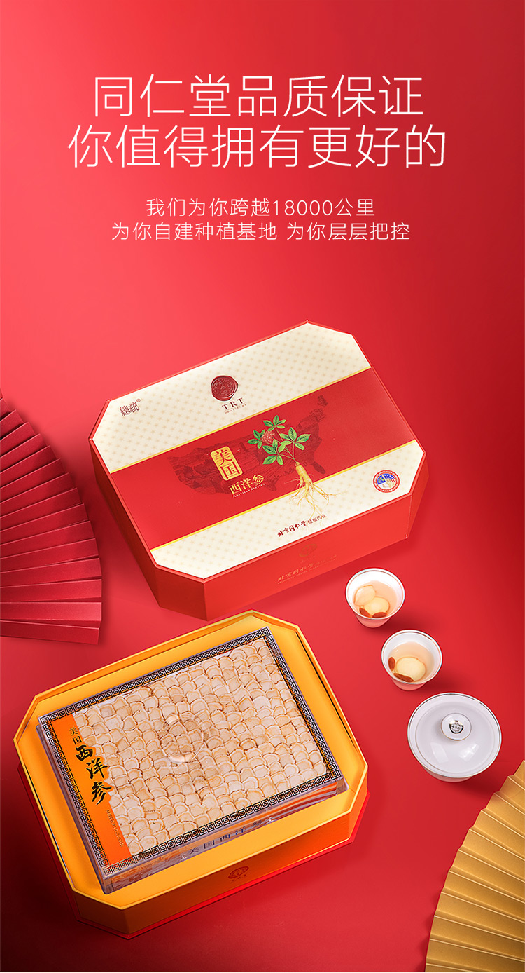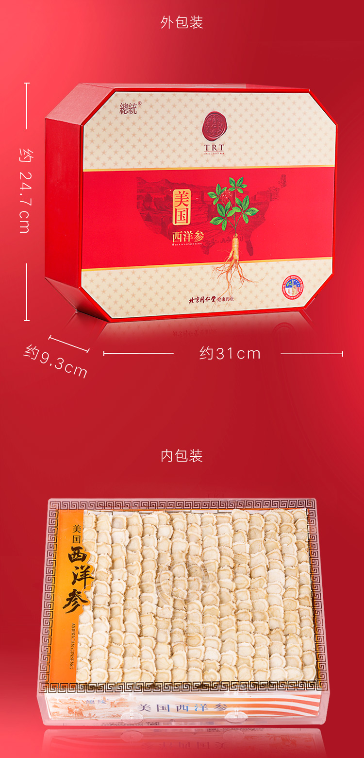 北京同仁堂 总统牌美国西洋参参片礼盒200g 0#切片花旗参 进口西洋参含片西洋参礼盒