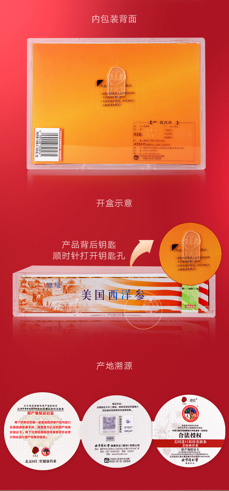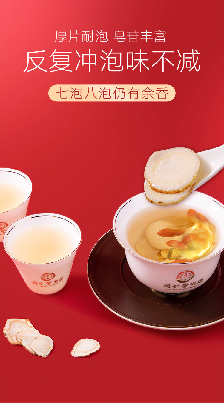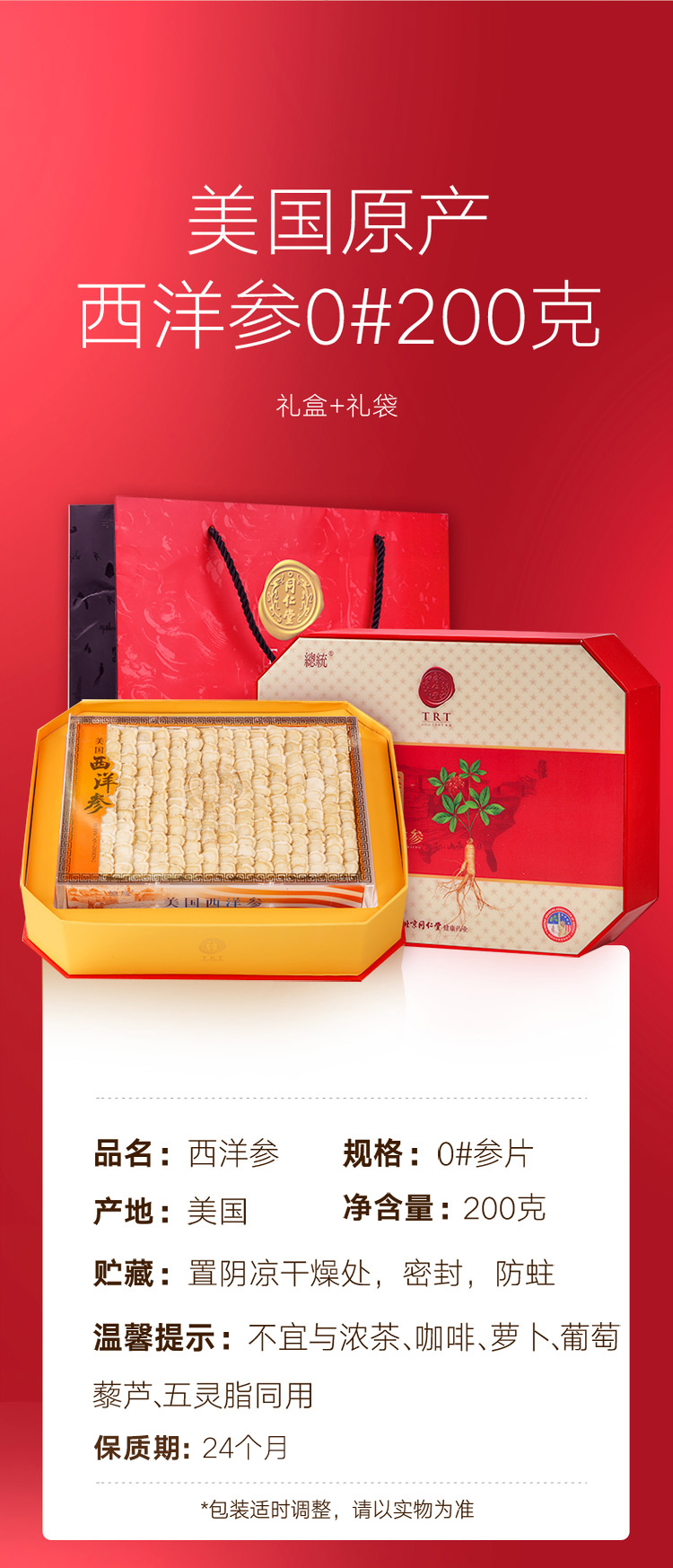 北京同仁堂 总统牌美国西洋参参片礼盒200g 0#切片花旗参 进口西洋参含片西洋参礼盒