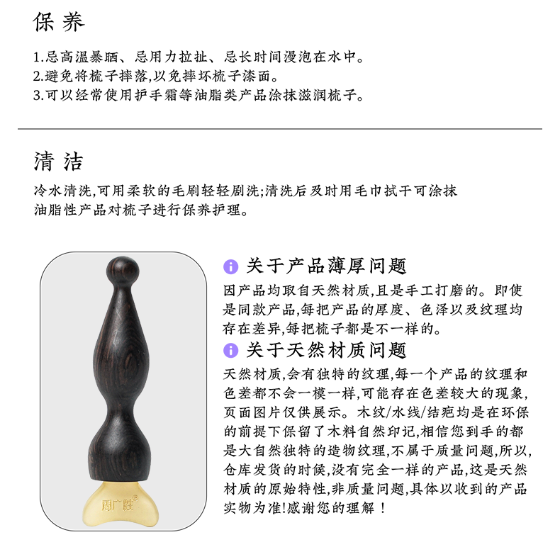 周广胜马年新品镶齿梳天然木梳子女士专用经络按摩梳护发顺发礼盒