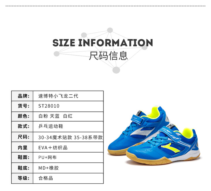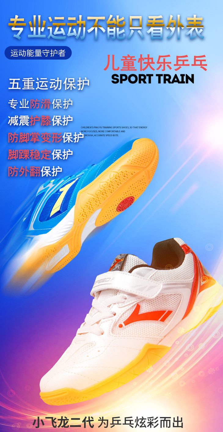 速博特 小飞龙二代 儿童专业乒乓球运动鞋 舒适、防滑、透气、耐磨 “为国球而生”