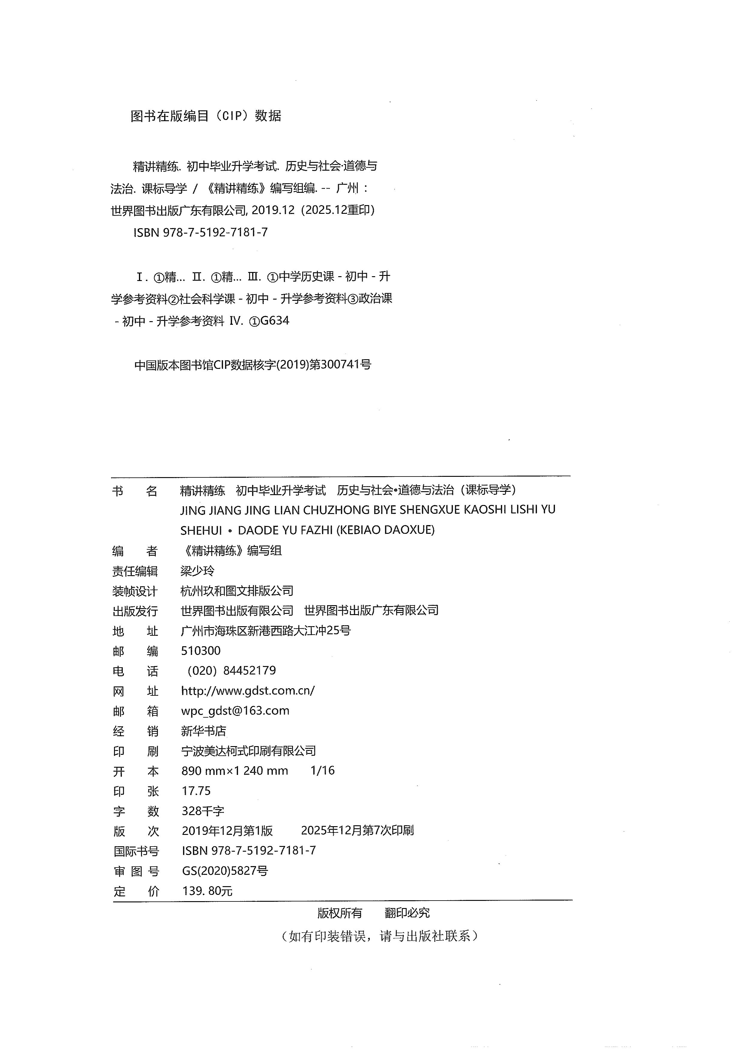 2026精讲精练 初中毕业升学考试历史与社会道德与法治 附配套作业